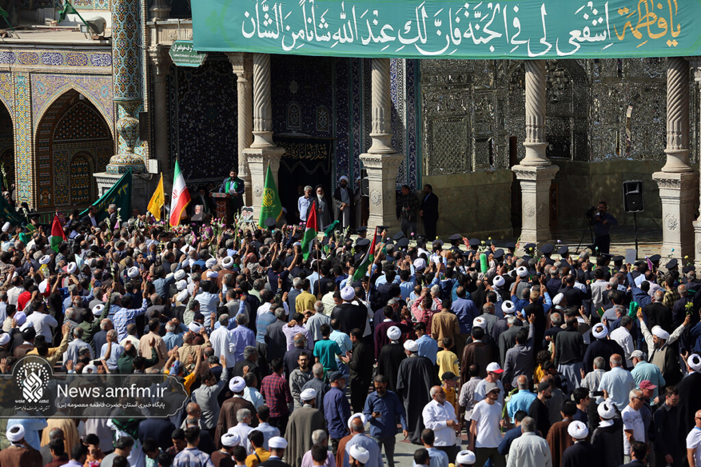 لازم به ذکر است مراسم پایانی استقبال از کاروان نمادین ورود حضرت معصومه به قم با خیرمقدم و تبریک آیتالله سید محمد سعیدی تولیت آستان مقدس حضرت معصومه (س) و مداحی سید مهدی میرداماد در صحن امام رضا علیهالسلام حرم مطهر بانوی کرامت برگزار شد.