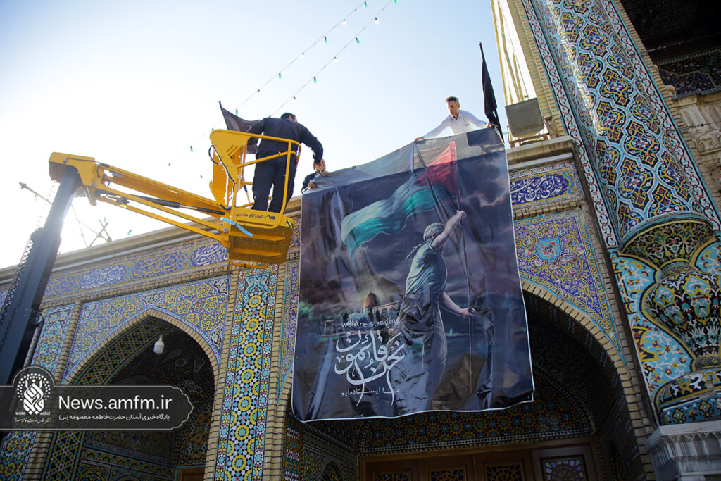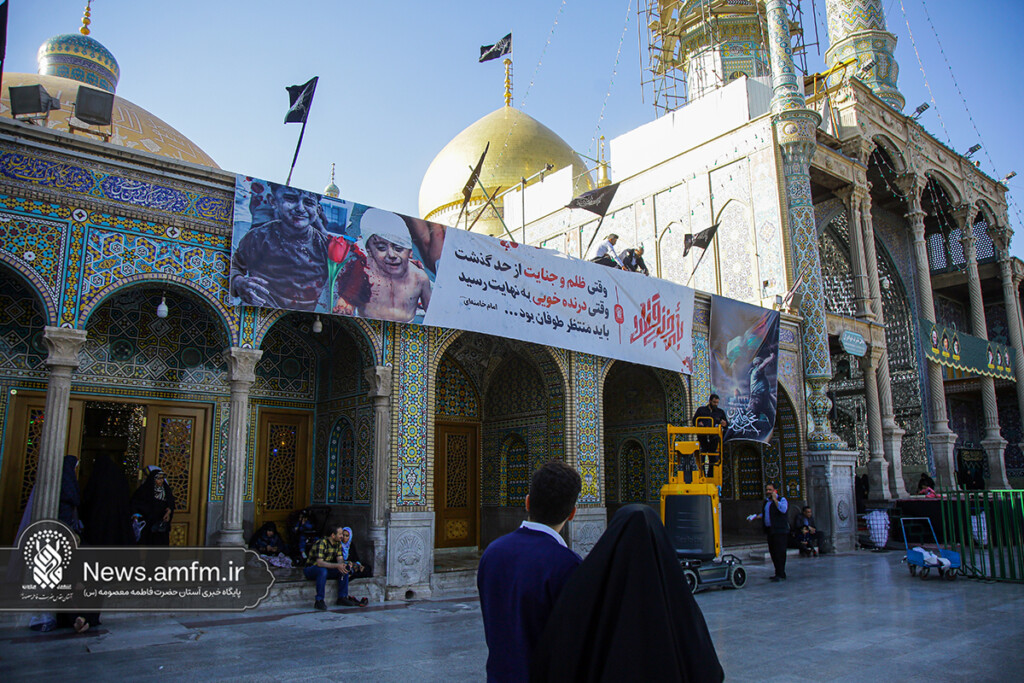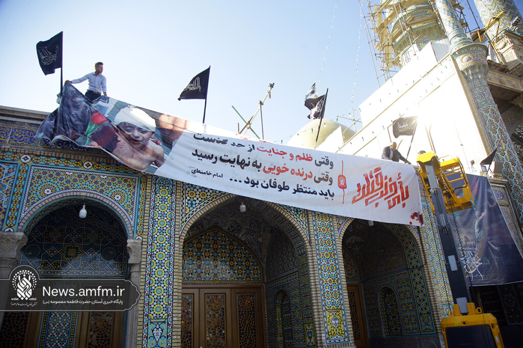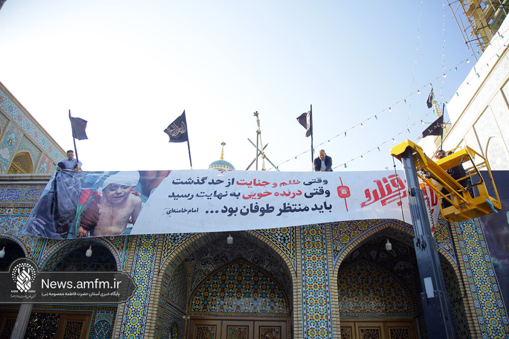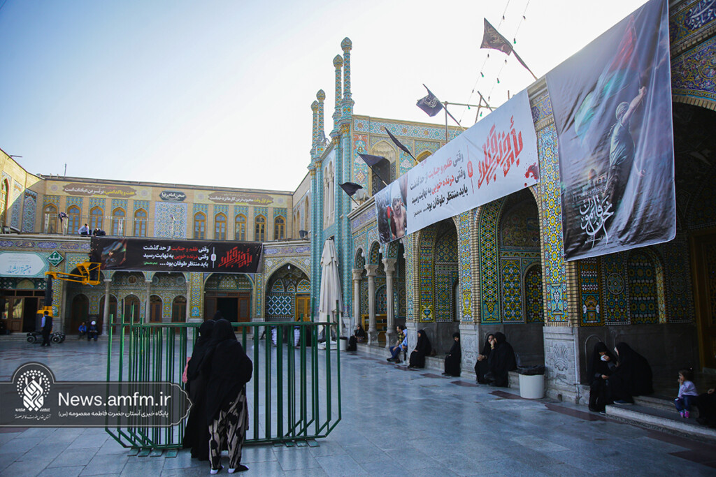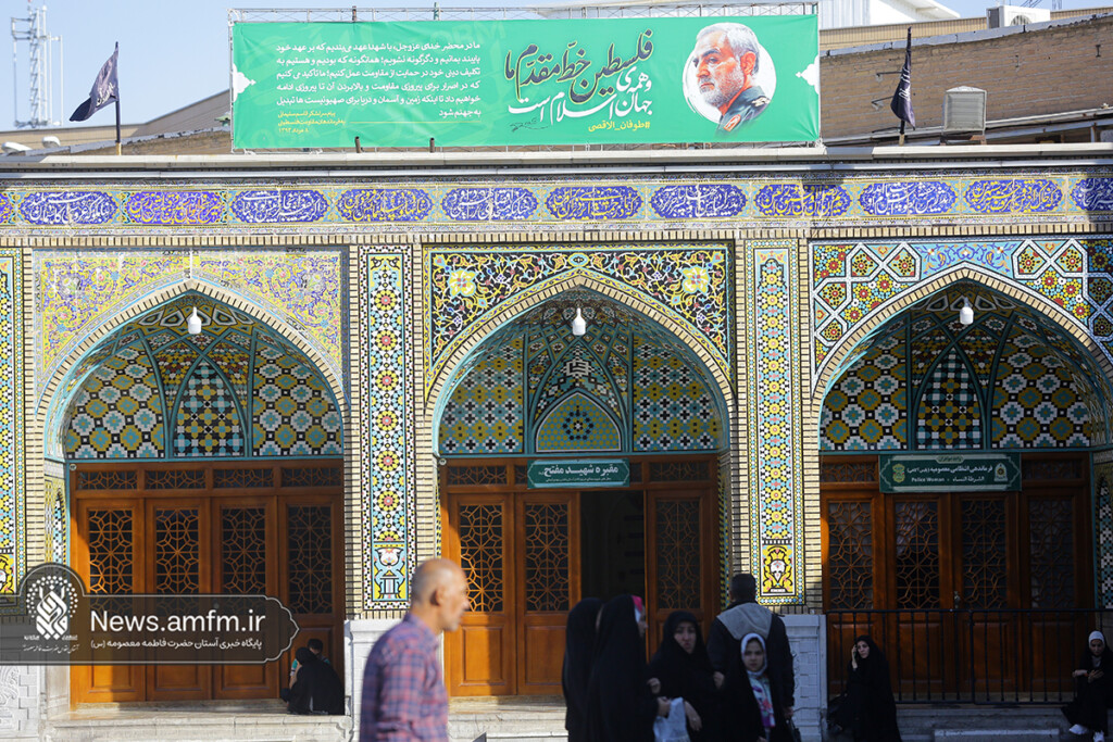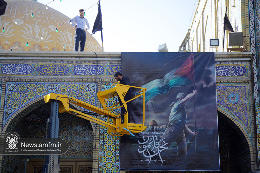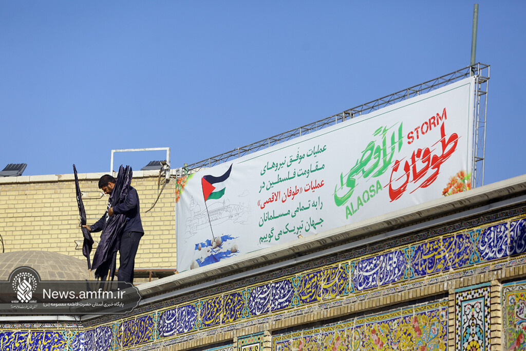 خدام حرم حضرت معصومه سلام الله علیها به دنبال حمایت از مردم مظلوم فلسطین و اعلام عزای عمومی در کشور اماکن حرم مطهر را با محوریت حمایت از مقاومت فلسطین فضاسازی کردند.
