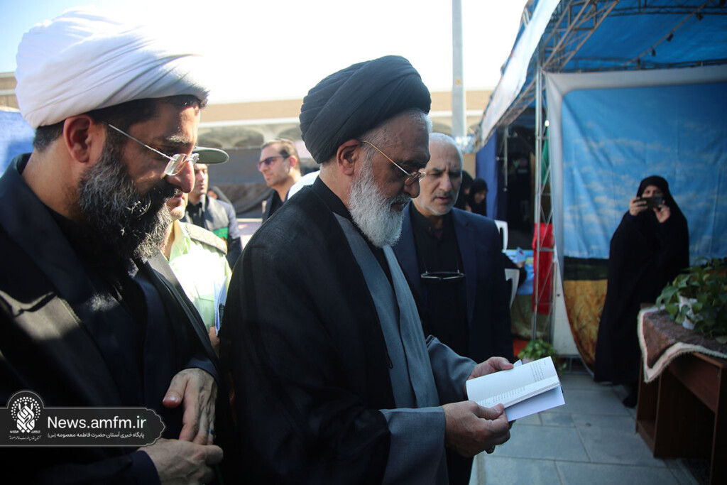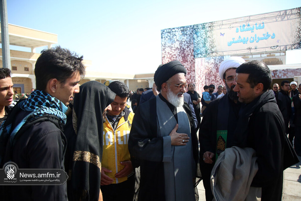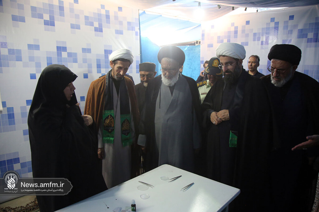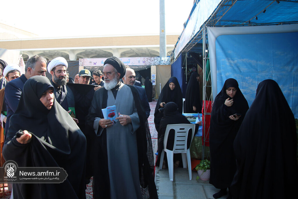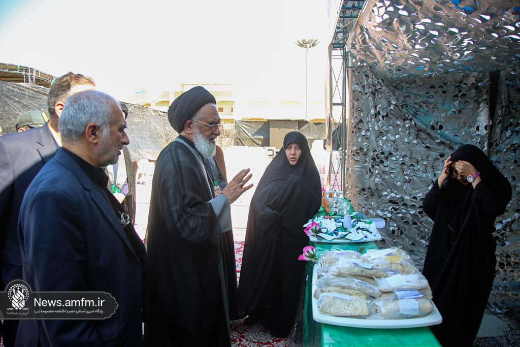آیتالله سید محمد سعیدی تولیت آستان مقدس و امام جمعه قم از غرفههای مختلف نمایشگاه دختران بهشتی که به همت خدام امور فرهنگی بانوان در صحن پیامبر اعظم(ص) برپا شده است، بازدید کرد.