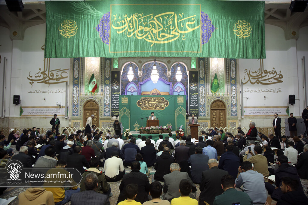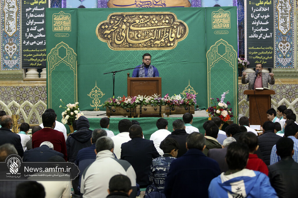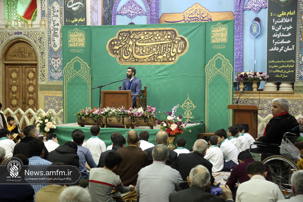 جشن شام میلاد حضرت علی(ع) در کرسی تلاوت فاطمی حرم مطهر بانوی کرامت با تلاوت حامد علیزاده قاری بین المللی قرآن کریم، مولودی خوانی سید رضا نریمانی، ترتیل خوانی حجتالاسلام سید علی حسینی، قرائت قاری نوجوان مهدی ابراهیمی و اجرای گروه سرود سفیران کریمه اهلبیت(س) برگزار شد.