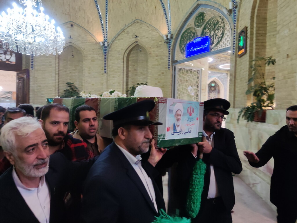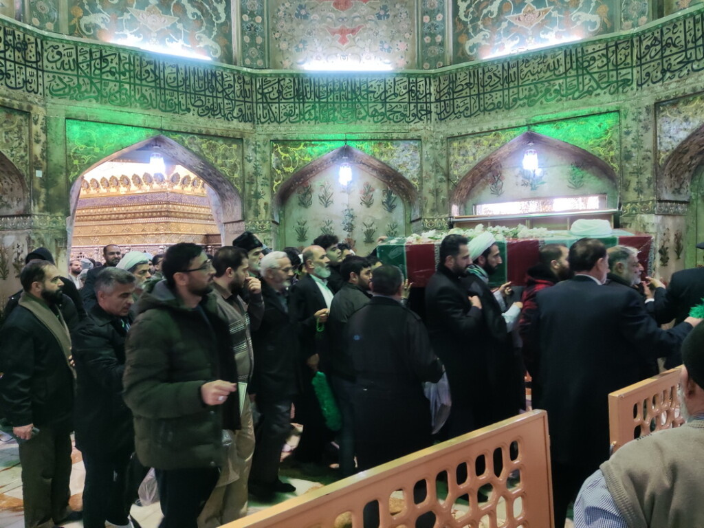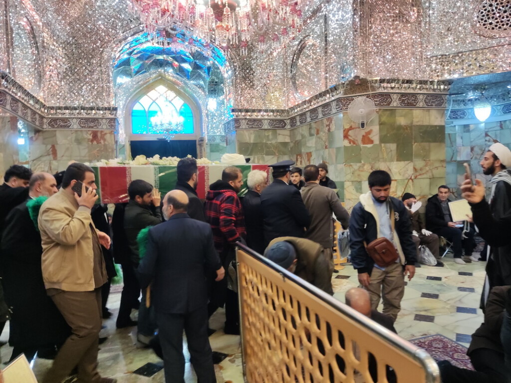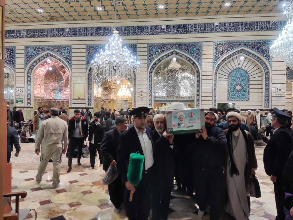 پیکر مطهر شهیدان حجت الاسلام والمسلمین محمد مقیسه و حجت الاسلام والمسلمین علی رازینی که در اقدامی برنامهریزی شده فردی نفوذی به ضرب گلوله به شهادت رسیده بودند صبح امروز 1 بهمن بر گرد ضریح مطهر حضرت معصومه(س) طواف داده شد.