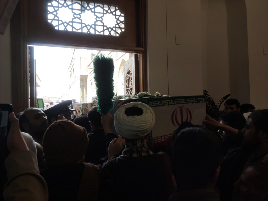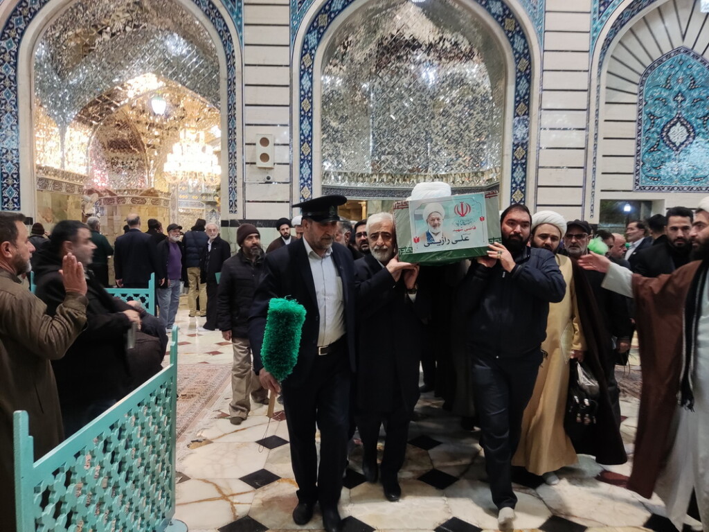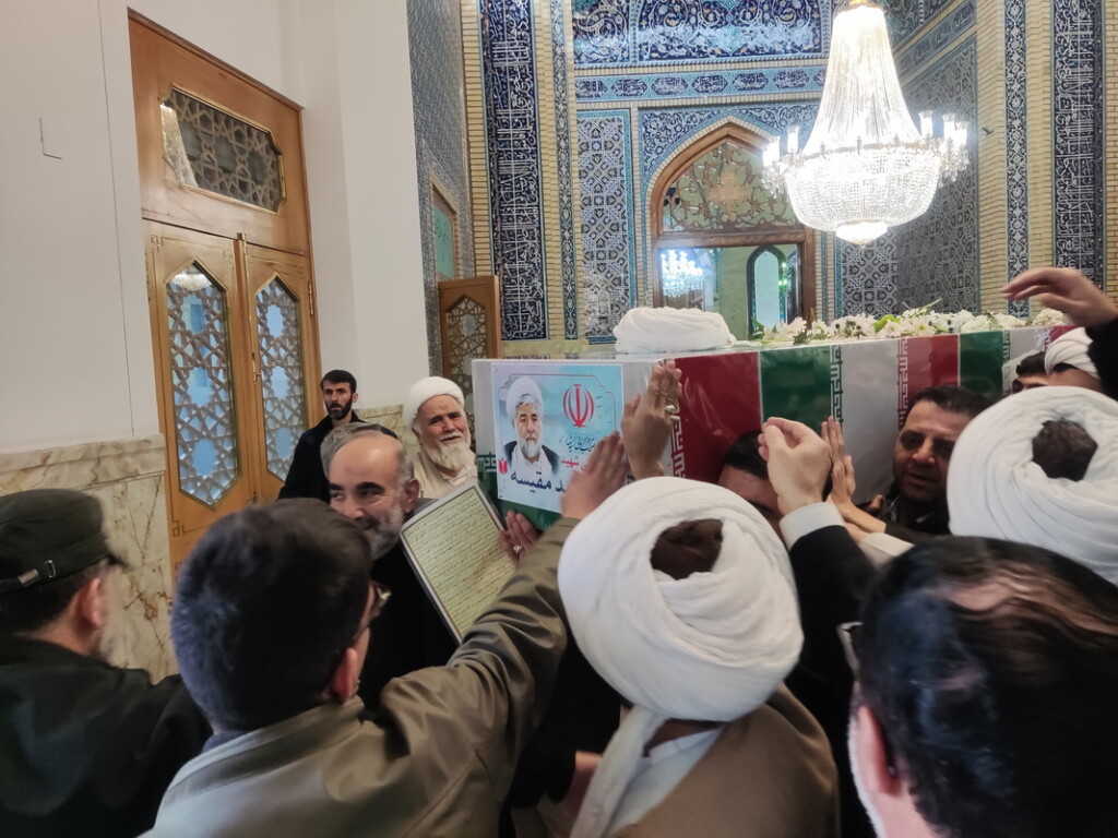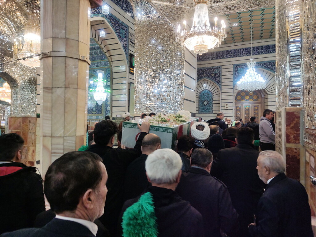 پیکر مطهر شهیدان حجت الاسلام والمسلمین محمد مقیسه و حجت الاسلام والمسلمین علی رازینی که در اقدامی برنامهریزی شده فردی نفوذی به ضرب گلوله به شهادت رسیده بودند صبح امروز 1 بهمن بر گرد ضریح مطهر حضرت معصومه(س) طواف داده شد.