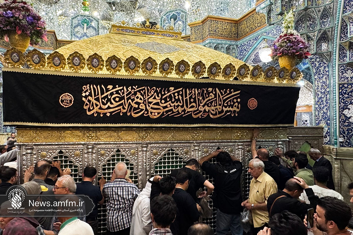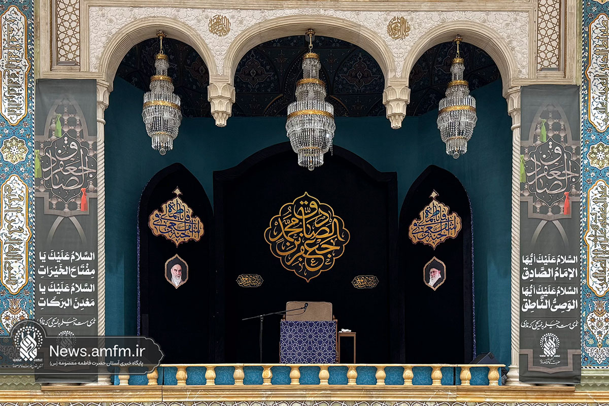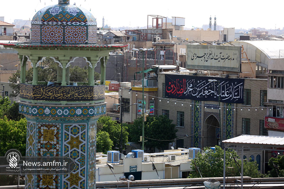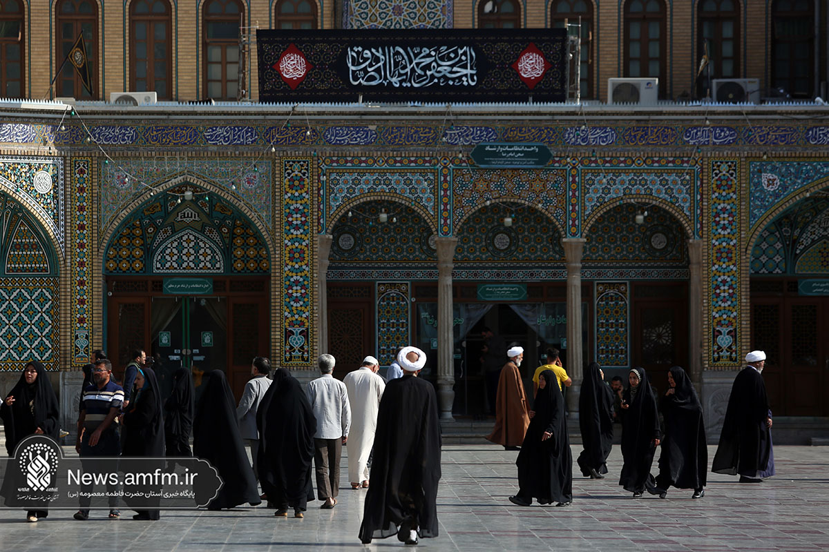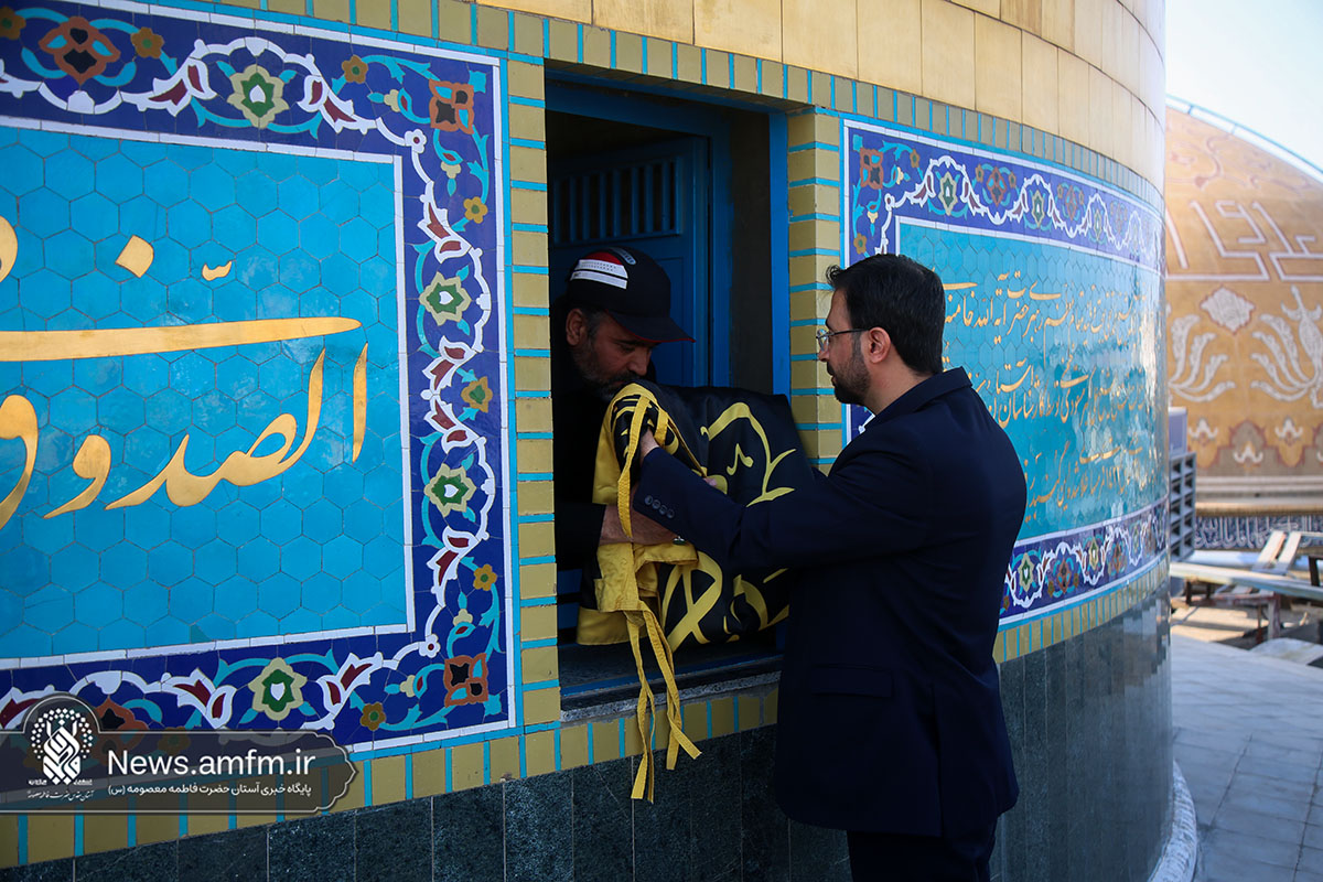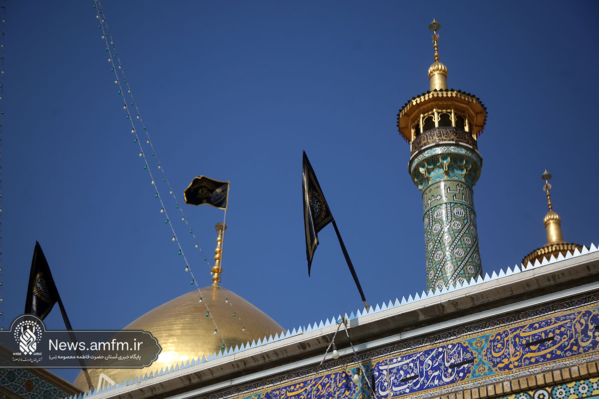 حرم مطهر حضرت فاطمه معصومه سلام الله علیها در آستانه سالروز شهادت امام صادق علیه السلام با اهتزاز پرچم عزا برفراز گنبد مطهر و نصب پرچم ها و بنرهای مشکی در صحن ها، رواق‌ها و شبستان‌ها سیاهپوش شد.