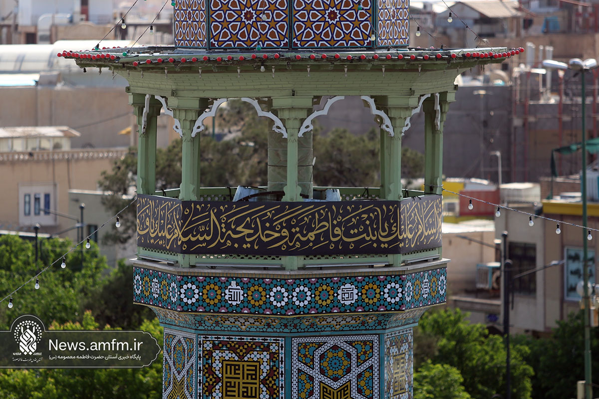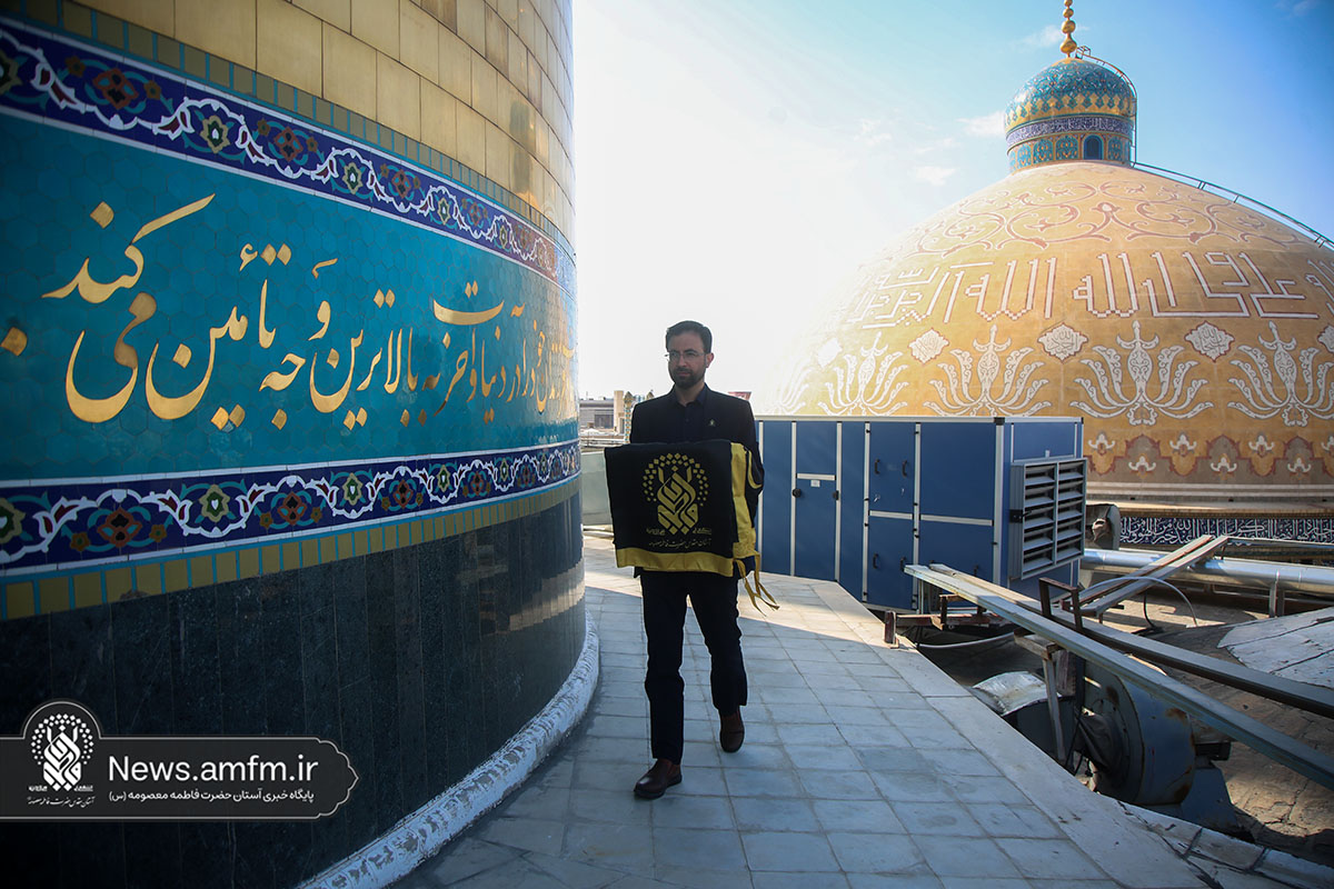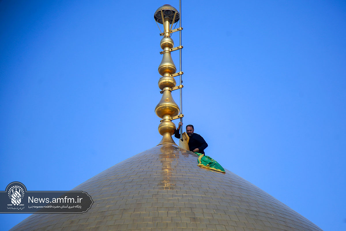 اهتزاز پرچم عزای امام صادق(ع) بر فراز گنبد منور حرم حضرت معصومه(س)