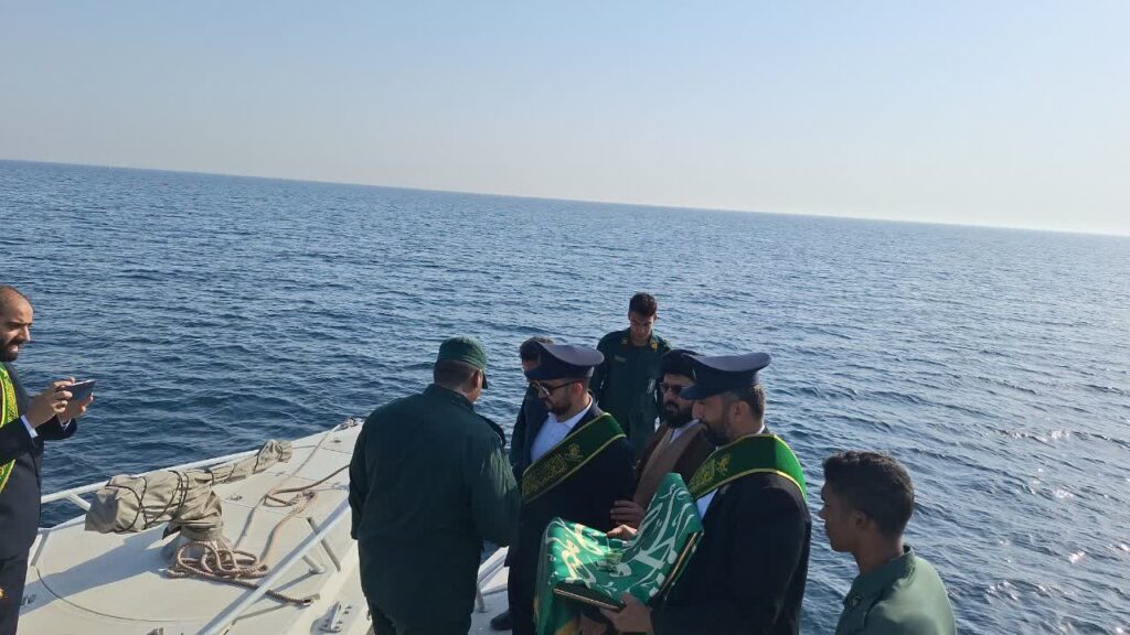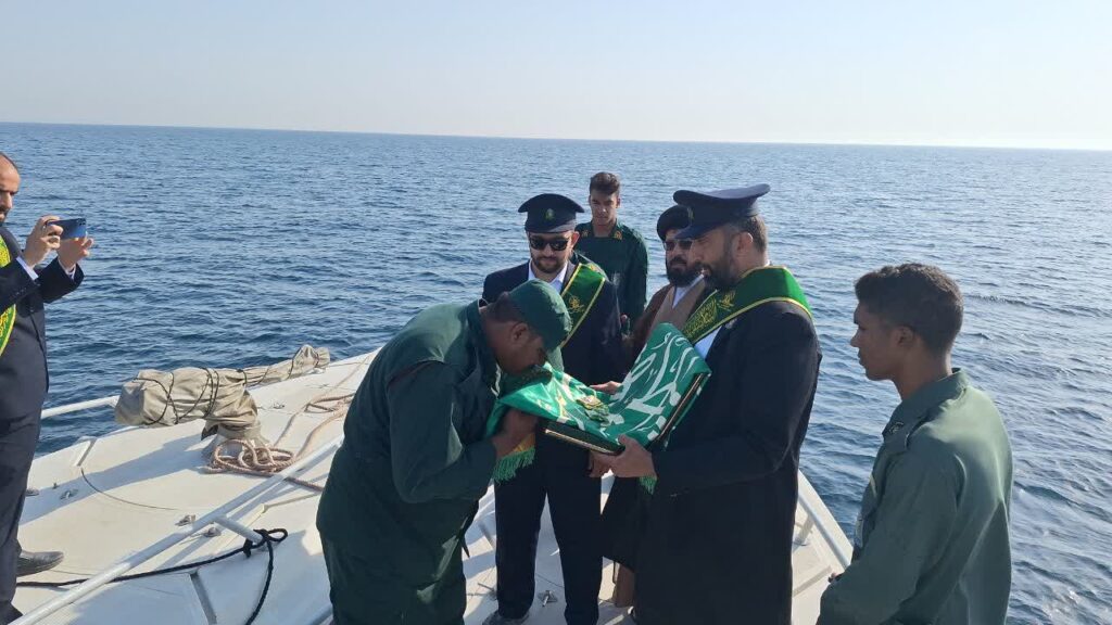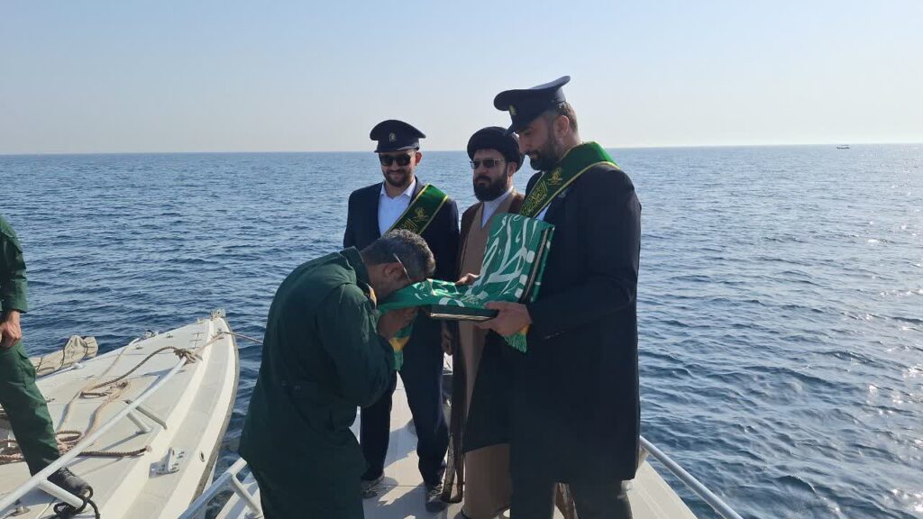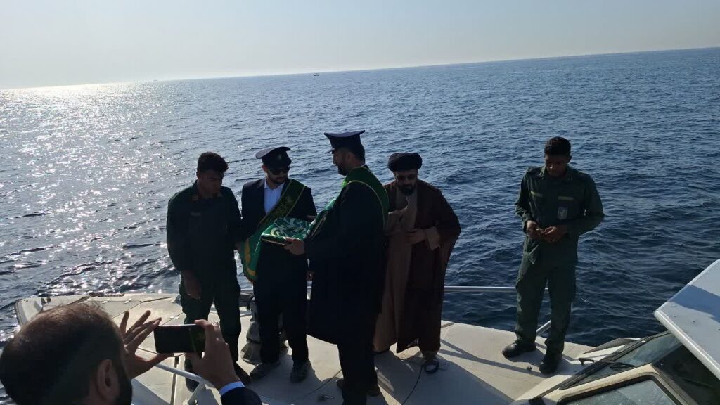 به گزارش پایگاه خبری آستان مقدس حضرت فاطمه معصومه سلام الله علیها، جمعی از خادمان حرم مطهر بانوی کرامت در قالب کاروان سفیران کریمه اهل بیت سلام الله علیها به همراه پرچم متبرک حرم مطهر به مناسبت روز خلیج فارس در جمع نیروهای ندسا بر روی آبهای نیلگون خلیج فارس حضور یافتند.