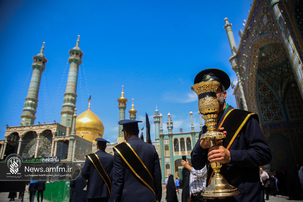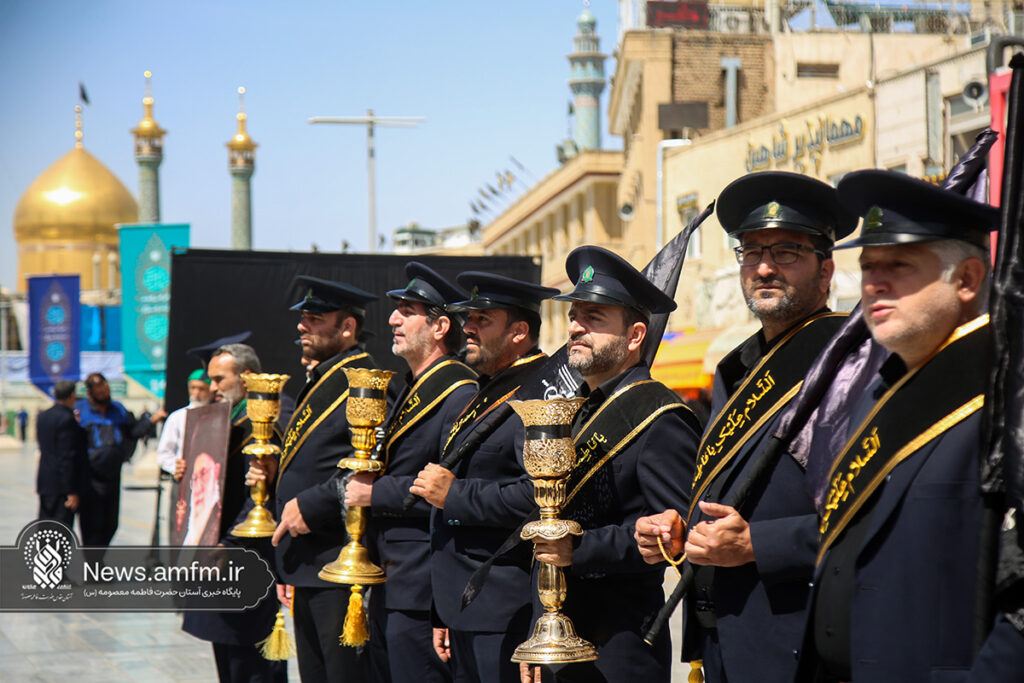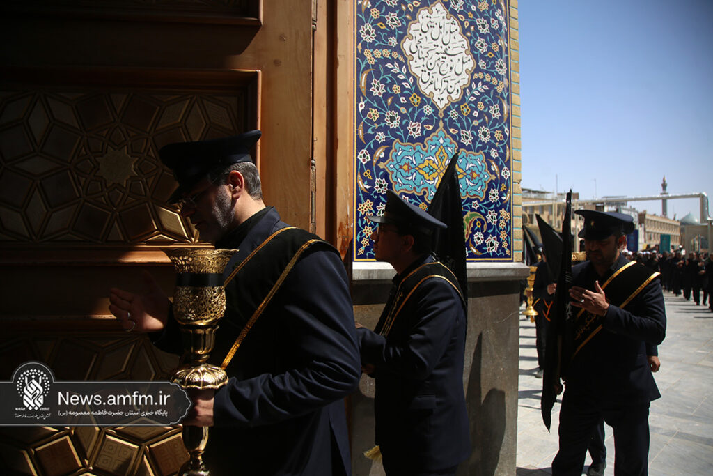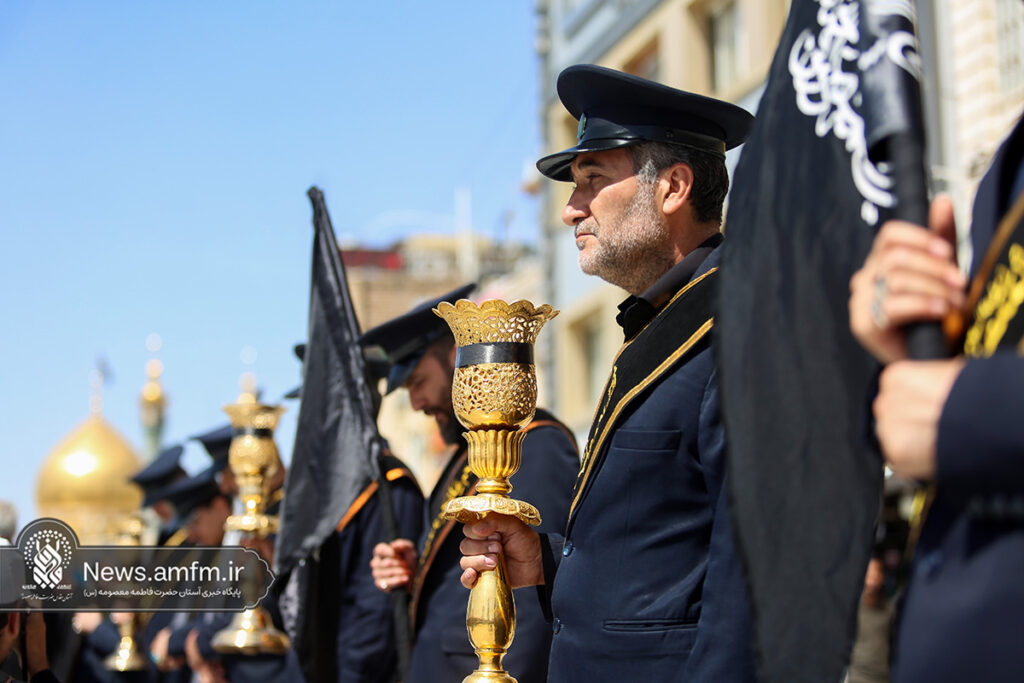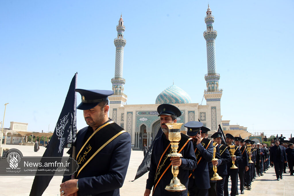 دسته عزای خادمان و زائران حرم مطهر بانوی کرامت در سوگ امام جواد علیه السلام صبح امروز از مسجد امام حسن عسکری علیه السلام به سمت حرم مطهر بانوی کرامت به راه افتاد و مراسم عزاداری با مداحی حسن اسداللهی در صحن امام رضا علیه السلام با حضور پرشور مردم برپا شد.