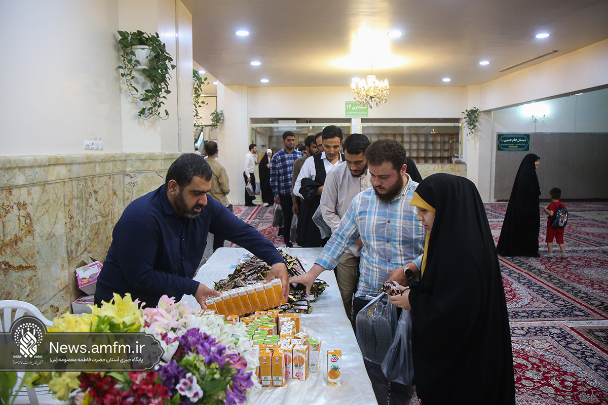 در پایان مراسم، میهمانان و زوجهای جوان بر سر سفره اطعام حضرت معصومه سلام الله علیها حضور یافتند.