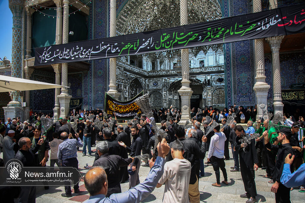 دسته‌های عزاداری به مناسبت سالروز شهادت امام باقر علیه السلام با حضور در حرم مطهر حضرت فاطمه معصومه سلام الله علیها ضمن عرض تسلیت به محضر بانوی کرامت به عزاداری پرداختند.
