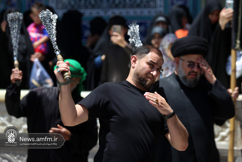 سوگواری دسته‌جات عزای امام باقر (ع) در حرم بانوی کرامت