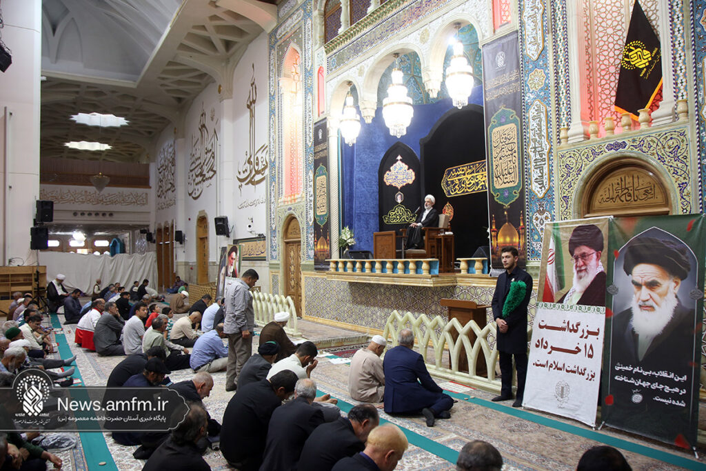 اجتماع پایانی راهپیمایی گرامیداشت شهدای 15 خرداد 1342 با سخنرانی حجت الاسلام والمسلمین مجتبی ذوالنوری در شبستان امام خمینی(ره) حرم مطهر بانوی کرامت برگزار شد.