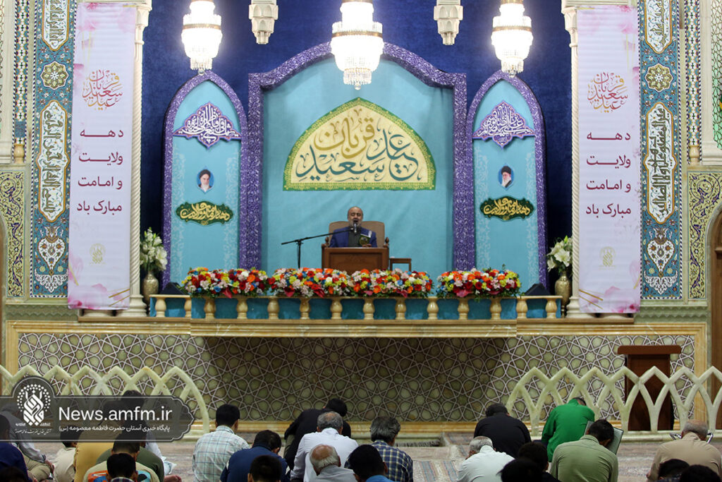 حرم مطهر حضرت فاطمه معصومه سلام الله علیها در شب عید سعید قربان میزبان زائرانی از شهرهای مختلف بود و مراسم جشنی با سخنرانی حجتالاسلام والمسلمین حبیب الله فرحزاد و مداحی مهدی حیدرزاده برگزار شد.
