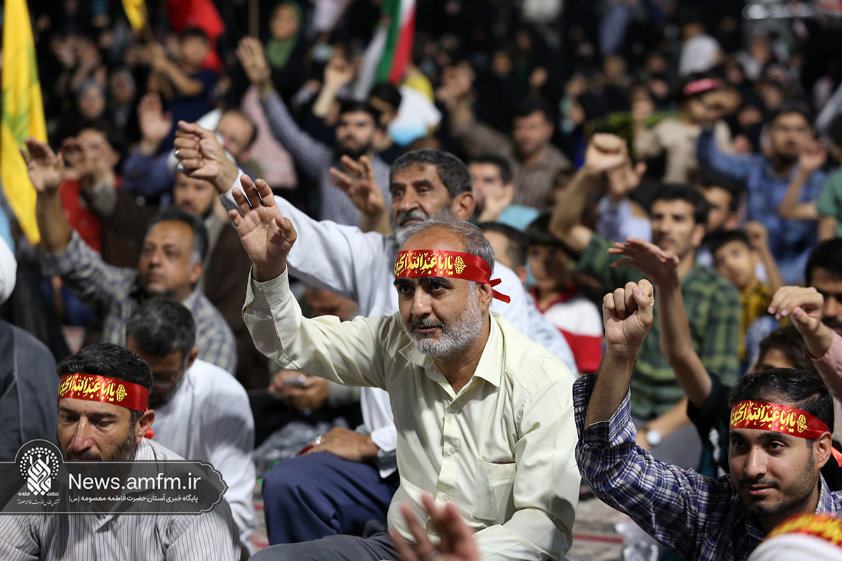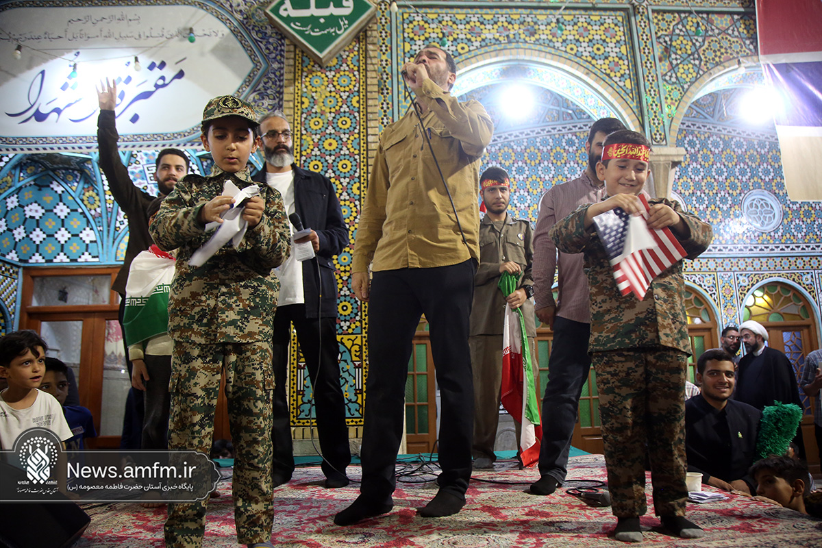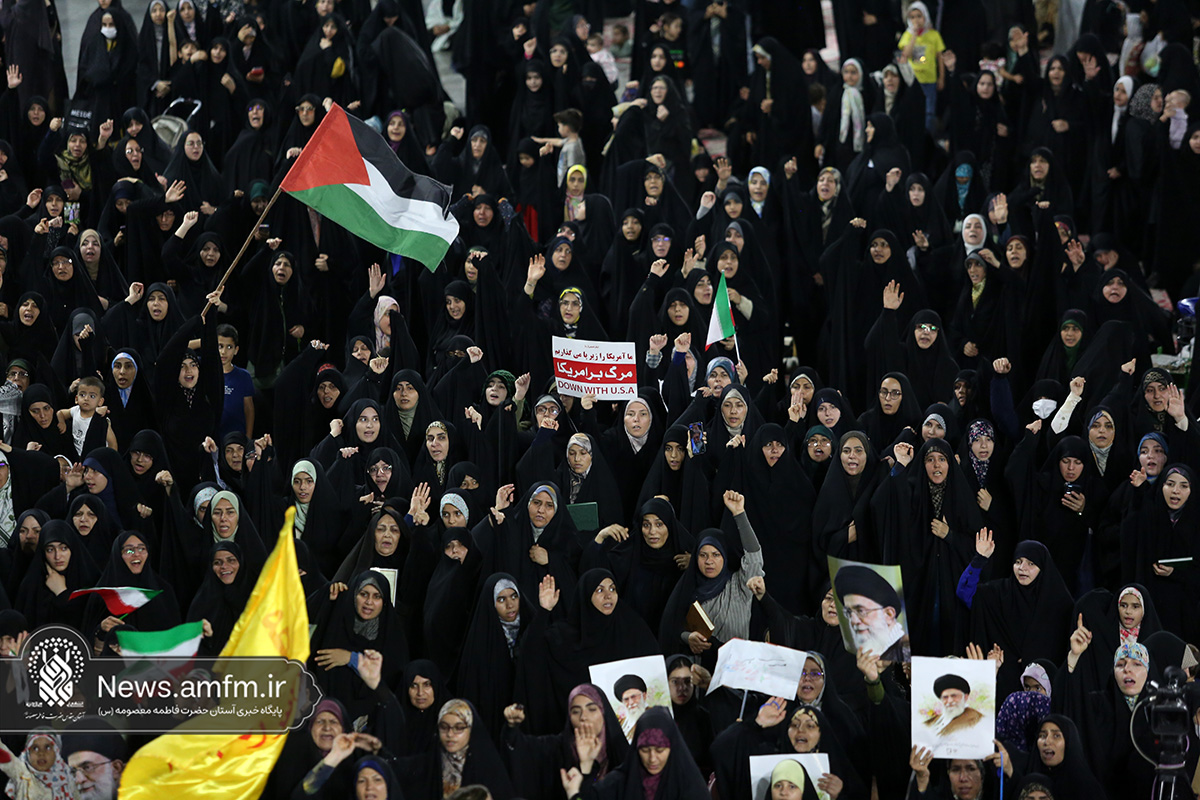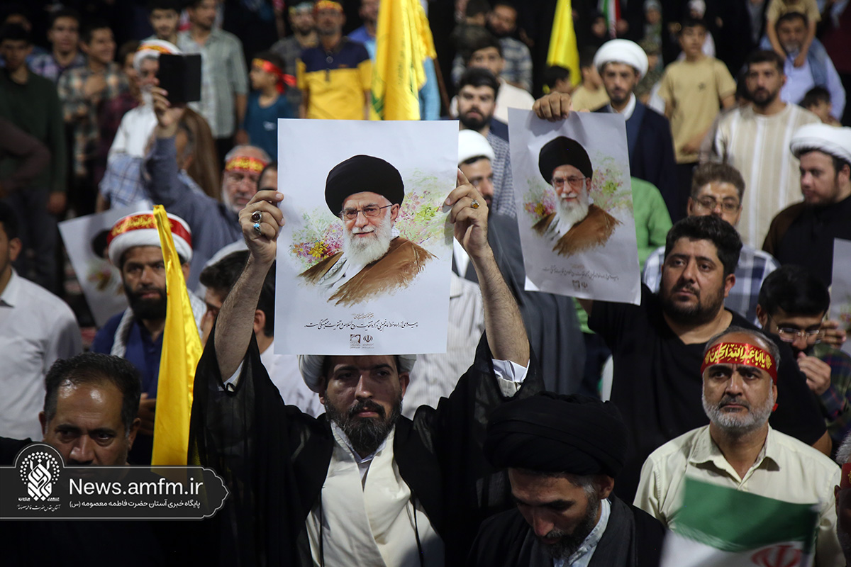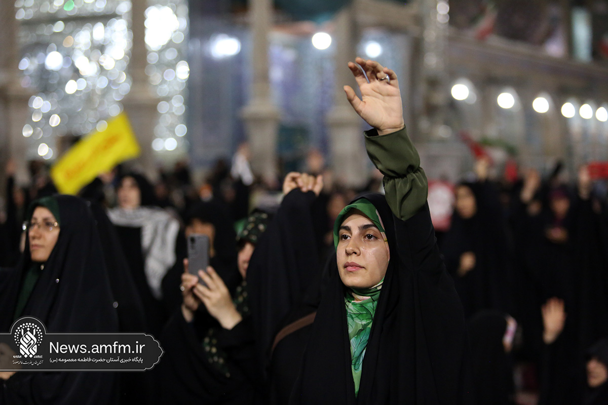 مردم متدین و انقلابی قم با حضور پرشور در حرم مطهر حضرت فاطمه معصومه سلام الله علیها ضمن اعلام انزجار از تجاوزات آمریکا و رژیم صهیونیستی به خاک کشور فریاد انتقام سر دادند.