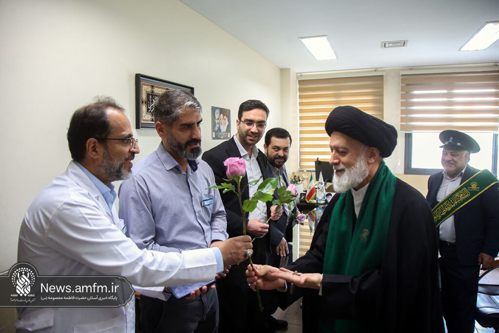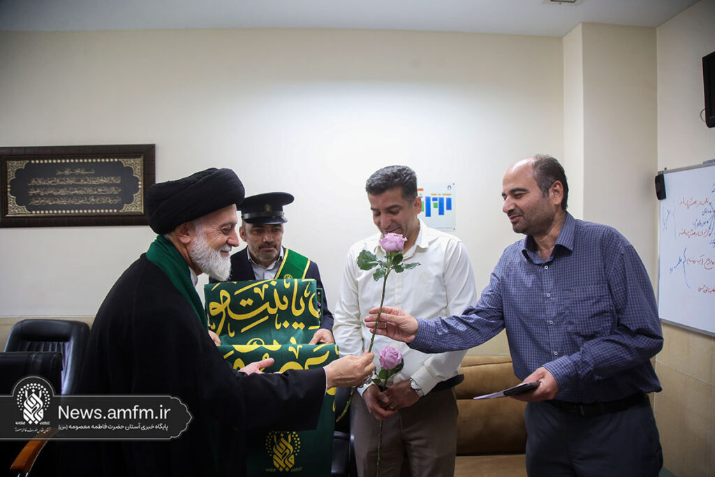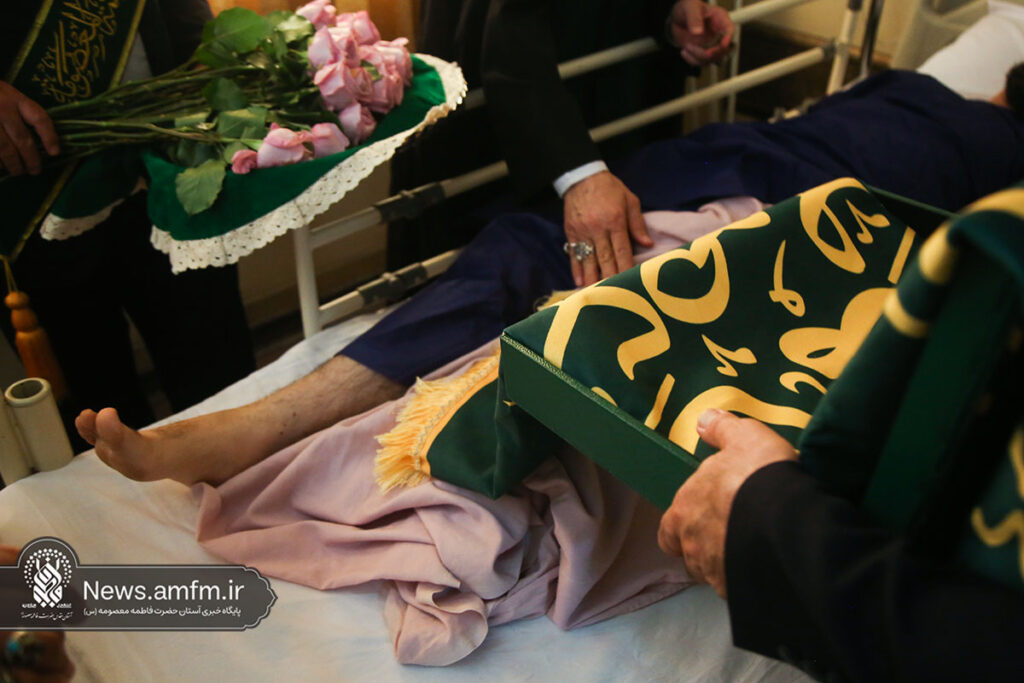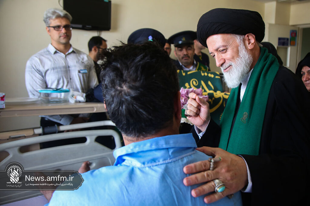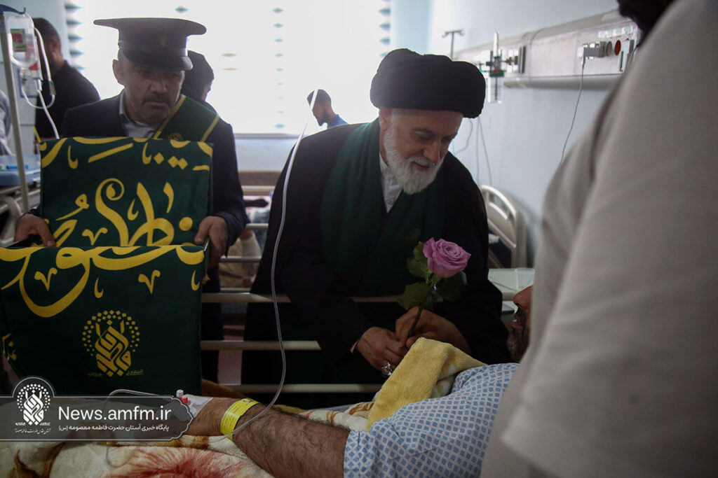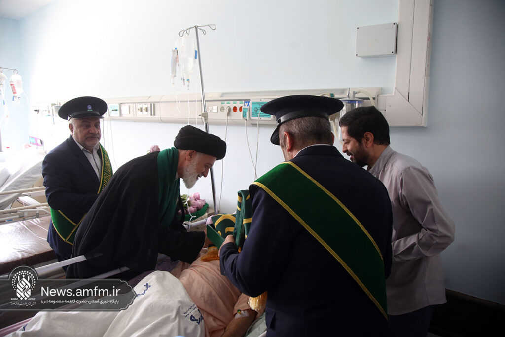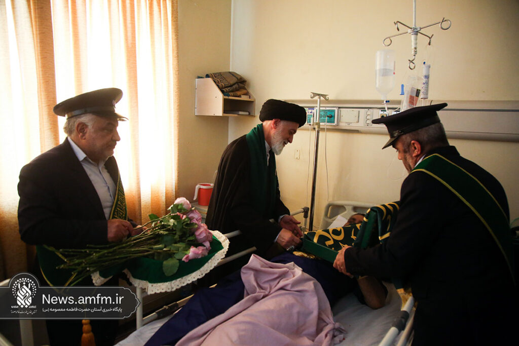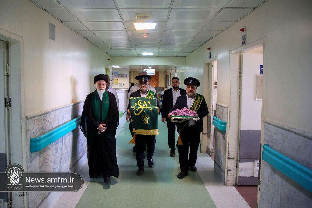 جمعی از خادمان حرم مطهر حضرت فاطمه معصومه سلام الله علیها به همراه پرچم متبرک این آستان مقدس با حضور در بیمارستان شهید بهشتی قم ضمن عیادت از مجروحان حملات رژیم اشغالگر از رئیس و پرستاران این بیمارستان تقدیر کردند.