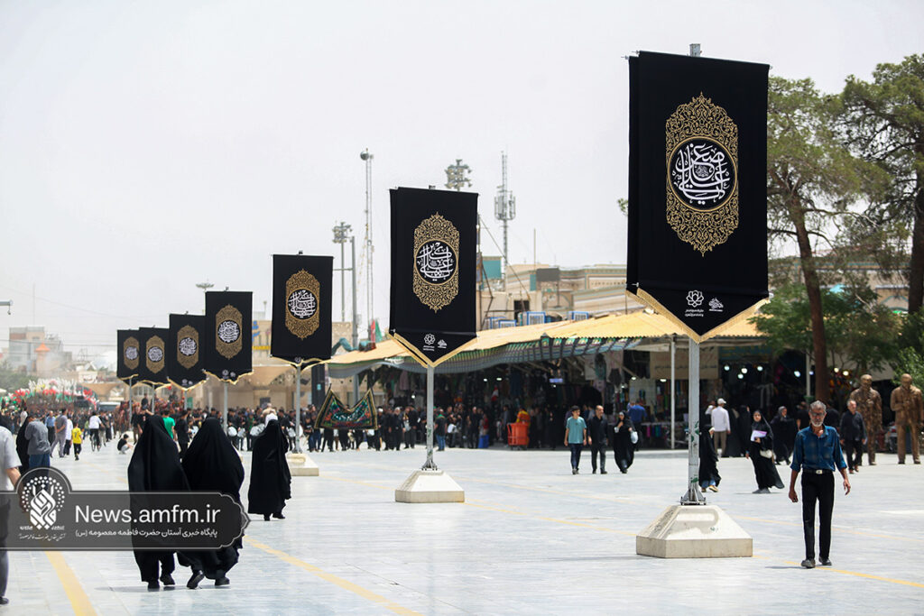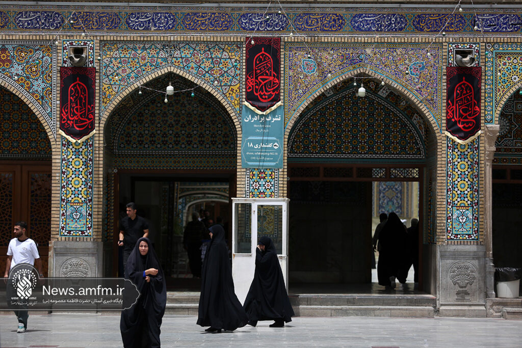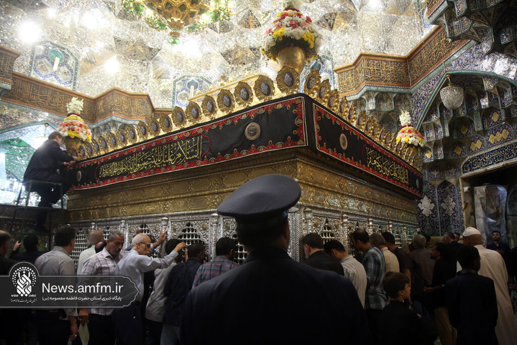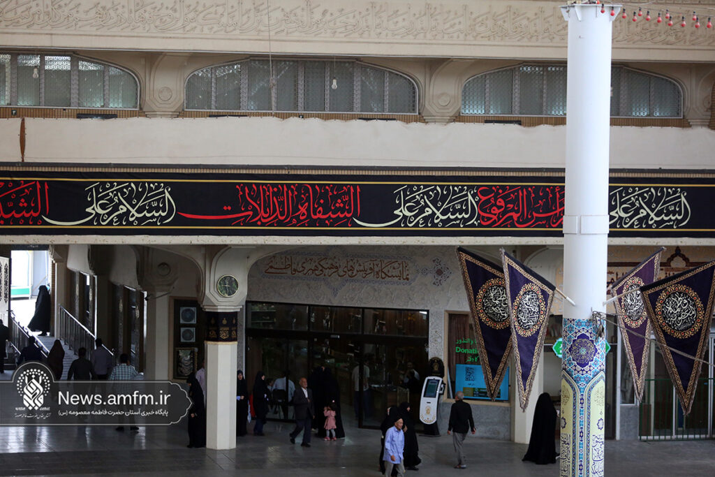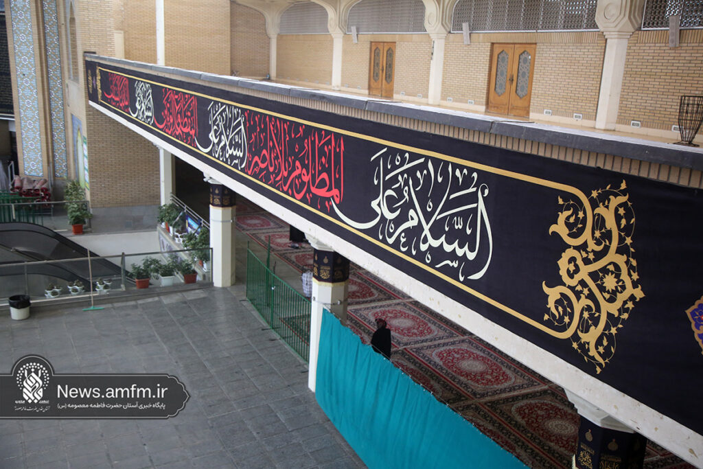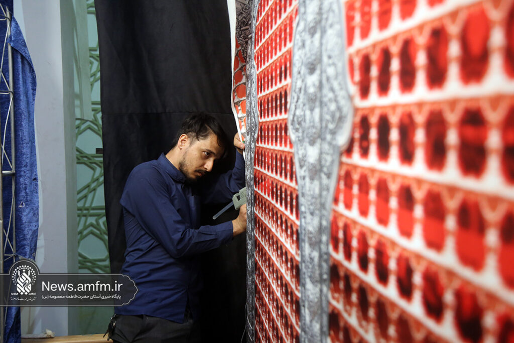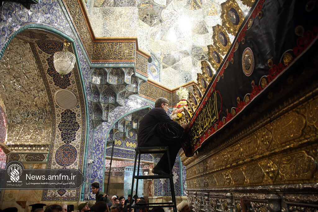 خادمان حرم مطهر بانوی کرامت در آستانه فرارسیدن ماه محرم ضریح مطهر و صحن و سرای حرم را سیاهپوش کردند.