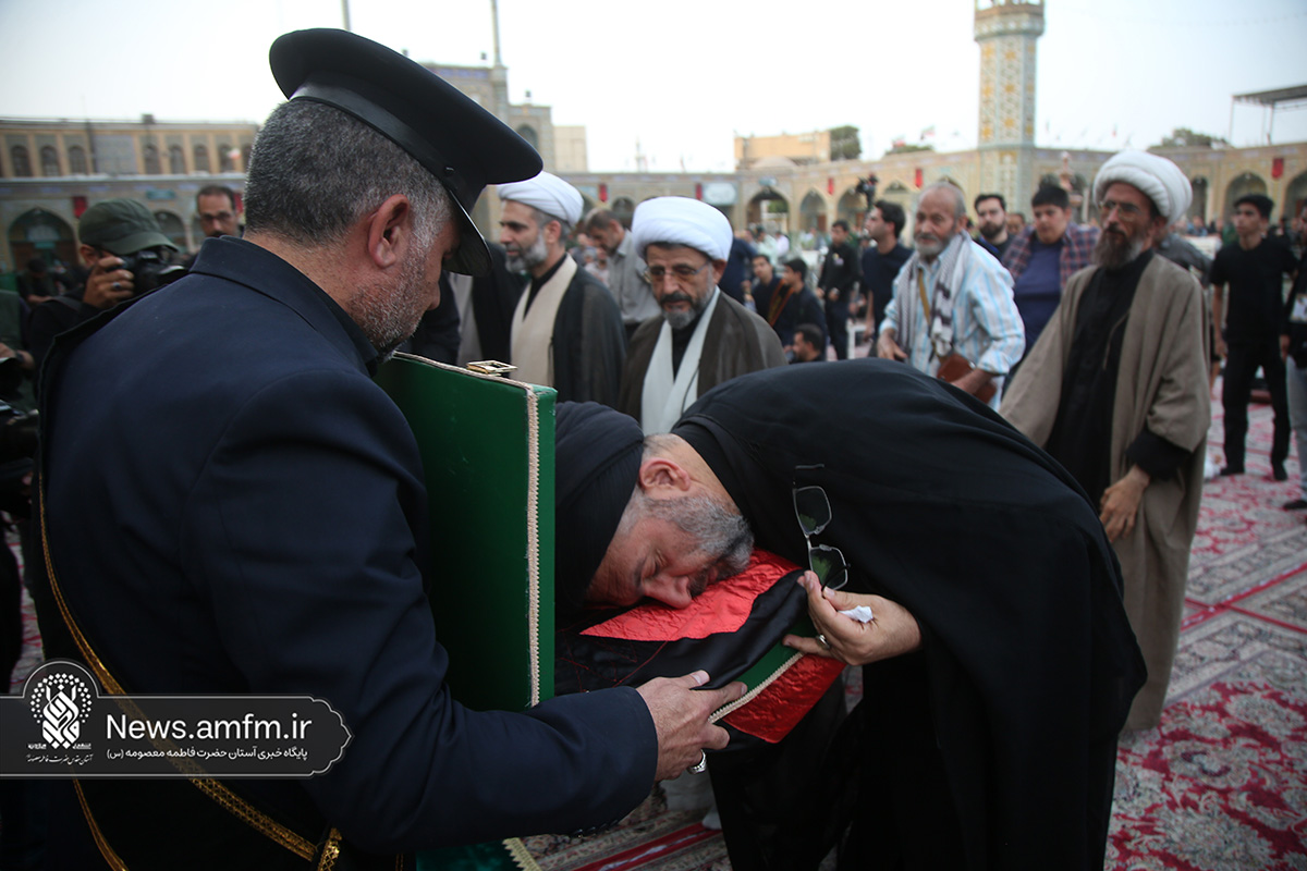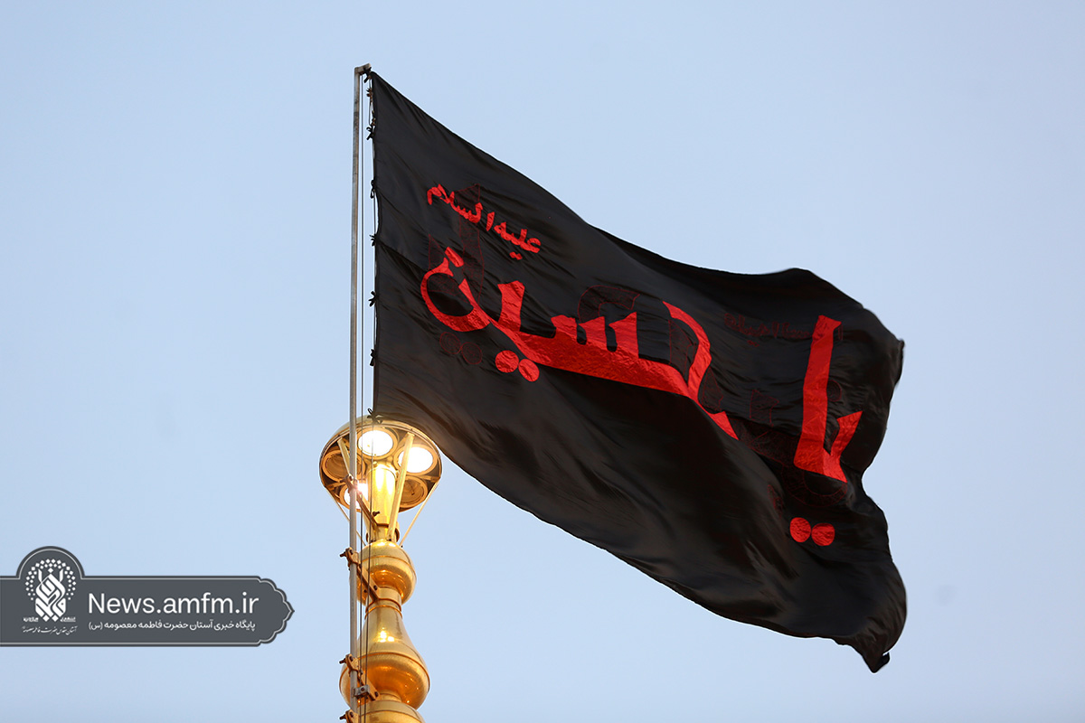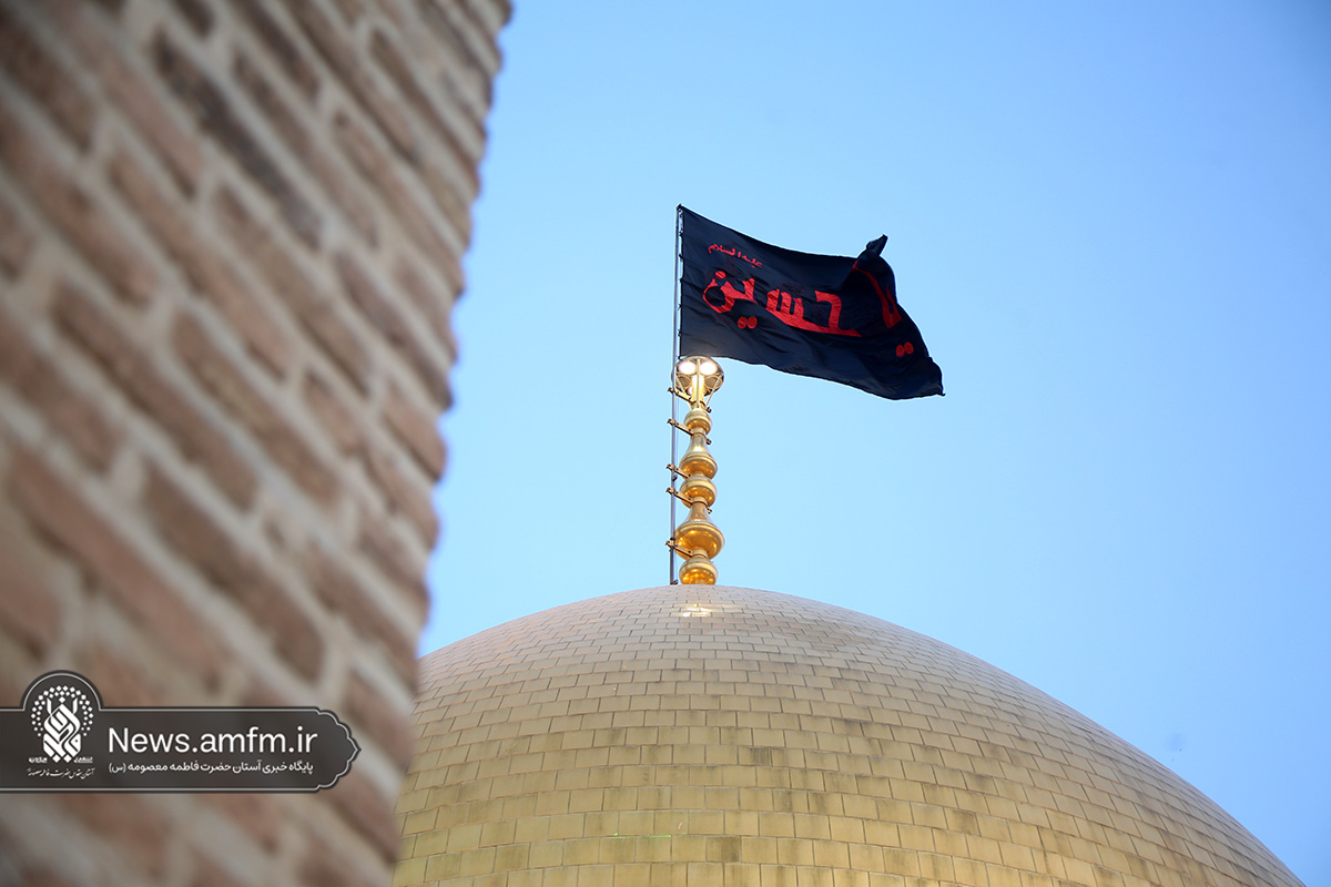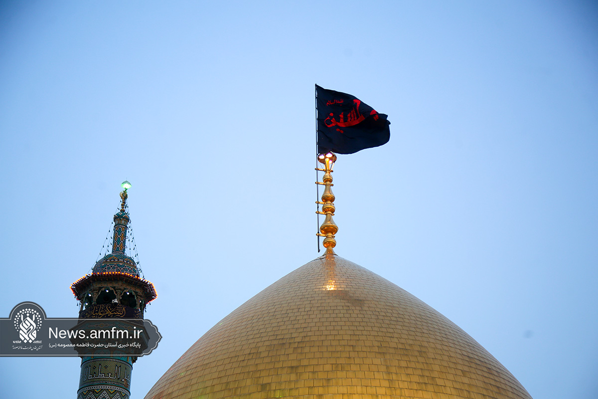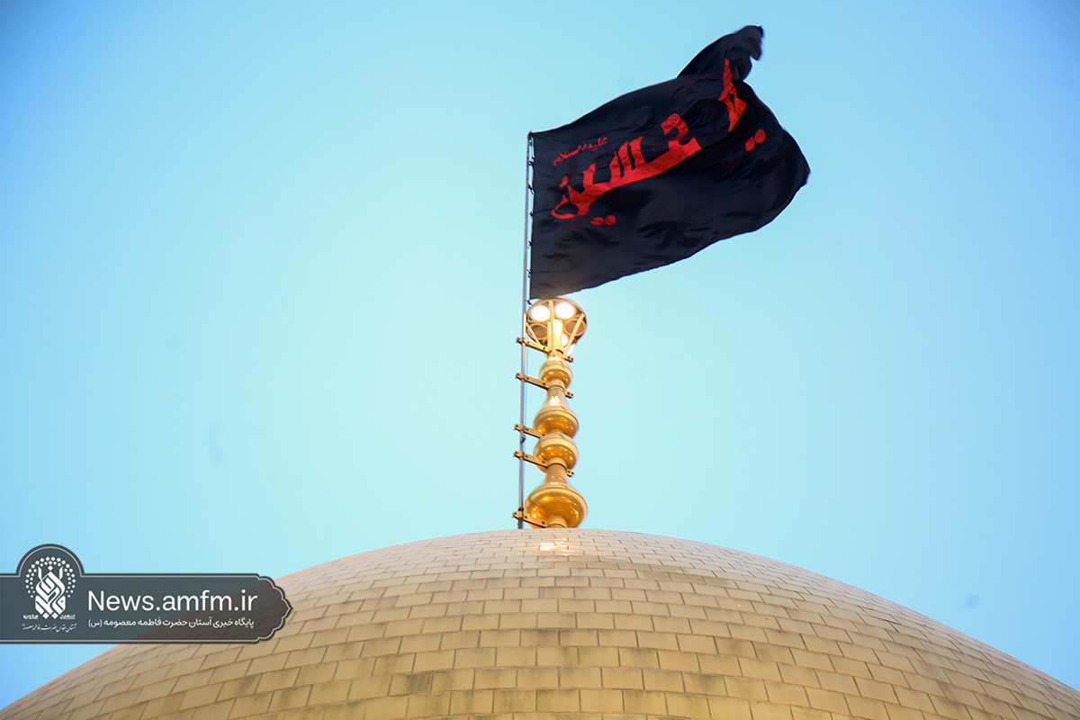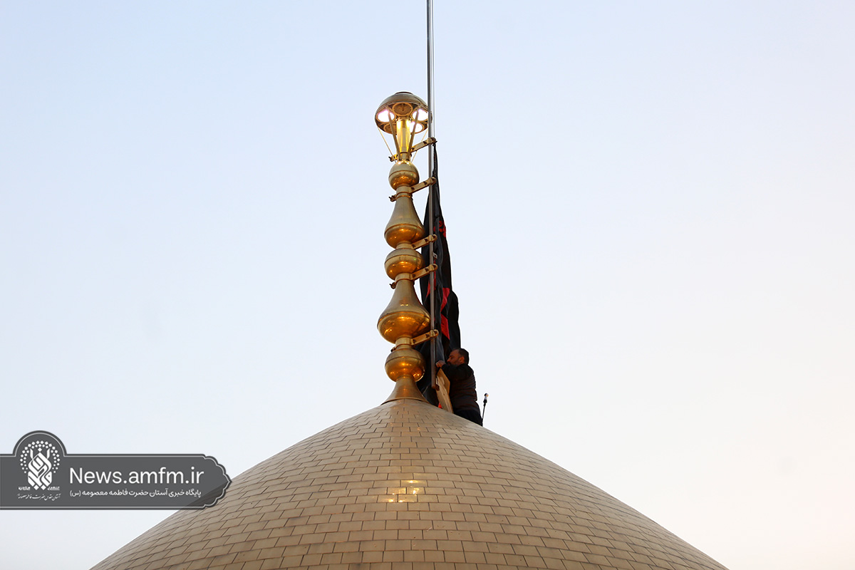 پرچم سیاه عزای سیدالشهدا علیه السلام در آستانه فرارسیدن ماه محرم و ایام سوگواری اباعبدالله الحسین علیه السلام در مراسمی با سخنرانی حجتالاسلام والمسلمین مؤمنی و مداحی سید محسن بنی فاطمی بر فراز گنبد مطهر حرم حضرت فاطمه معصومه سلام الله علیها برافراشته شد.