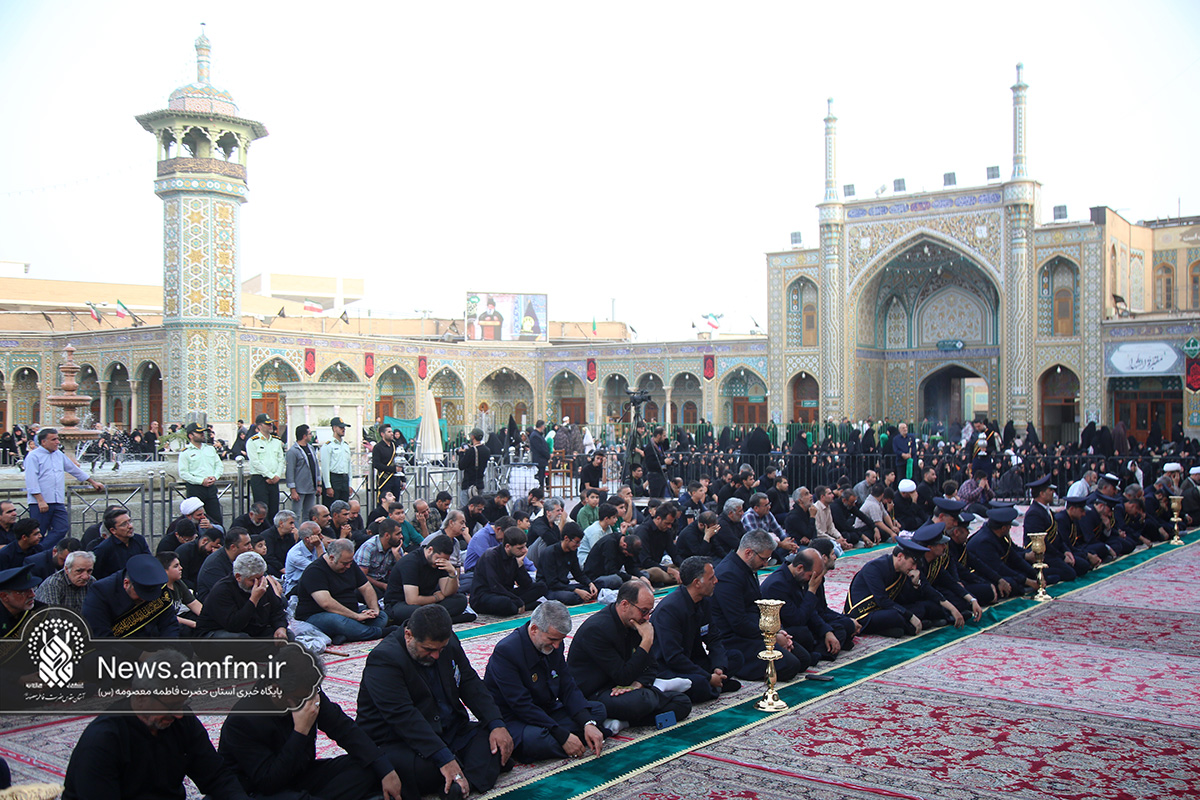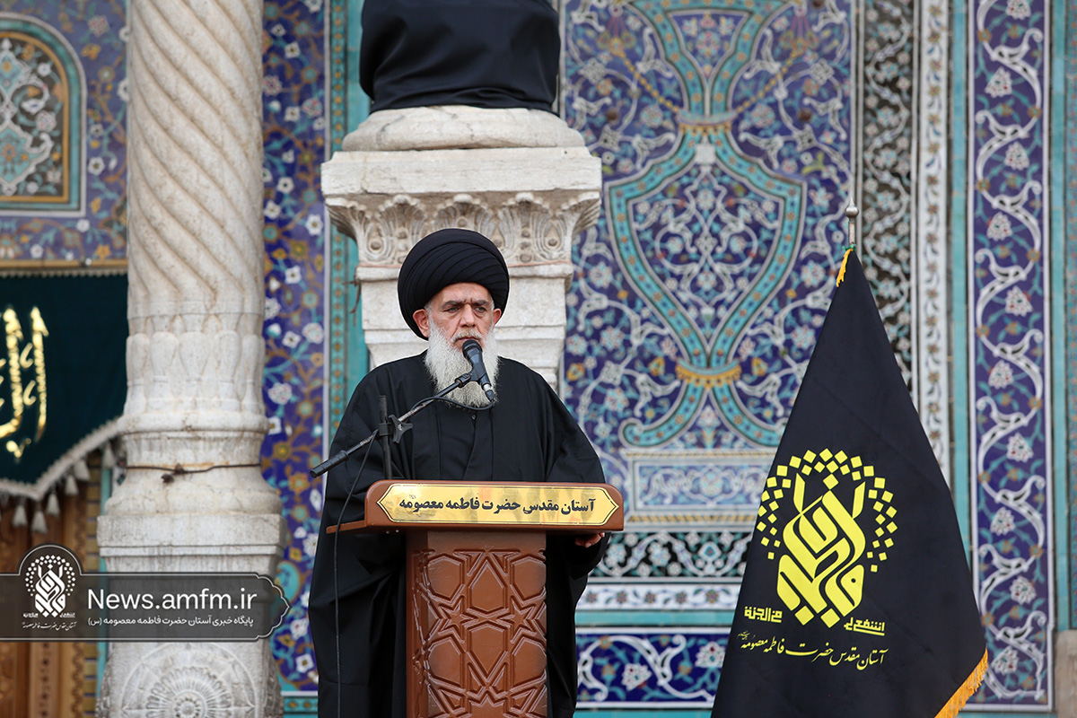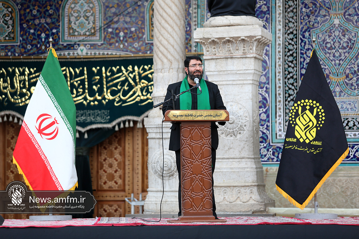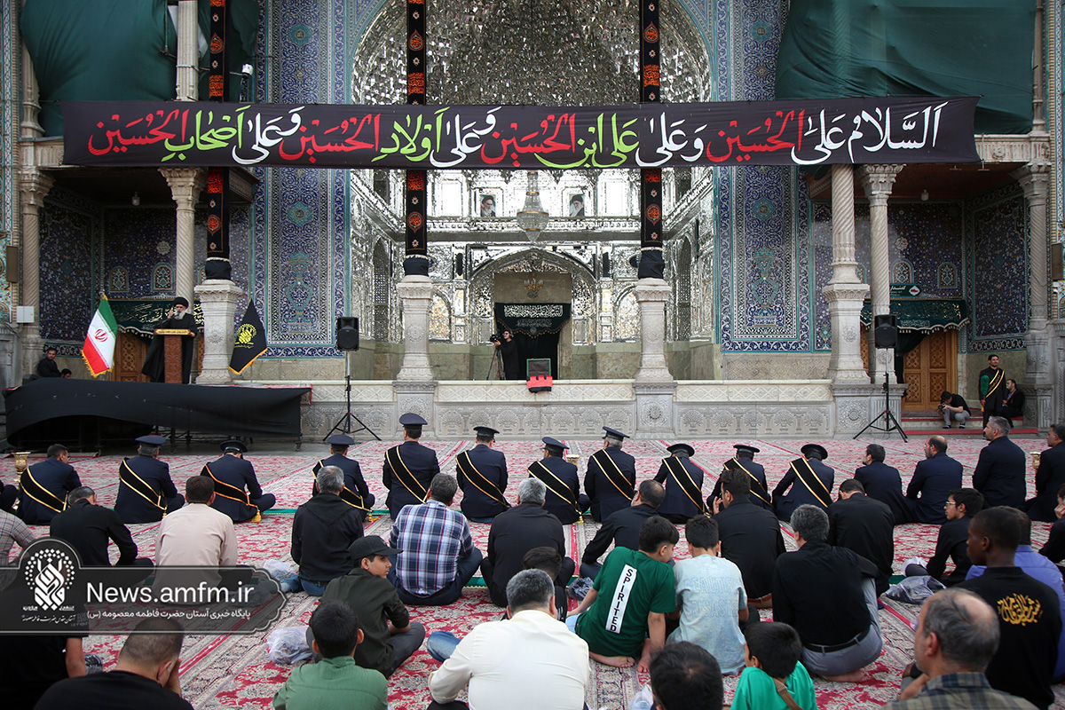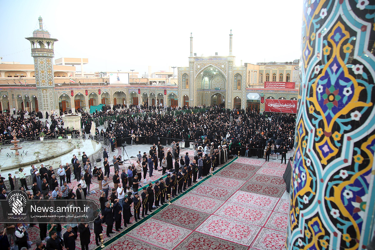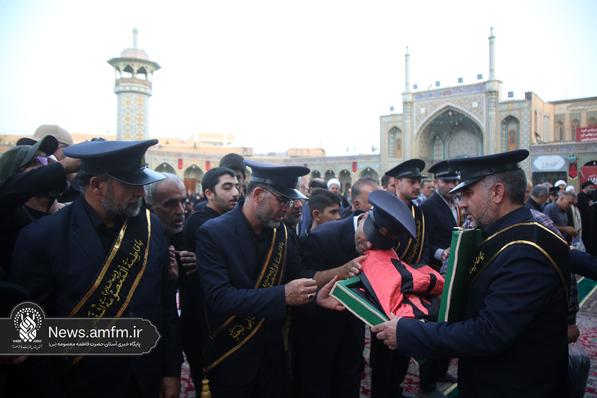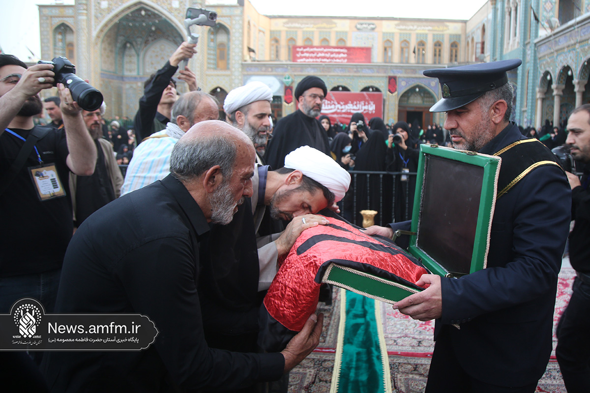 پرچم سیاه عزای سیدالشهدا علیه السلام در آستانه فرارسیدن ماه محرم و ایام سوگواری اباعبدالله الحسین علیه السلام در مراسمی با سخنرانی حجتالاسلام والمسلمین مؤمنی و مداحی سید محسن بنی فاطمی بر فراز گنبد مطهر حرم حضرت فاطمه معصومه سلام الله علیها برافراشته شد.