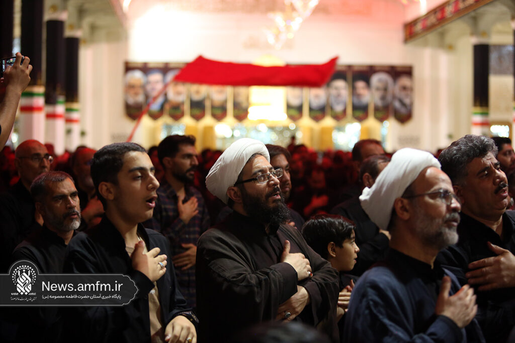مراسم بزرگداشت شهدای حملات رژیم صهیونی در استان قم و شهدای هفتم تیر در عزاداری شب دوم محرم در حرم مطهر حضرت فاطمه معصومه سلام الله علیها با سخنرانی آیتالله میرباقری، مداحی حسن شالبافان، قرائت قرآن مهدی تقی پور و شعرخوانی احمد بابایی برگزار شد.