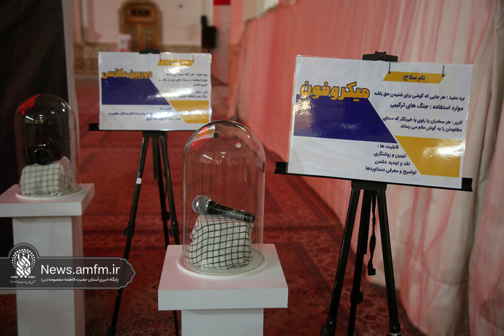 به گزارش پایگاه خبری آستان مقدس حضرت معصومه سلام الله علیها، اداره فرهنگی خواهران حرم مطهر بانوی کرامت با هدف دشمن شناسی، فعالیت هدفمند و حضور مقتدرانه بانوان در میدان نبرد و جنگ روایتها و مقابله هدفمند با دشمن “نمایشگاه سلاحت را انتخاب کن” را برای بانوان در حاشیه محفل “بفرمایید روضه” برپا کرده است.