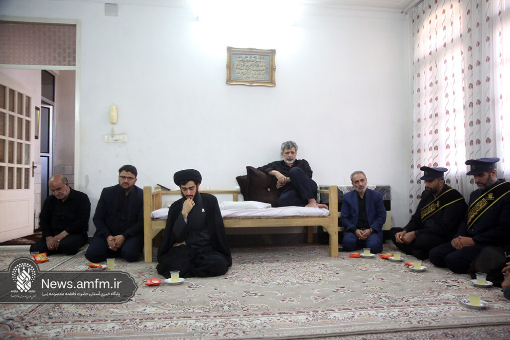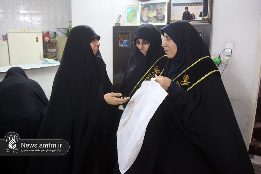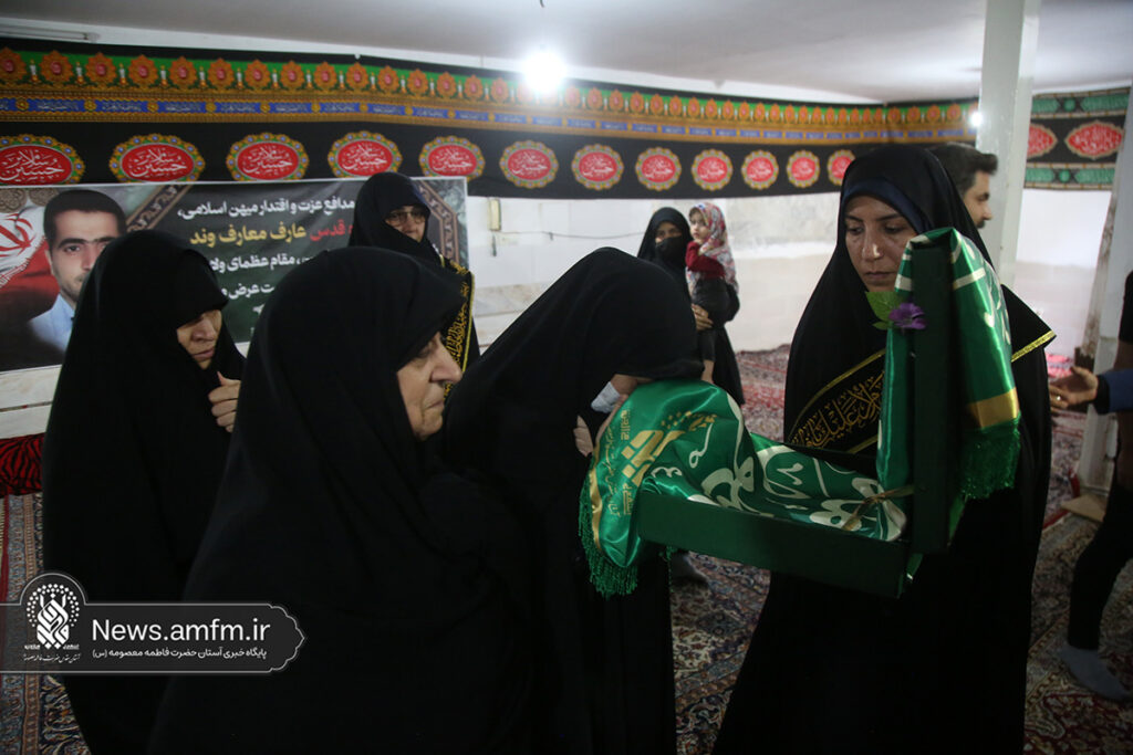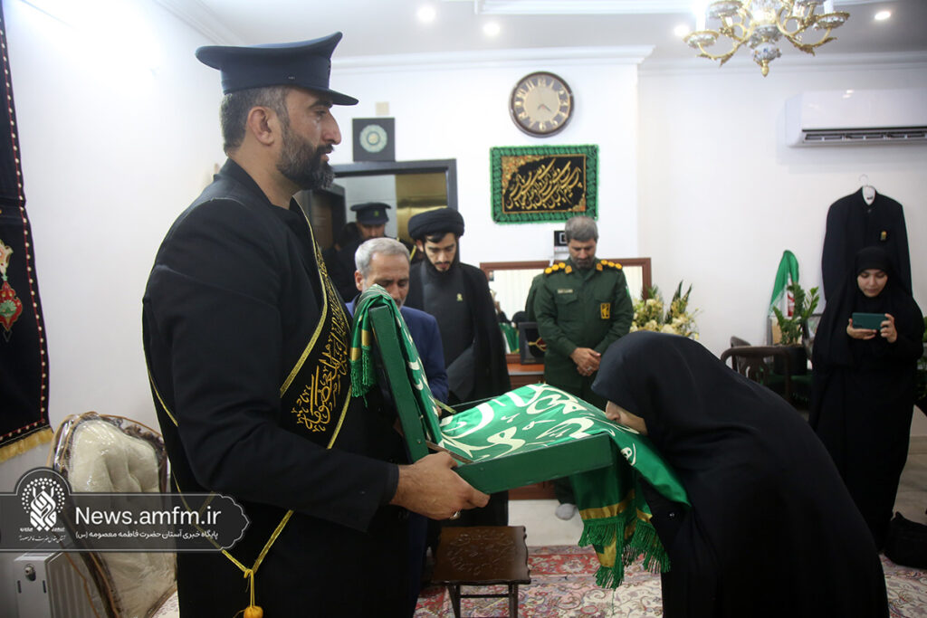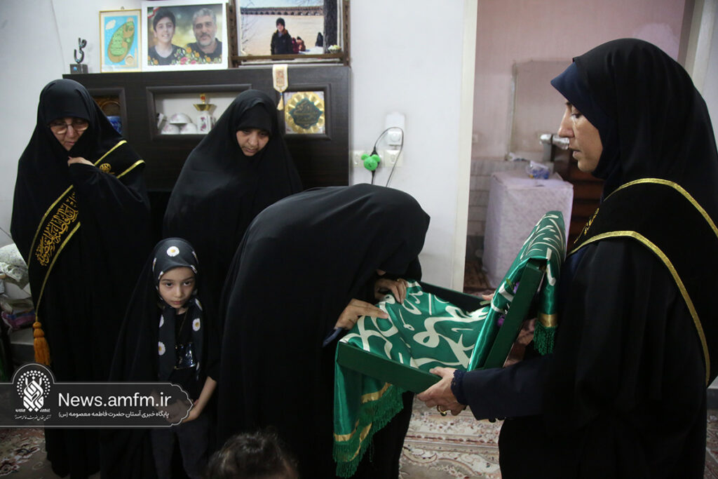 جمعی از خادمان حرم مطهر حضرت فاطمه معصومه سلام الله علیها به همراه پرچم متبرک حرم مطهر با حضور در منزل شهیدان خاکی، معارفوند و پرتویان از خانواده‌ این شهدای تجاوز رژیم اشغالگر قدس به ایران تجلیل کردند.