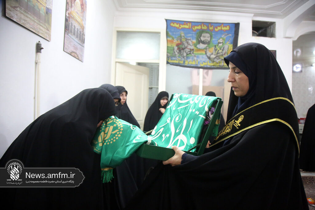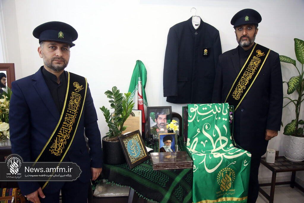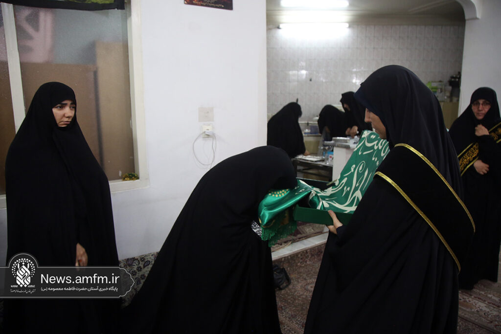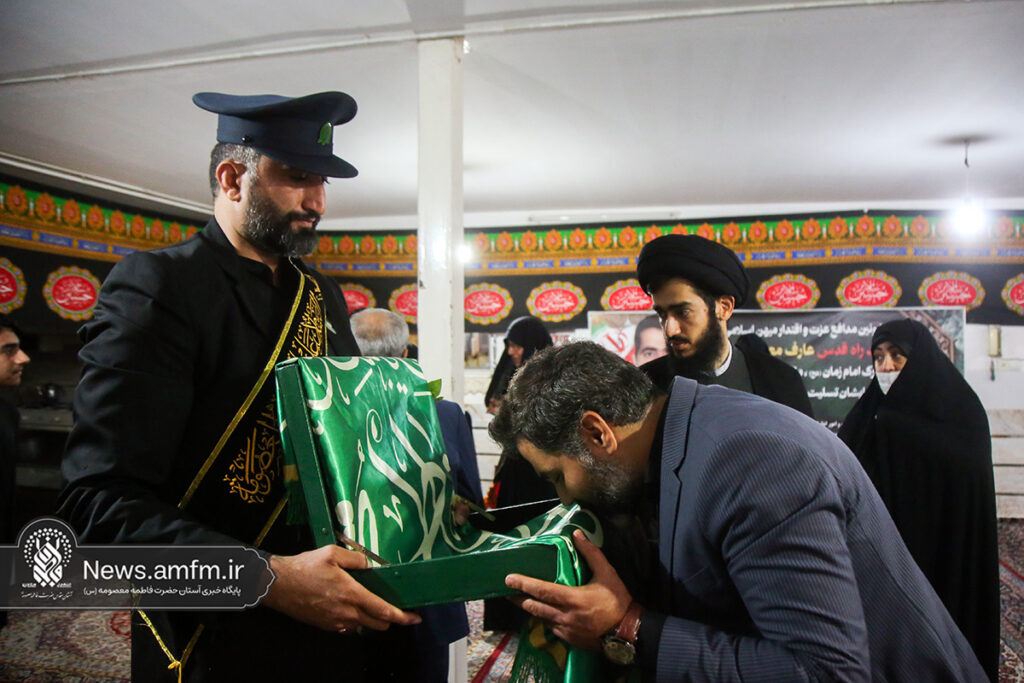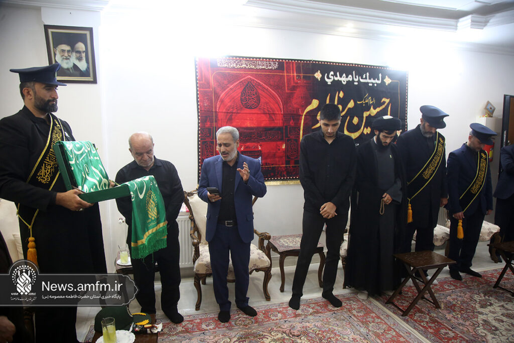 جمعی از خادمان حرم مطهر حضرت فاطمه معصومه سلام الله علیها به همراه پرچم متبرک حرم مطهر با حضور در منزل شهیدان خاکی، معارفوند و پرتویان از خانواده‌ این شهدای تجاوز رژیم اشغالگر قدس به ایران تجلیل کردند.