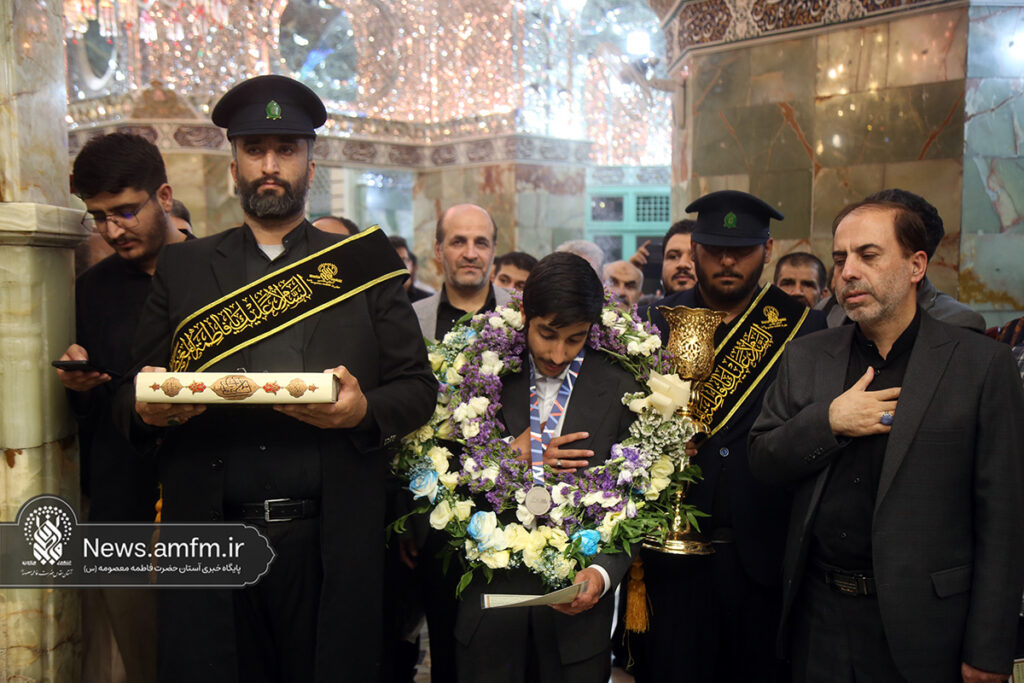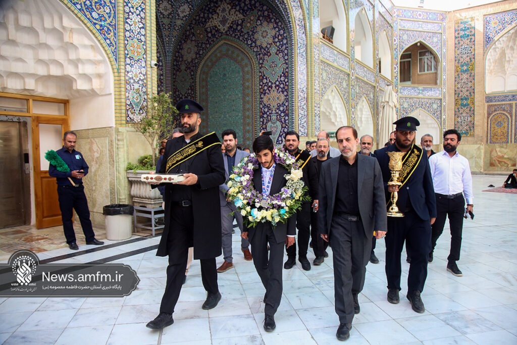 به گزارش پایگاه خبری آستان مقدس حضرت فاطمه معصومه سلاماللهعلیها، محمدحسن صادقی نژاد دانش آموز مدرسه استعدادهای درخشان شهید قدوسی قم، پس از کسب مدال نقره المپیاد فیزیک ۲۰۲۵ در کشور فرانسه به محض ورود به شهر مقدس قم به زیارت حرم مطهر بانوی کرامت مشرف شد و به ساحت مقدس بانوی کرامت ادای احترام کرد.