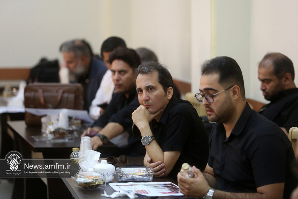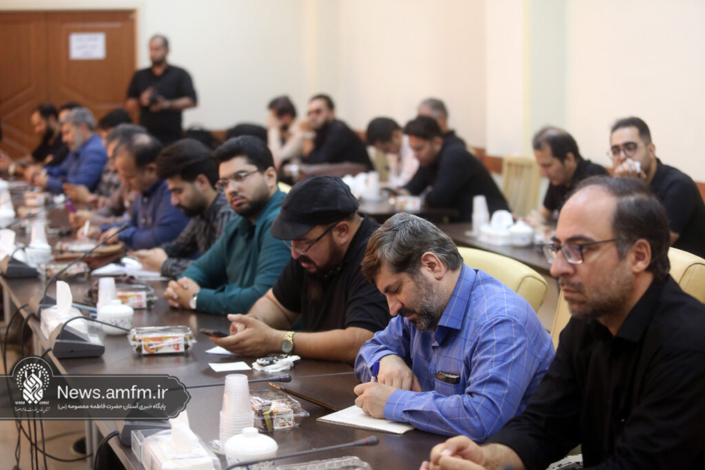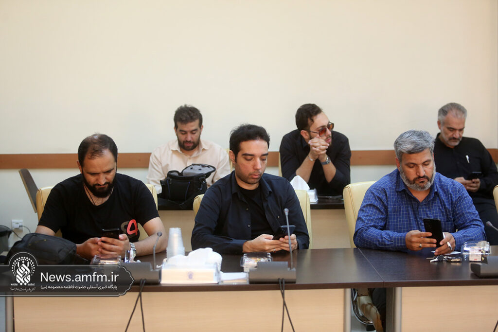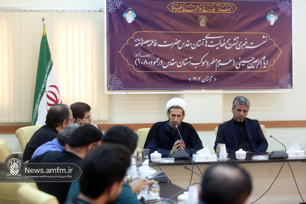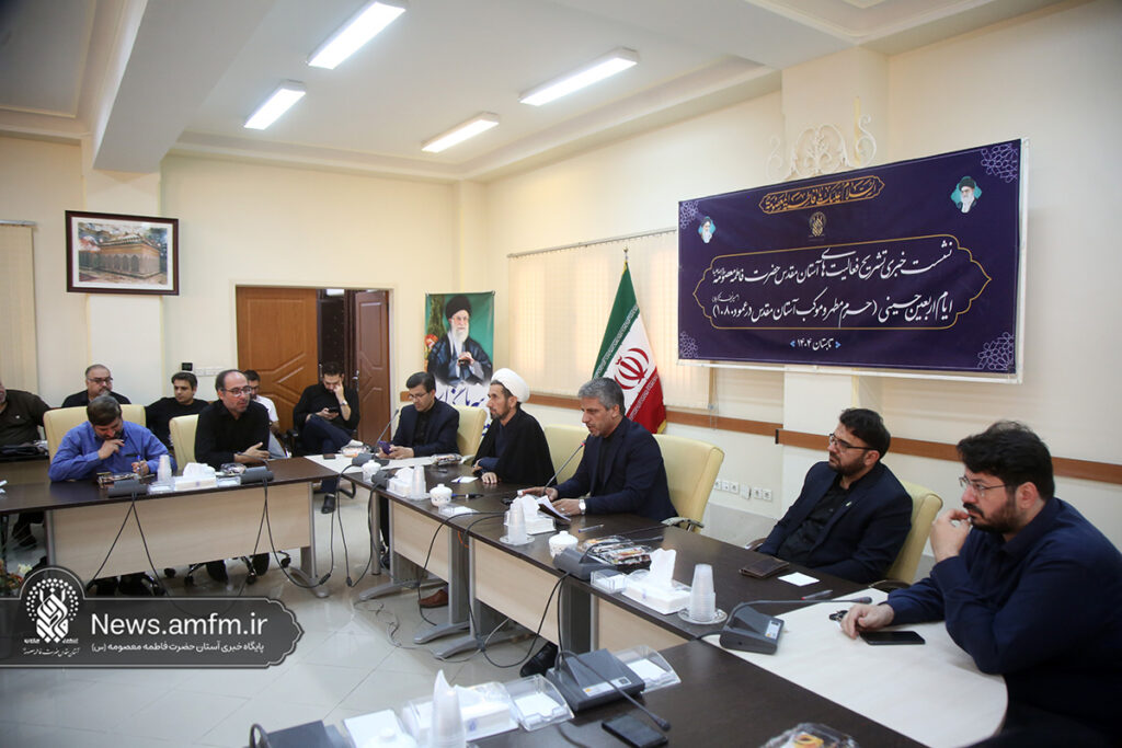 نشست خبری تشریح فعالیتهای حرم مطهر بانوی کرامت در ایام اربعین حسینی در حرم مطهر و موکب عمود ۱۰۸۰ مسیر پیاده روی نجف به کربلا در کشور عراق با حضور هادی محمودنژاد مدیر موکب حرم مطهر و حجت الاسلام والمسلمین صفر فلاحی مدیر عالی حرم مطهر در سالن جلسات پژوهشکده علامه طباطبایی (ره) برگزار شد.
