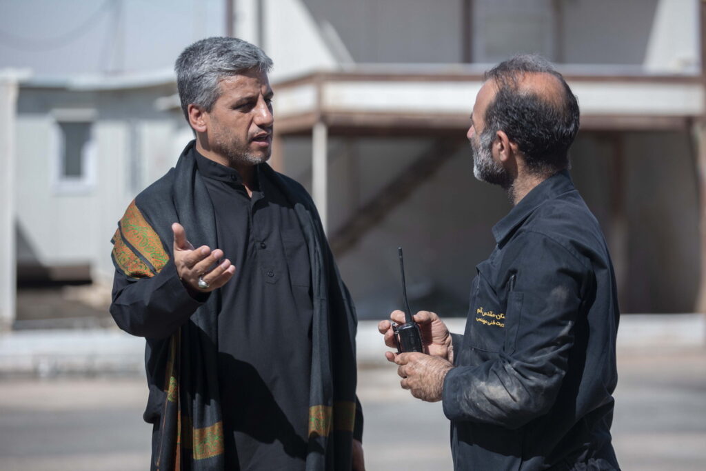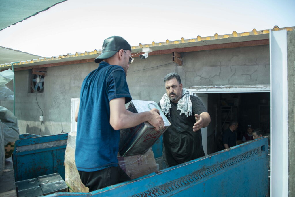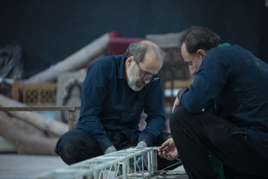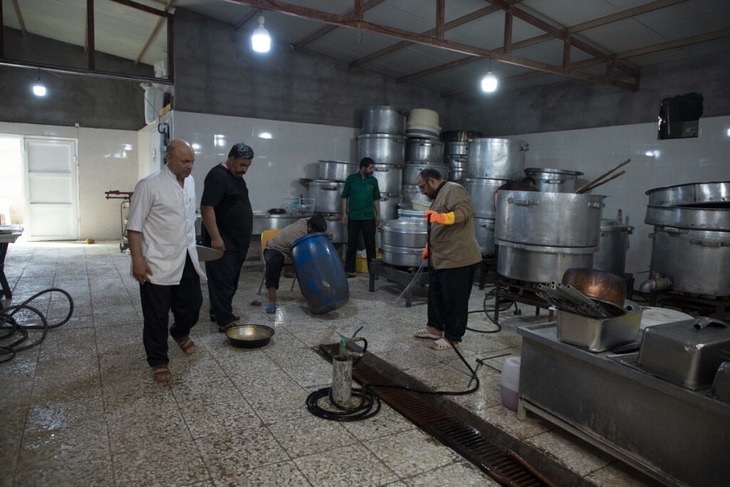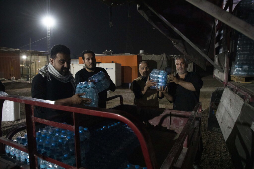 خادمان موکب حرم مطهر حضرت فاطمه معصومه سلام الله علیها در عمود 1080 مسیر پیاده روی نجف به کربلا این موکب را آماده خدمت رسانی هرچه بهتر به زائران اربعین حسینی کردند.
