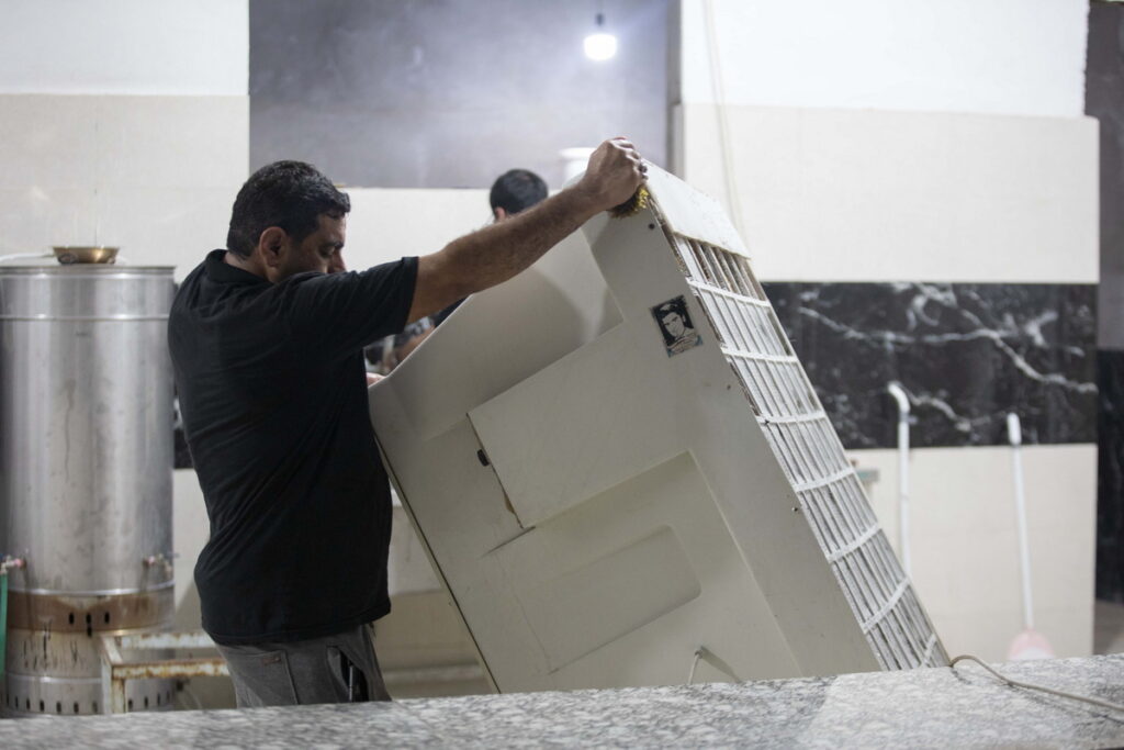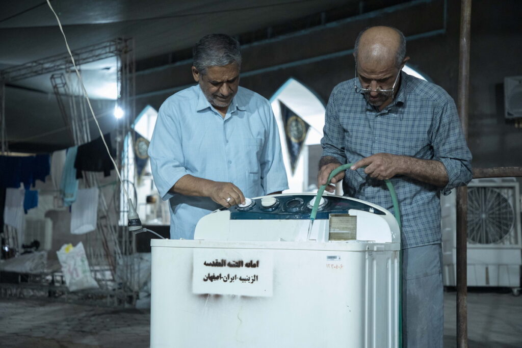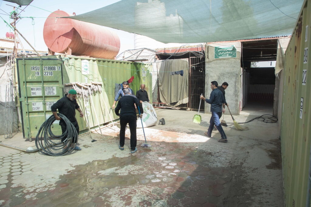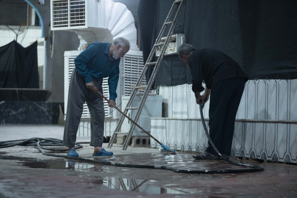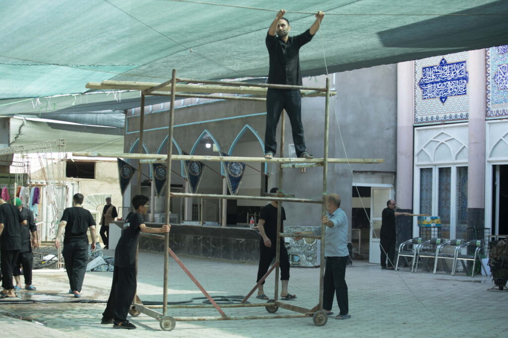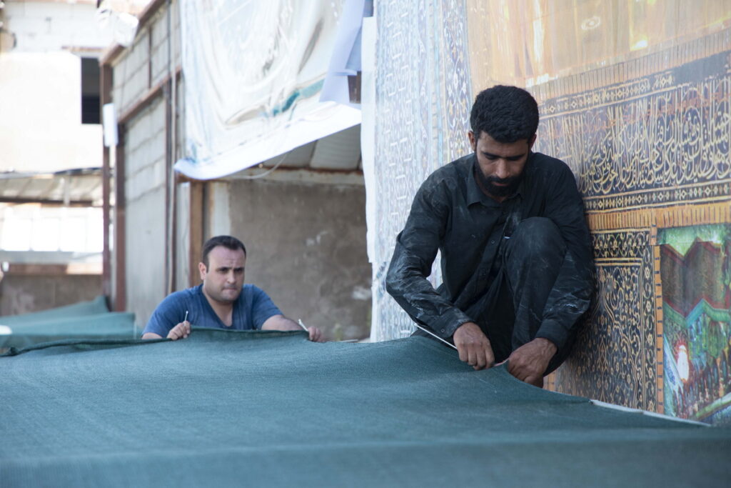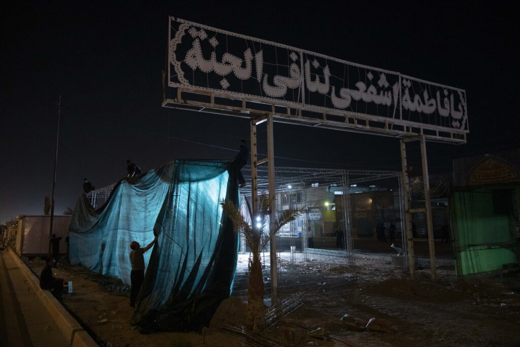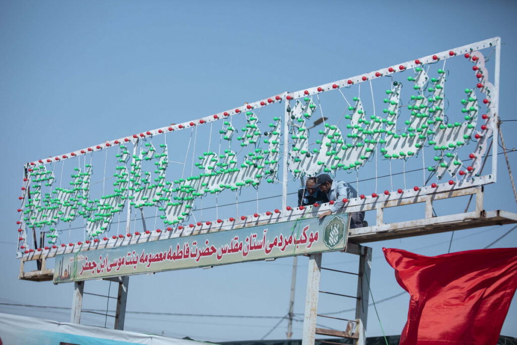 تلاش خادمان برای برپایی موکب حرم حضرت معصومه(س) در عمود ۱۰۸۰