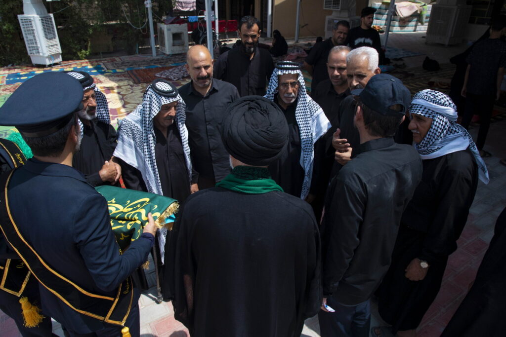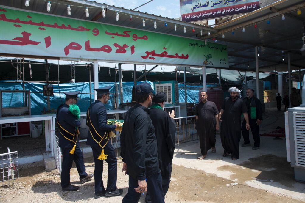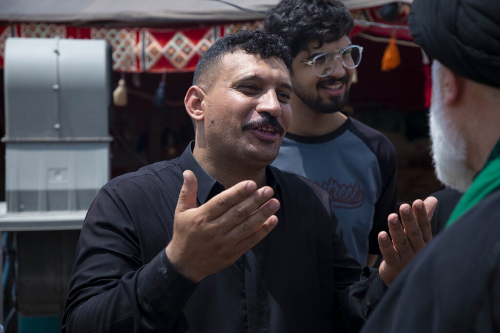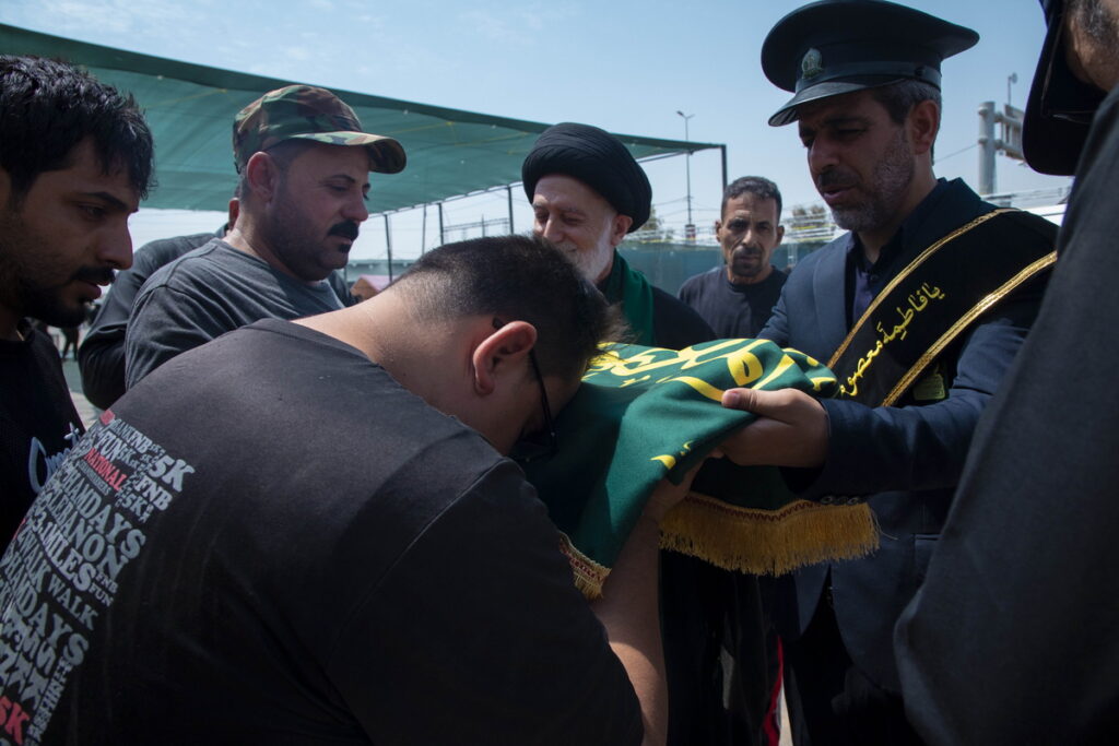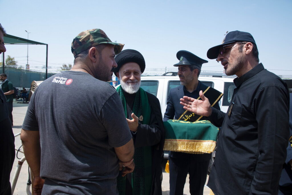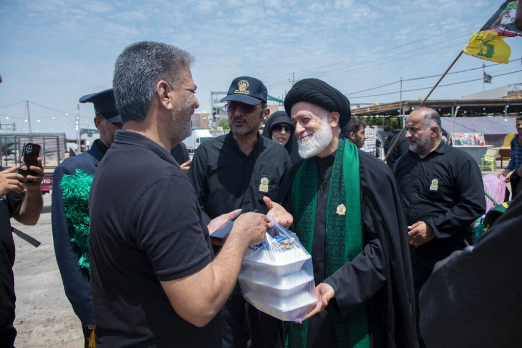 مسئول فرهنگی موکب حرم مطهر بانوی کرامت به همراه جمعی از خدام آستان مقدس حضرت فاطمه معصومه سلام الله علیها با حمل پرچم متبرک گنبد مطهر حرم کریمه اهل بیت(س) و توزیع متبرکات فاطمی برخی از موکبداران عراقی مسیر نجف تا کربلا را تکریم کردند.