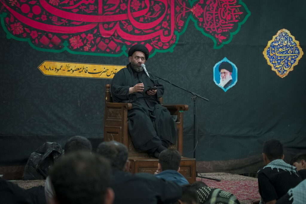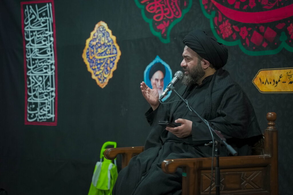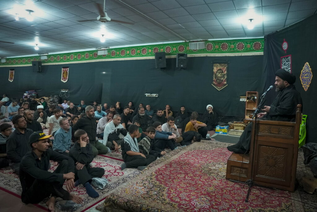 محفل معارفی و عزاداری در موکب حرم مطهر حضرت فاطمه معصومه سلام الله علیها در عمود 1080 مسیر پیاده روی نجف به کربلا شب گذشته با سخنرانی حجت‌الاسلام‌والمسلمین سید حسین آقامیری و مداحی حسن اسداللهی با حضور پرشور زائران اربعین برگزار شد.