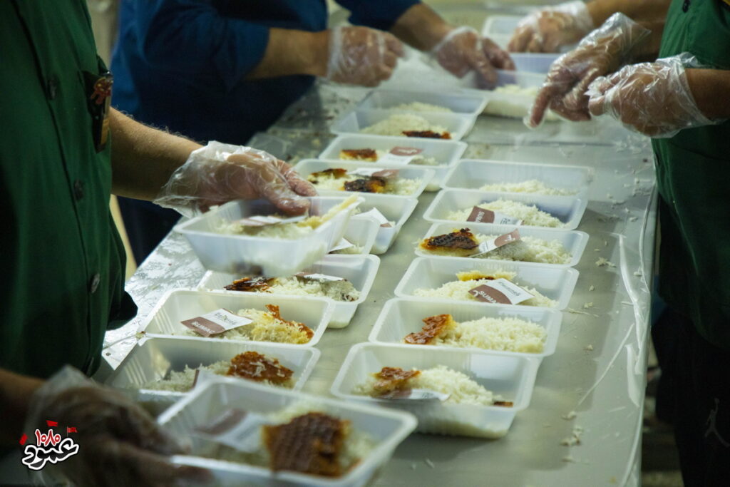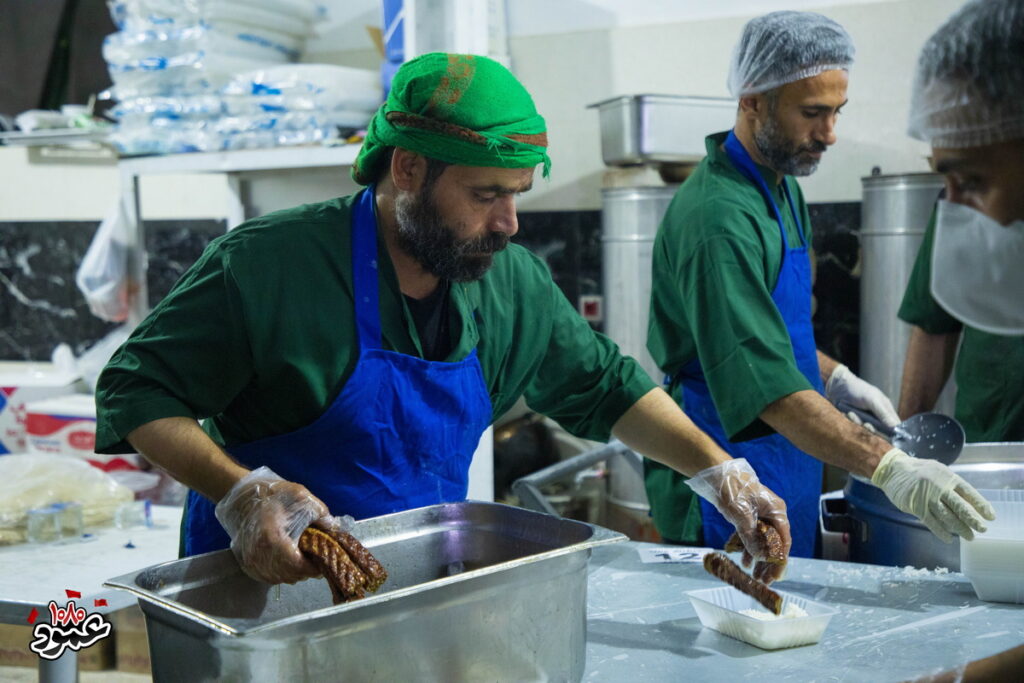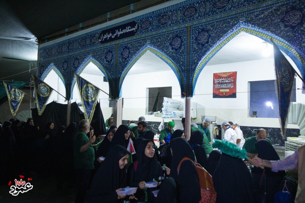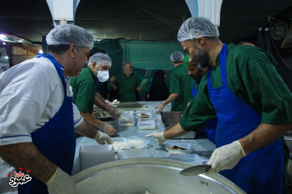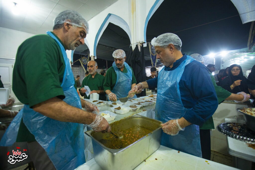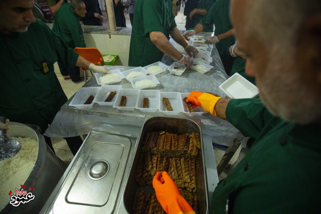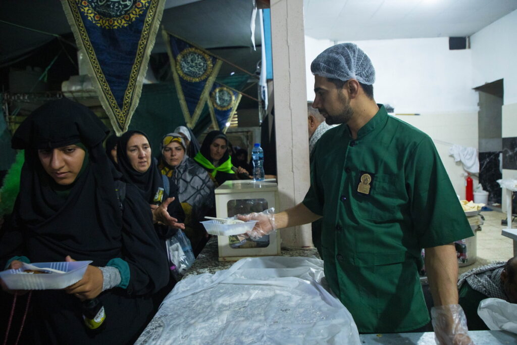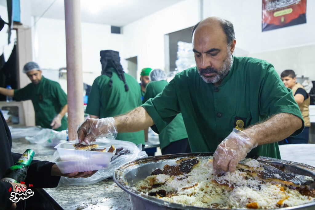 اطعام زائران در موکب حرم بانوی کرامت در روز اربعین
