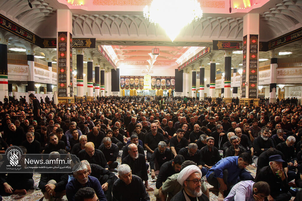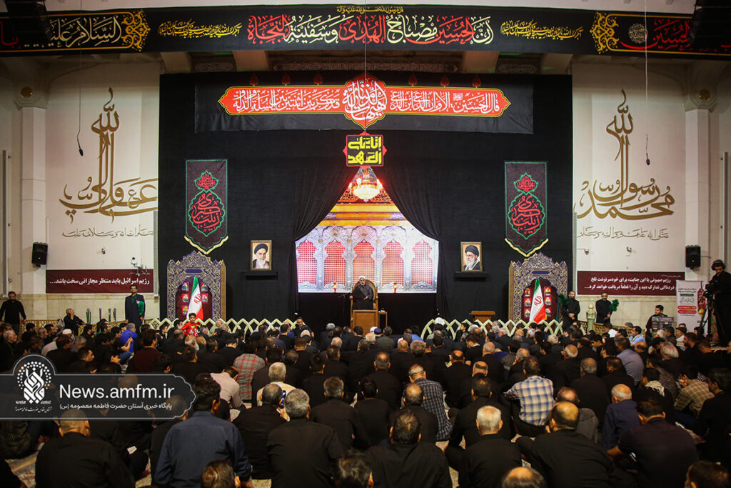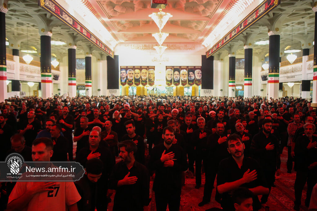 مراسم عزاداری ظهر روز اربعین حسینی با سخنرانی حجت الاسلام والمسلمین رفیعی و مداحی و قرائت زیارت اربعین با نوای سید مهدی میرداماد در شبستان امام خمینی(ره) حرم مطهر بانوی کرامت برگزار شد.