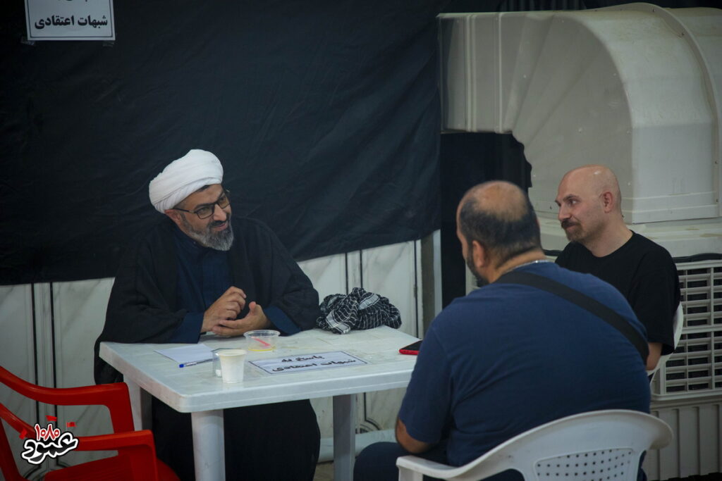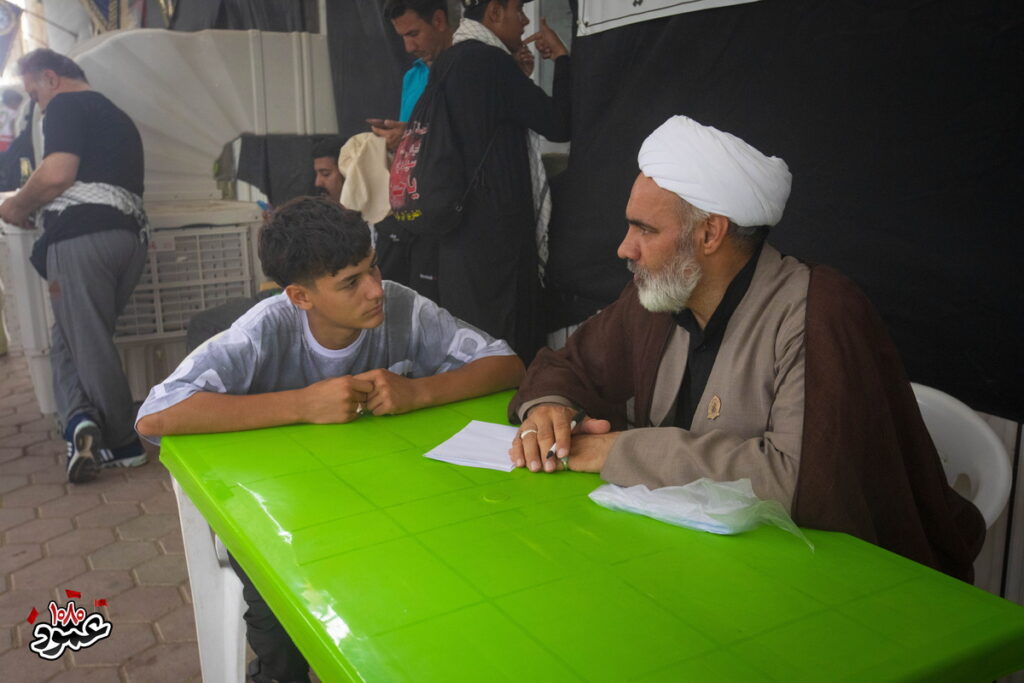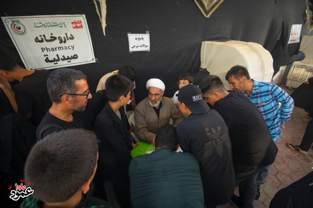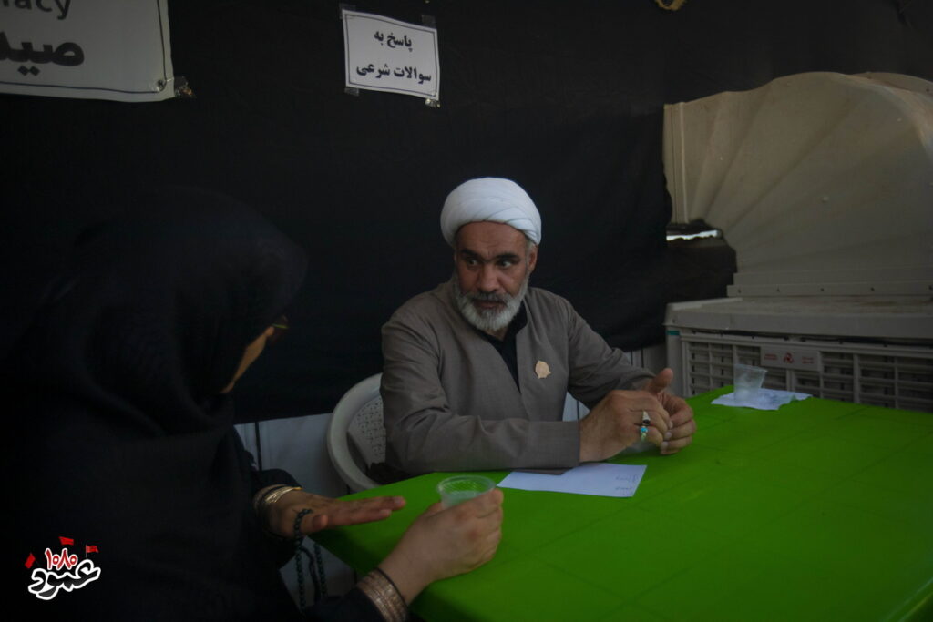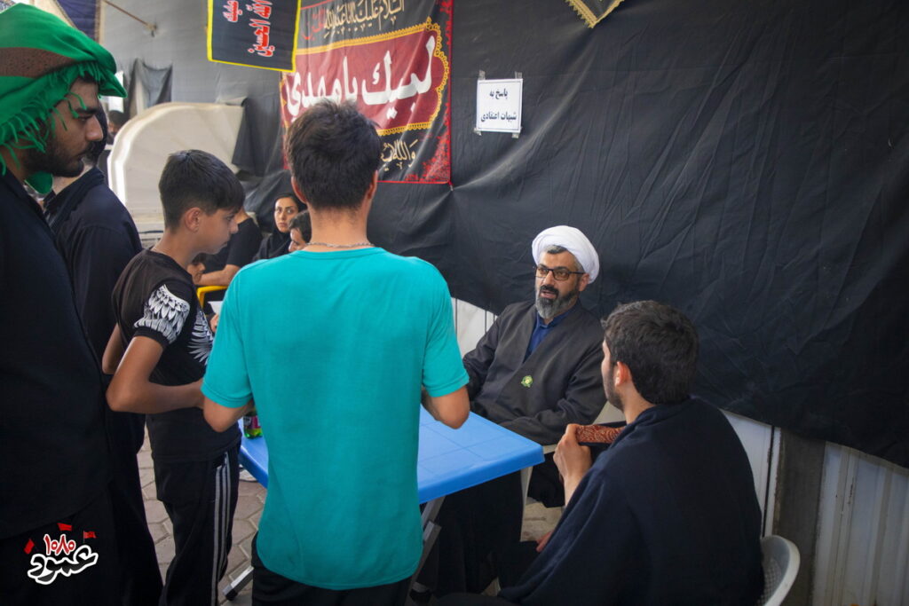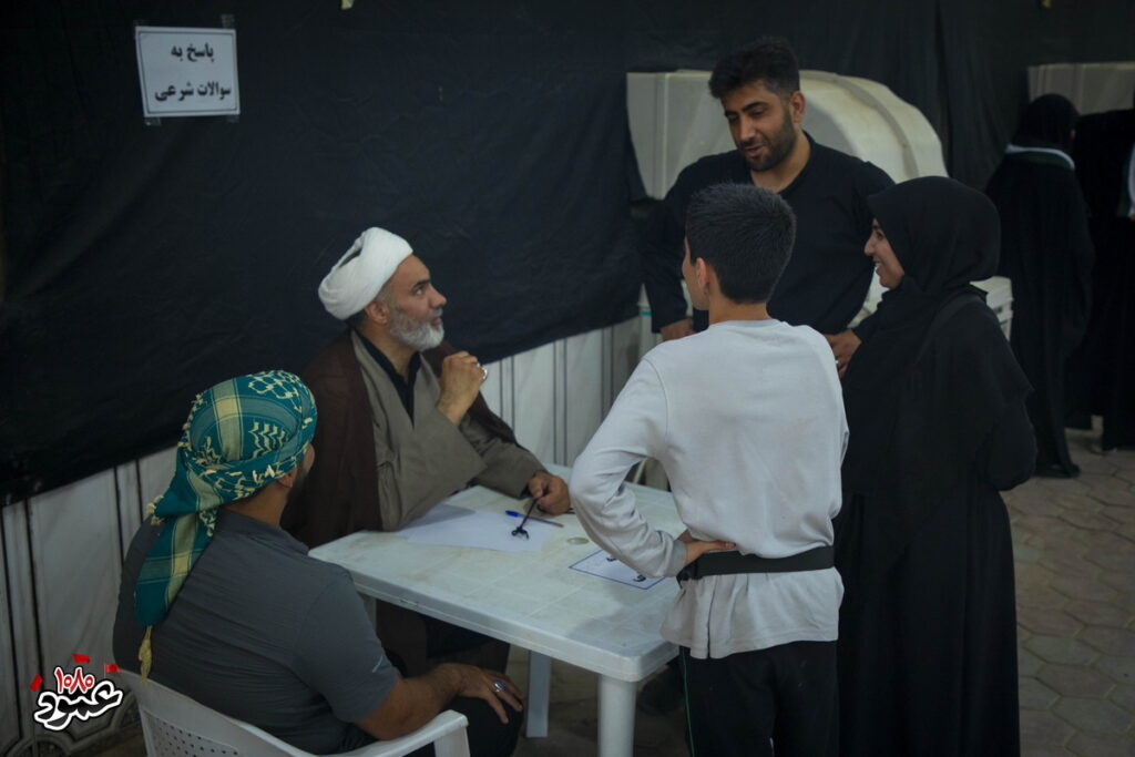 کارشناسان دینی با استقرار میزهای پاسخگویی در موکب حرم مطهر حضرت فاطمه معصومه سلام الله علیها در عمود 1080 مسیر نجف به کربلا به سؤالات، شرعی و اعتقادی زائران پاسخ می دهند.