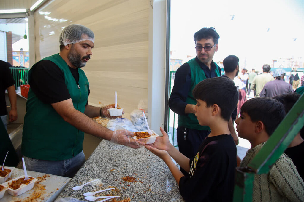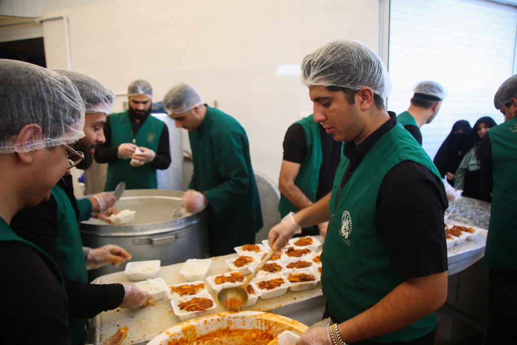 خادمان حرم مطهر حضرت فاطمه معصومه سلاماللهعلیها در سالروز شهادت امام رضا علیه السلام اقدام به توزیع غذای متبرک در میان زائران عزادار کردند.