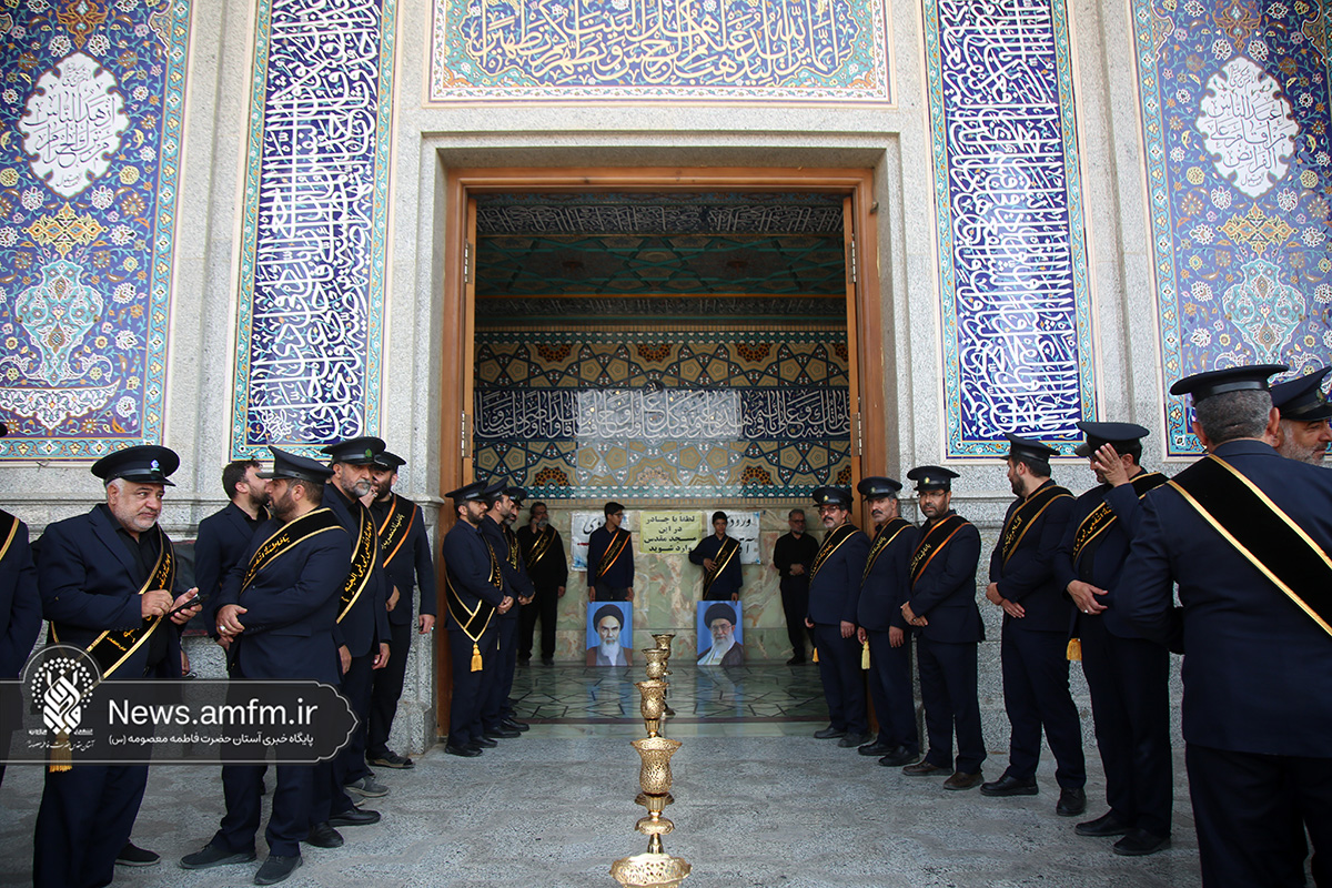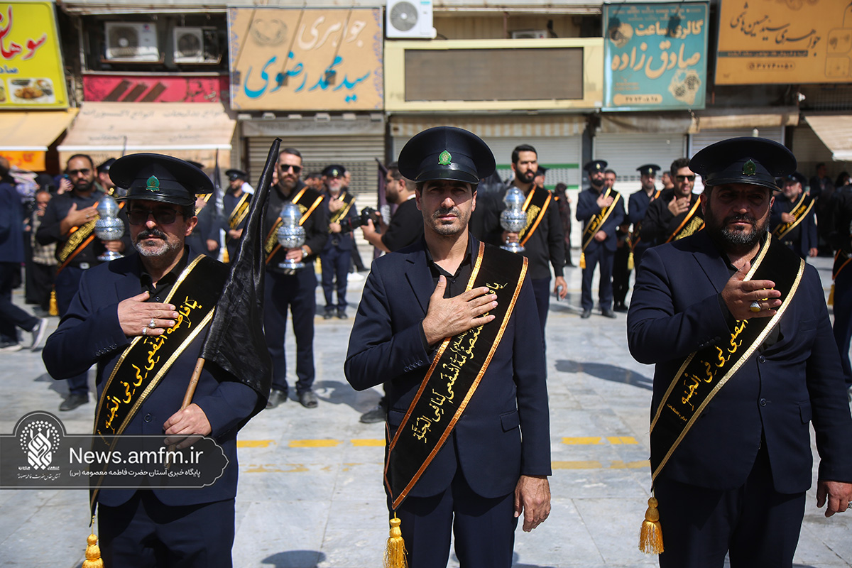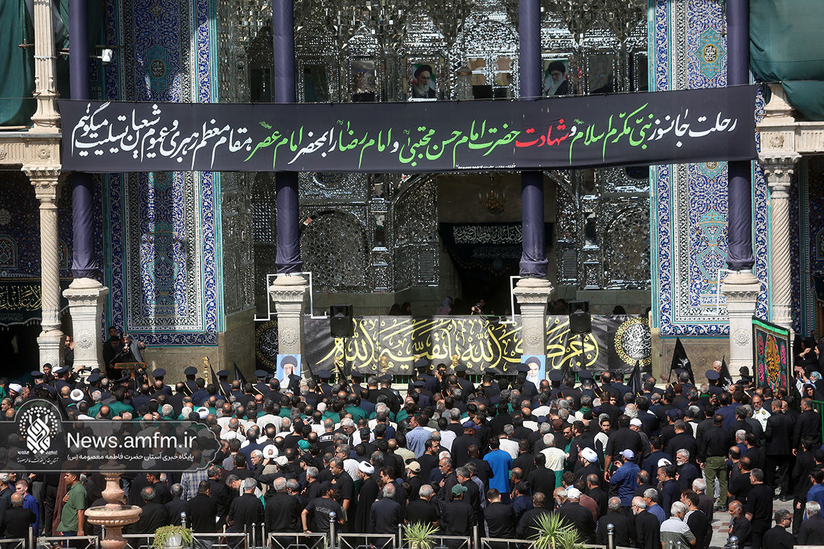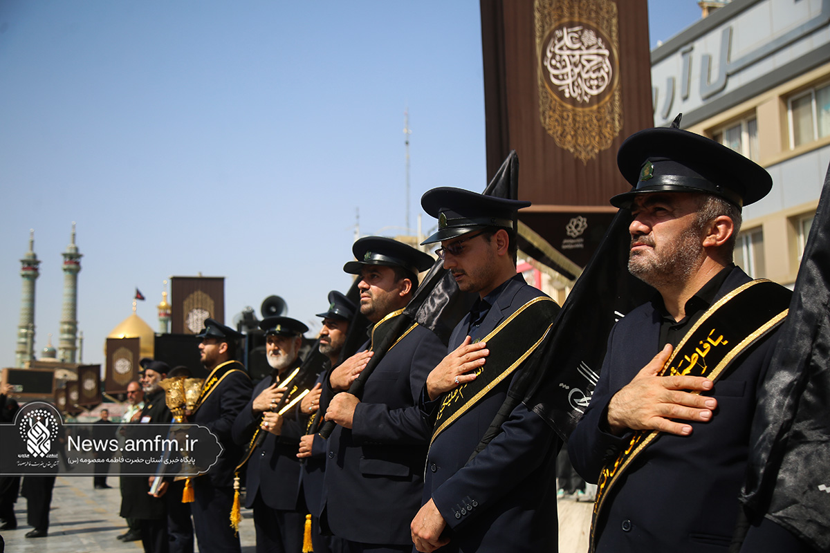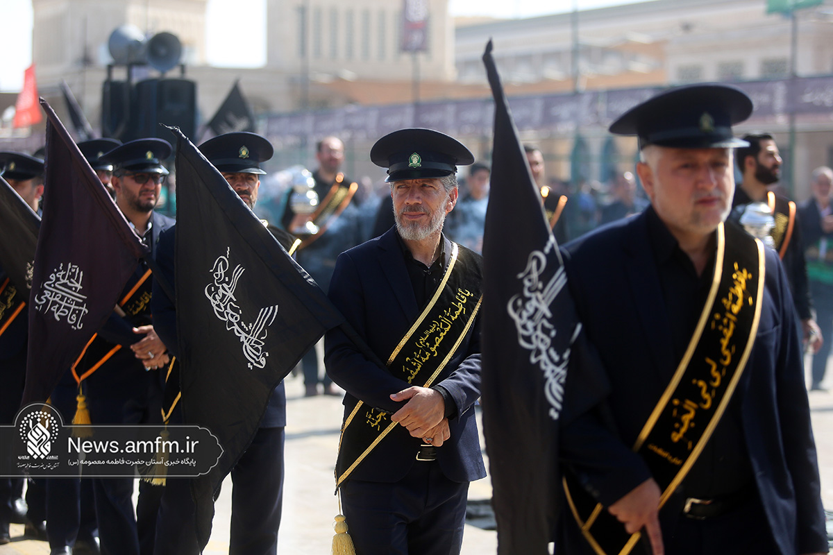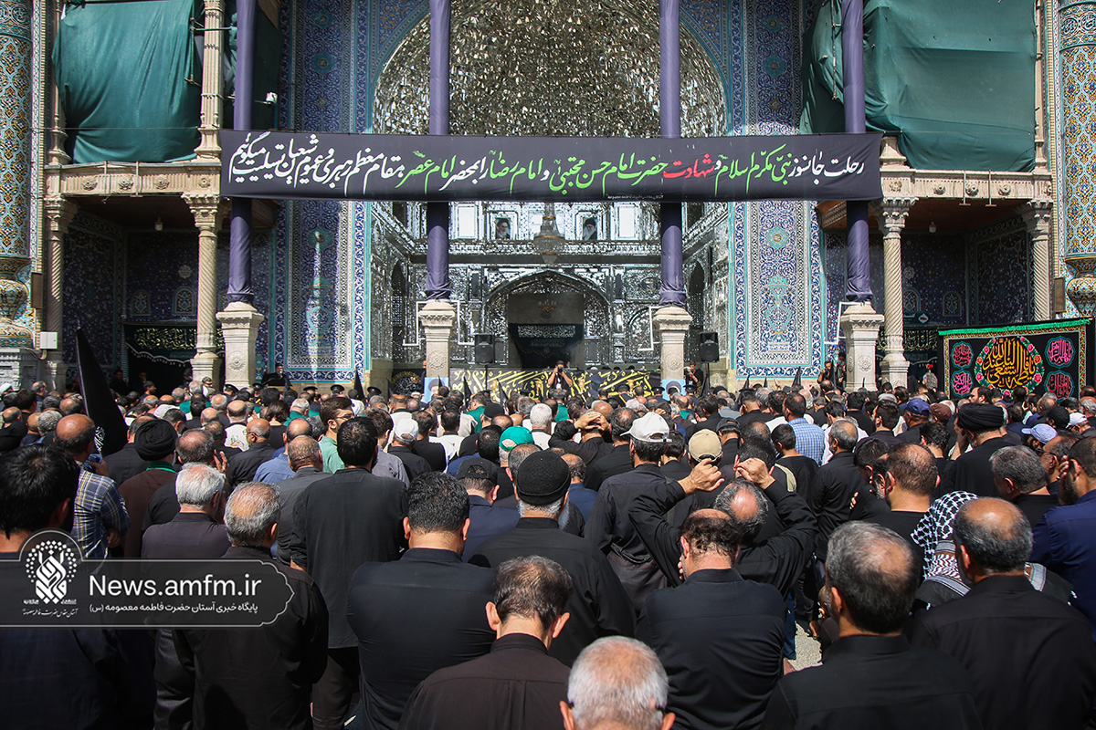 خادمان حرم مطهر حضرت فاطمه معصومه سلاماللهعلیها در سالروز شهادت امام رضا علیهالسلام از مسجد امام حسن عسکری علیهالسلام به سمت حرم مطهر دسته عزا برپا کردند و در صحن امام رضا علیهالسلام به عزاداری پرداختند.