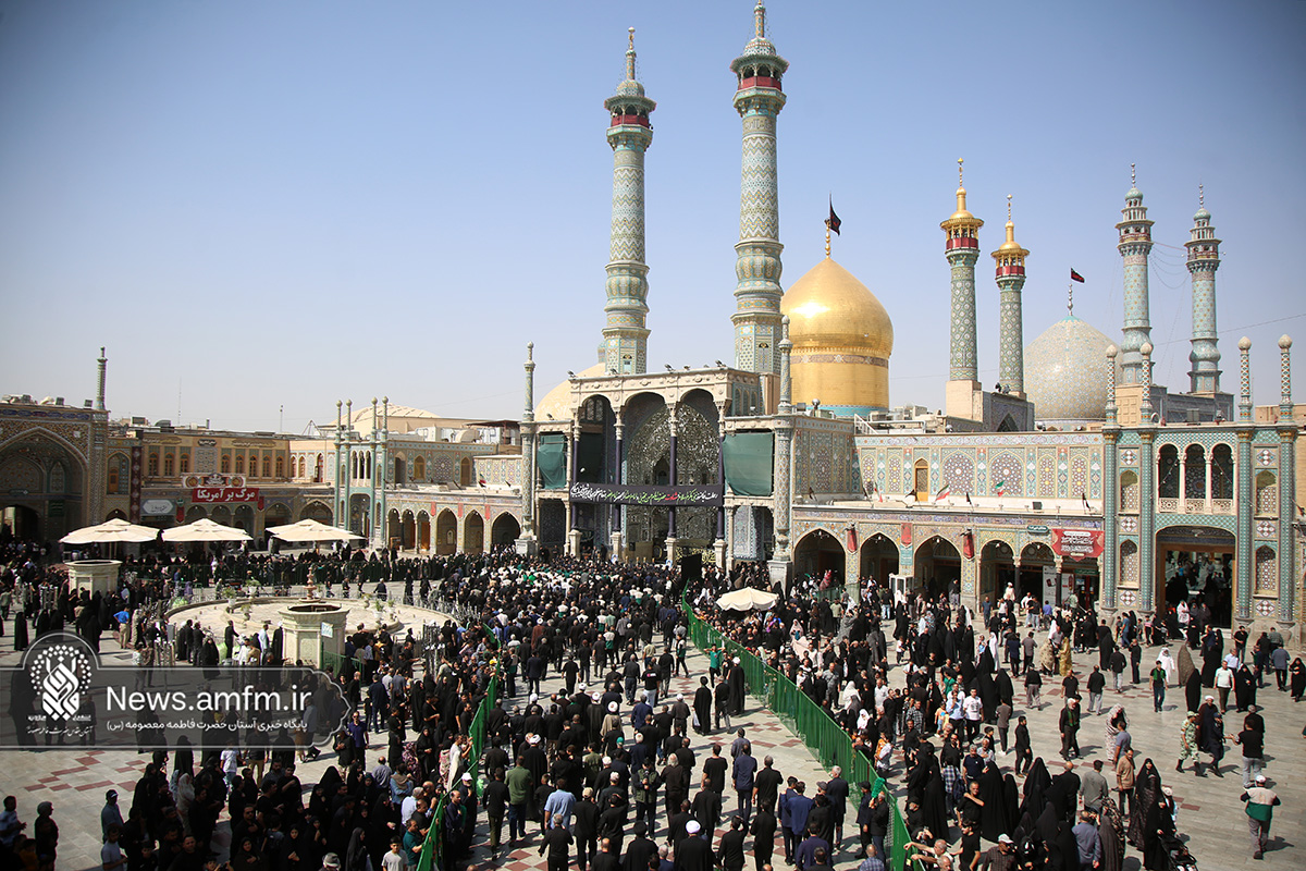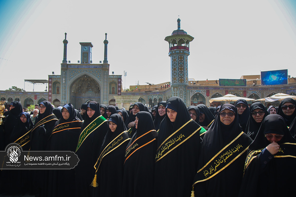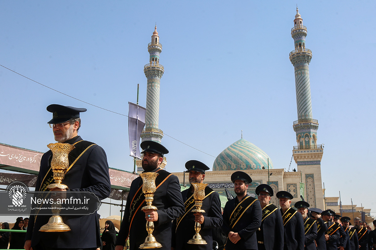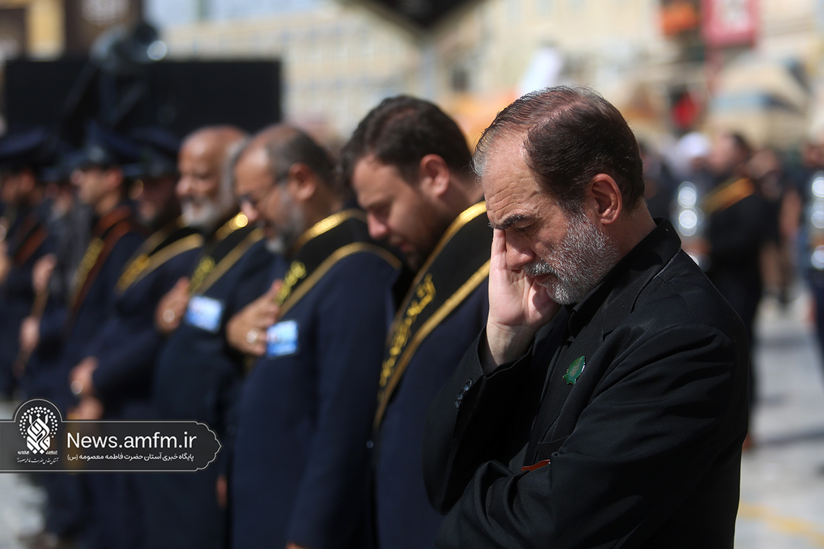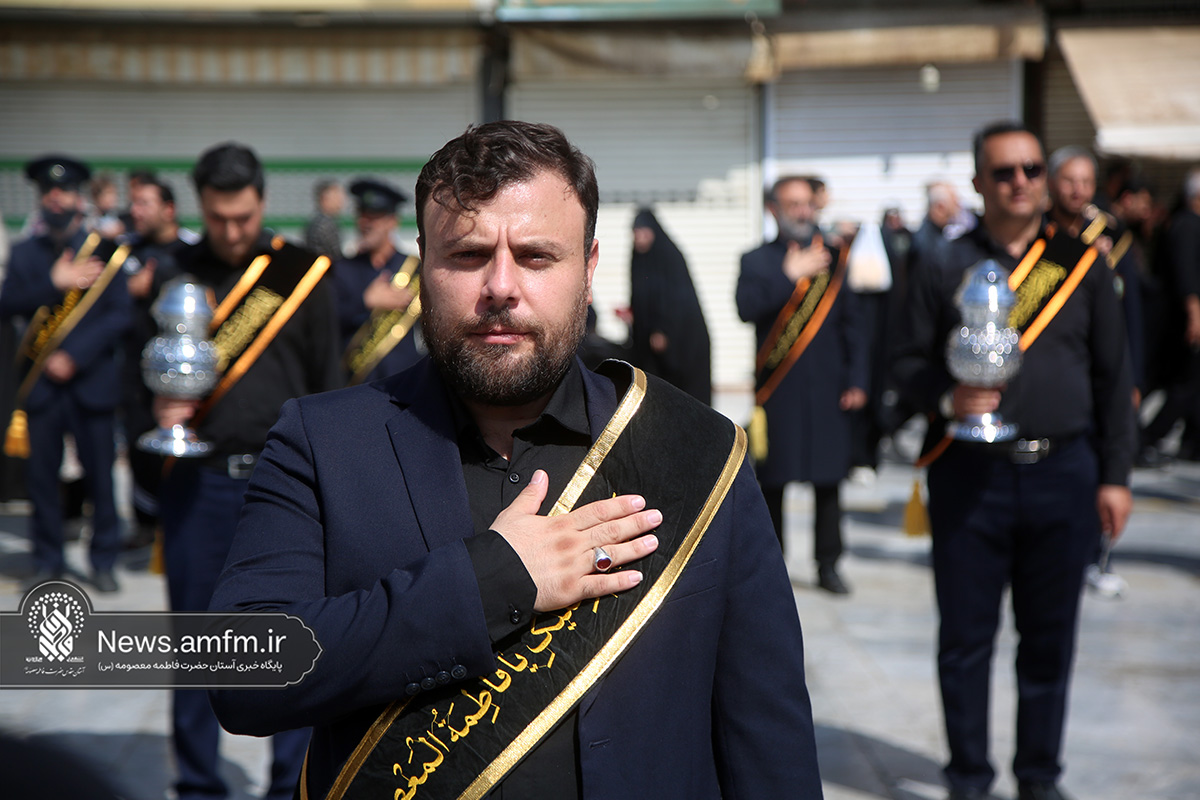 خادمان حرم مطهر حضرت فاطمه معصومه سلاماللهعلیها در سالروز شهادت امام رضا علیهالسلام از مسجد امام حسن عسکری علیهالسلام به سمت حرم مطهر دسته عزا برپا کردند و در صحن امام رضا علیهالسلام به عزاداری پرداختند.