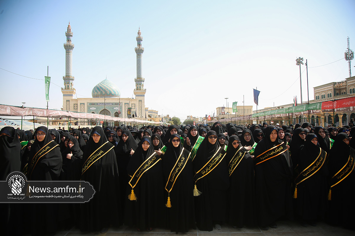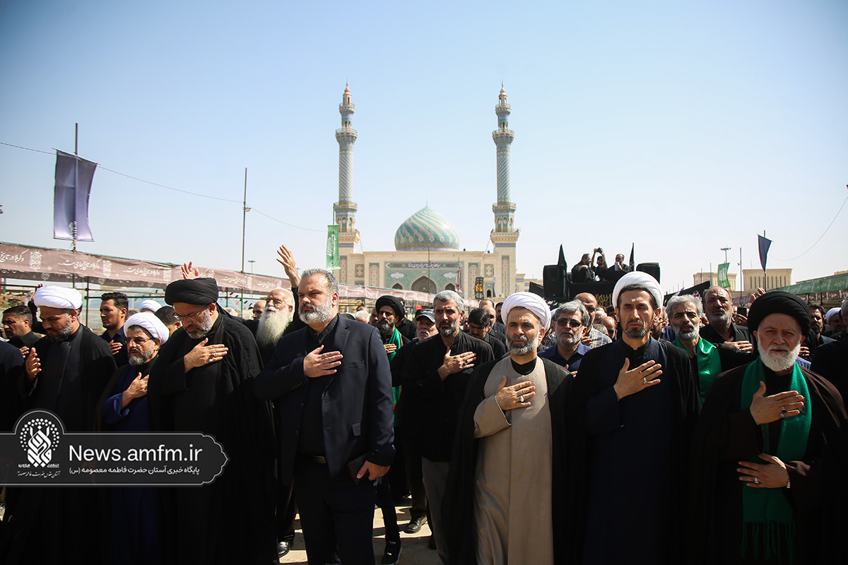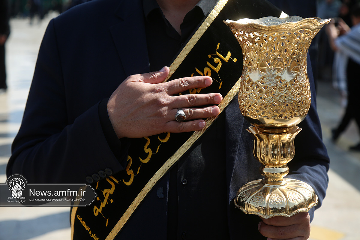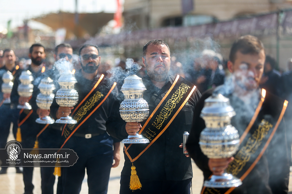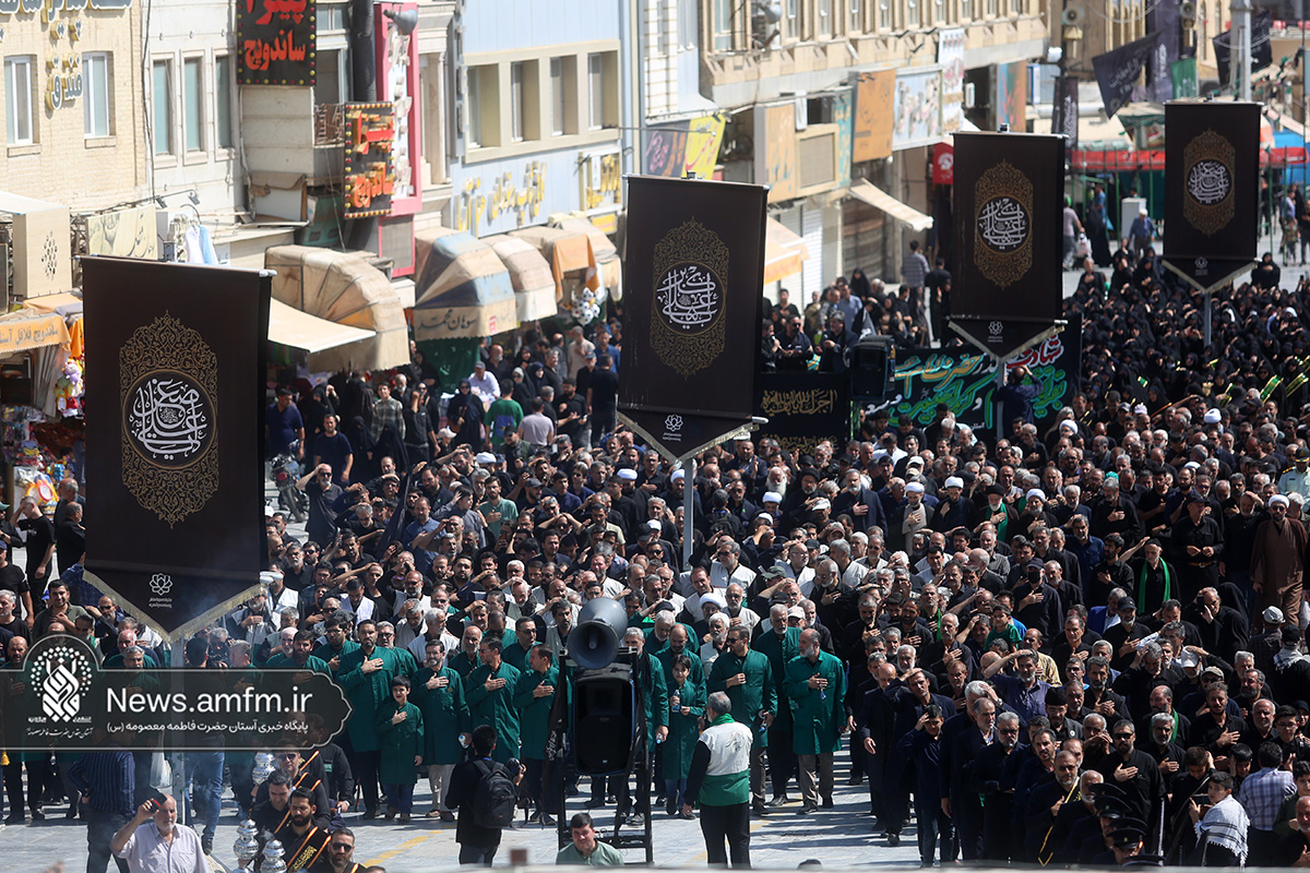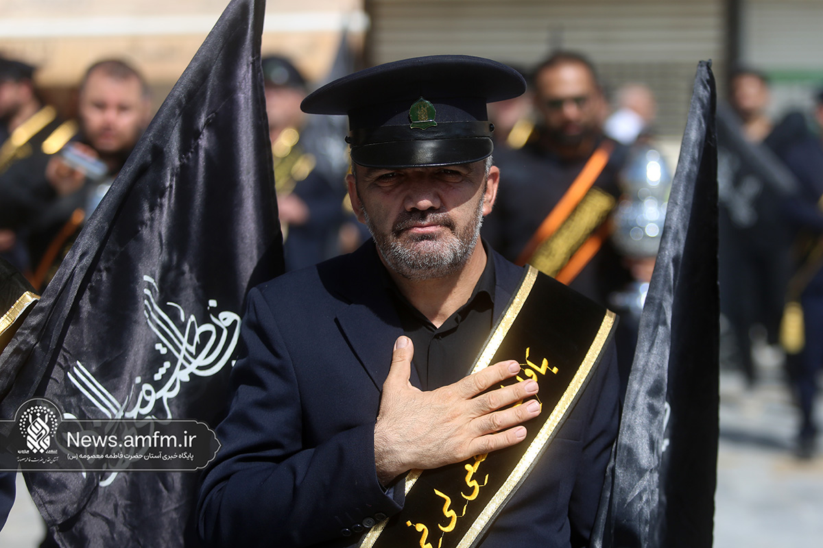 خادمان حرم مطهر حضرت فاطمه معصومه سلاماللهعلیها در سالروز شهادت امام رضا علیهالسلام از مسجد امام حسن عسکری علیهالسلام به سمت حرم مطهر دسته عزا برپا کردند و در صحن امام رضا علیهالسلام به عزاداری پرداختند.