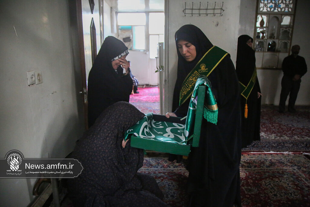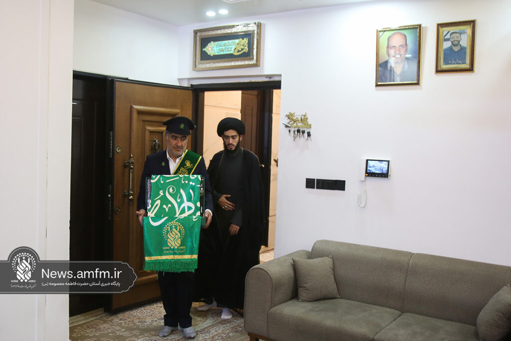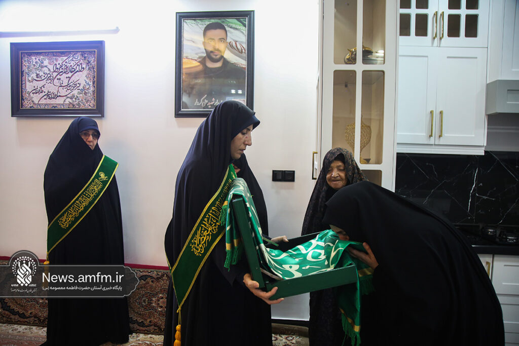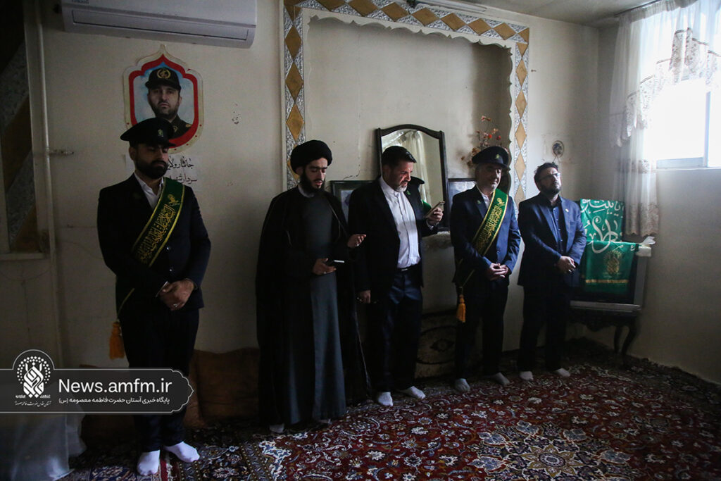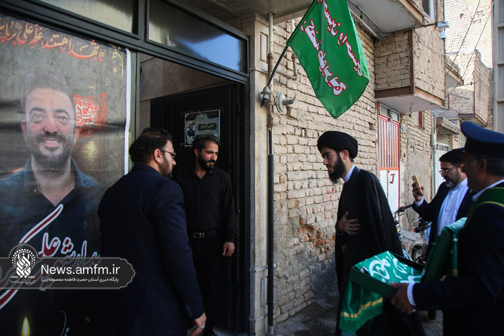 خادمان حرم مطهر حضرت فاطمه معصومه سلام الله علیها به همراه پرچم متبرک آستان مقدس با حضور در منزل شهید علی کردلو و شهید رسول طالبی از شهدای جنگ تحمیلی ۱۲ روزه، خانواده این شهدا را تکریم کردند.