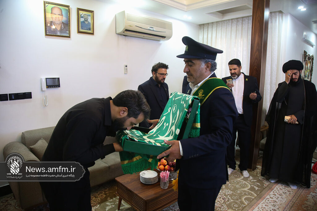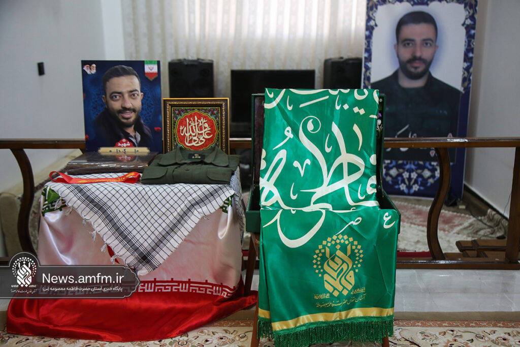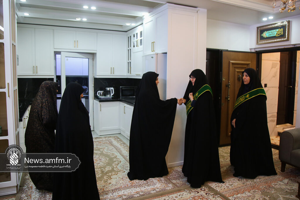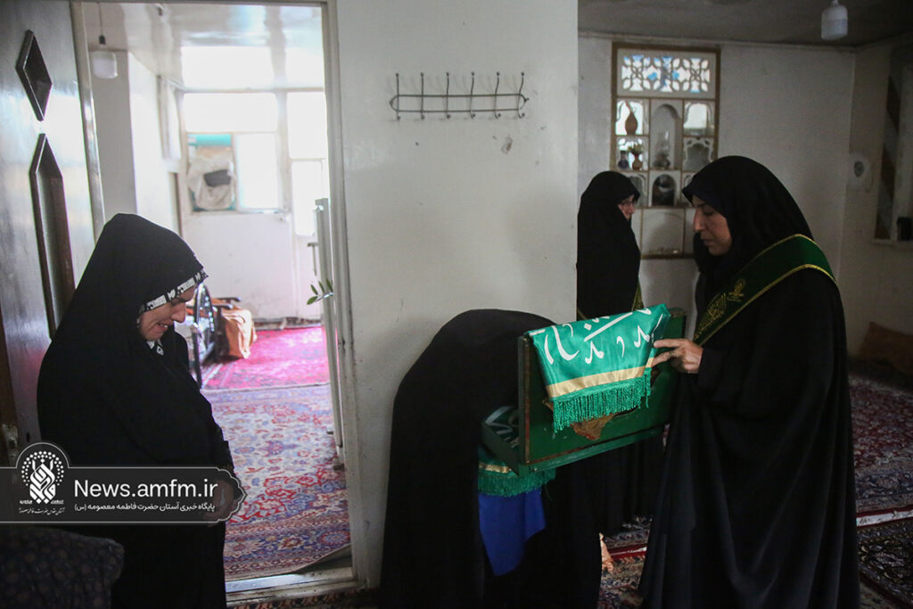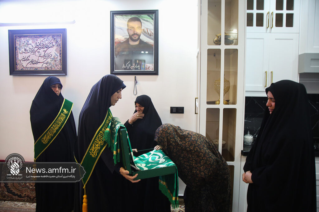 خادمان حرم مطهر حضرت فاطمه معصومه سلام الله علیها به همراه پرچم متبرک آستان مقدس با حضور در منزل شهید علی کردلو و شهید رسول طالبی از شهدای جنگ تحمیلی ۱۲ روزه، خانواده این شهدا را تکریم کردند.