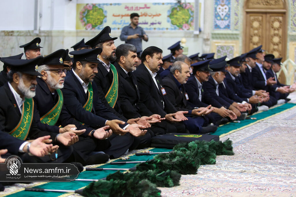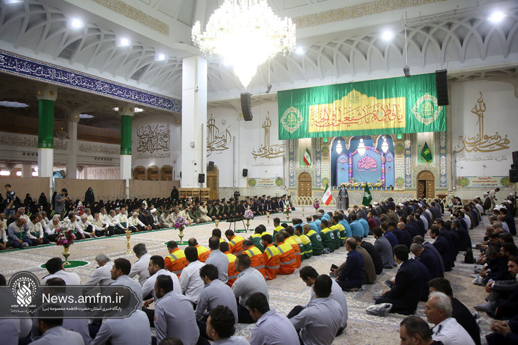 آیین خطبه خوانی خادمان آستان مقدس و مدیران و کارکنان شهر مقدس قم با حضور تولیت حرم مطهر بانوی کرامت در آستانه سالروز ورود پر خیروبرکت بانوی کرامت به شهر مقدس قم در شبستان امام خمینی (ره) حرم مطهر برگزار شد.