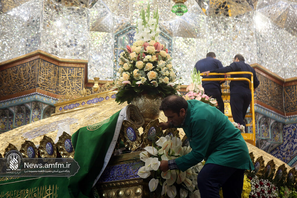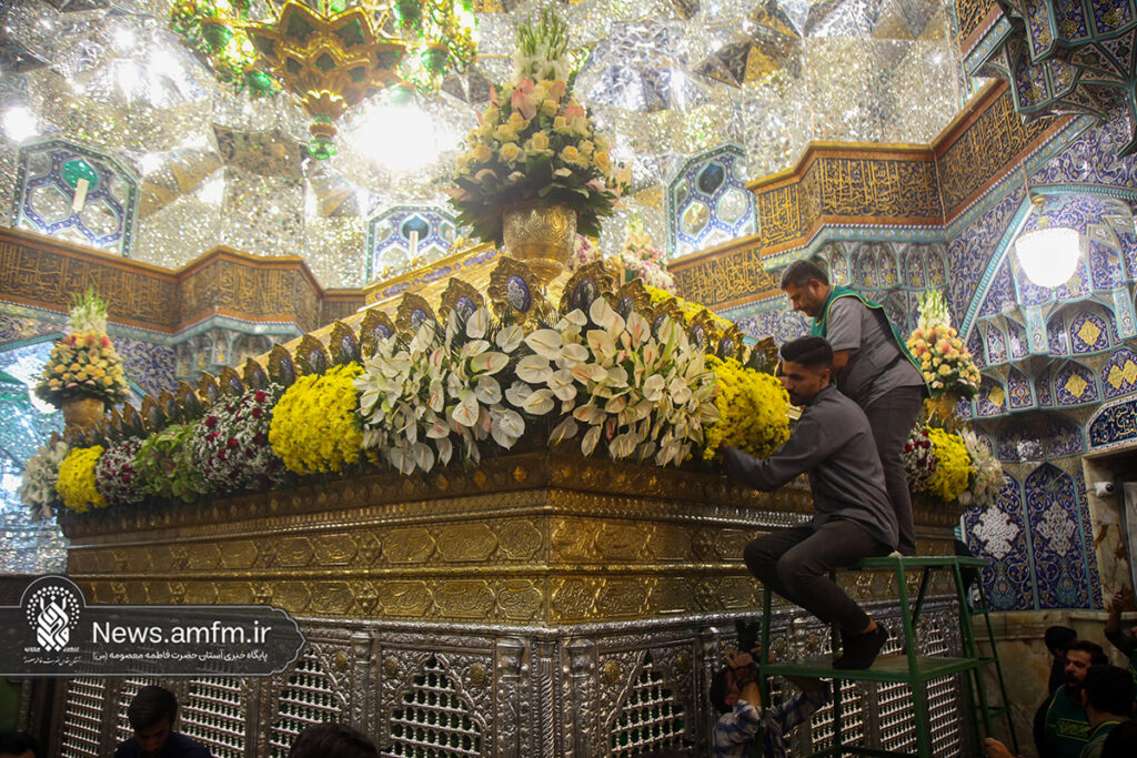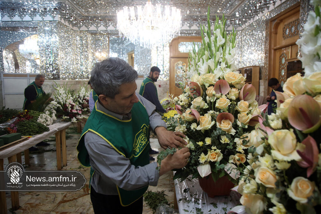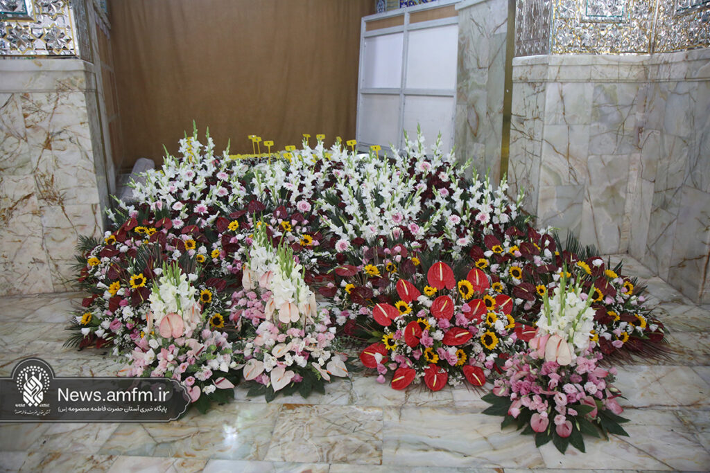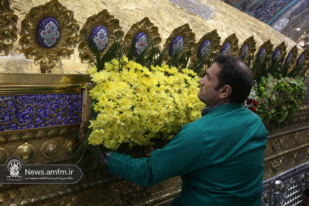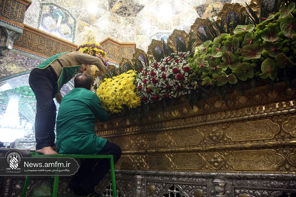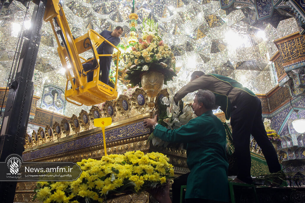 ضریح مطهر حرم حضرت فاطمه معصومه سلام الله علیها به مناسبت 23 ربیع الاول سالروز ورود ایشان به شهر مقدس قم با هزاران شاخه گل طبیعی گلآرایی شد.