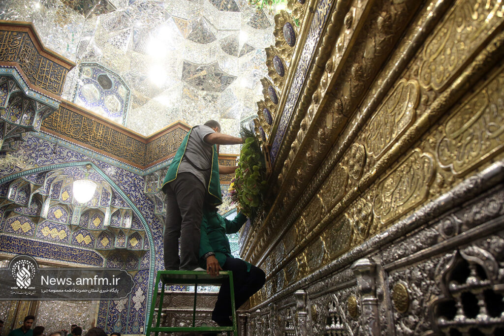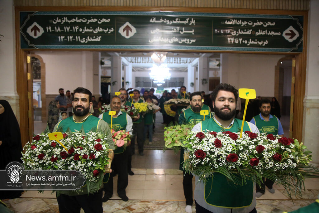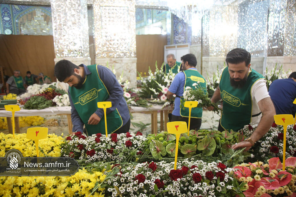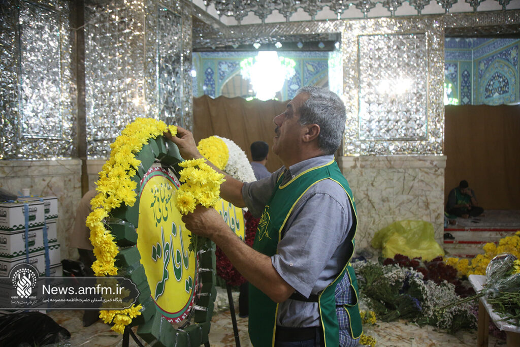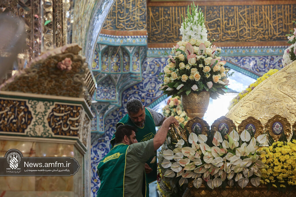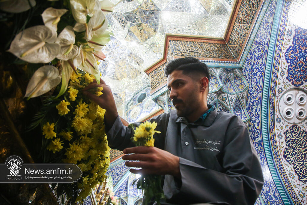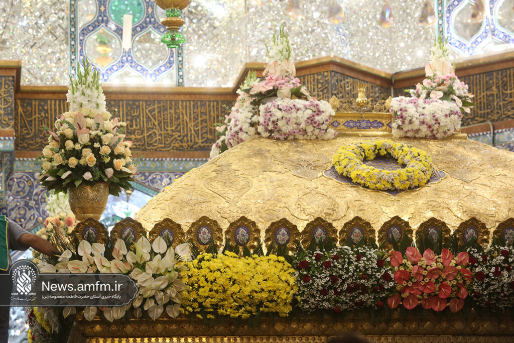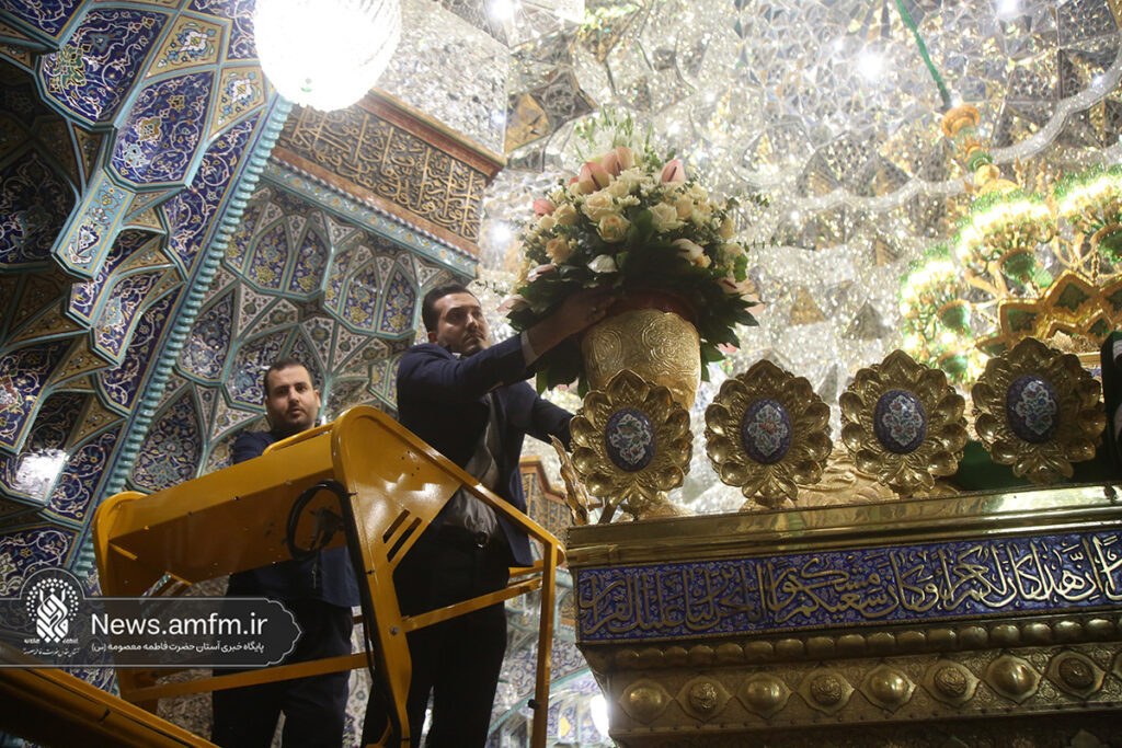 ضریح مطهر حرم حضرت فاطمه معصومه سلام الله علیها به مناسبت 23 ربیع الاول سالروز ورود ایشان به شهر مقدس قم با هزاران شاخه گل طبیعی گلآرایی شد.