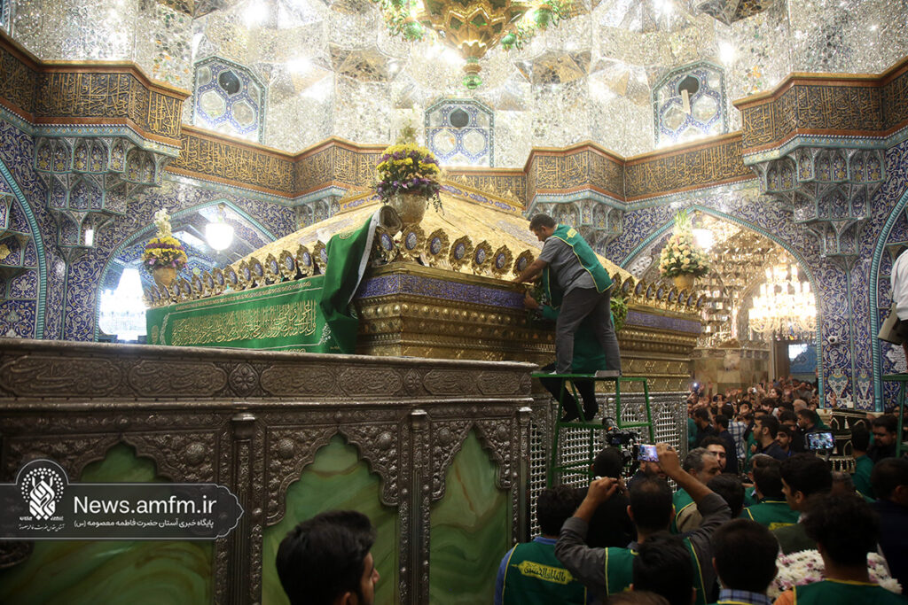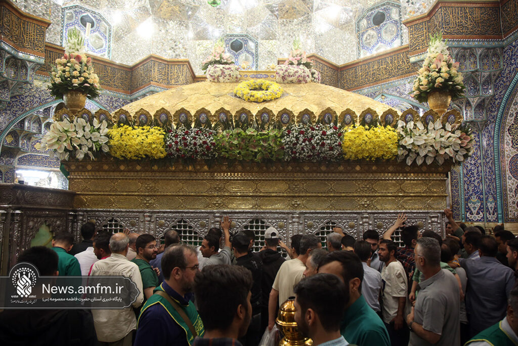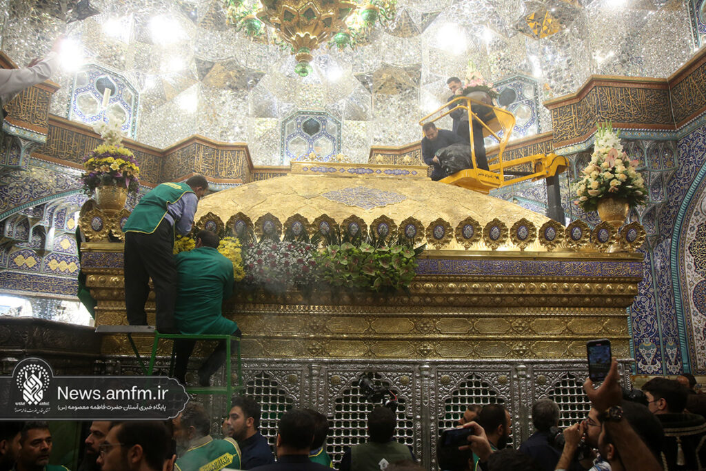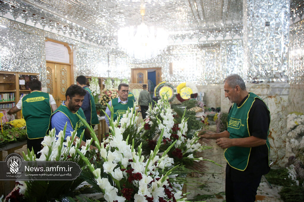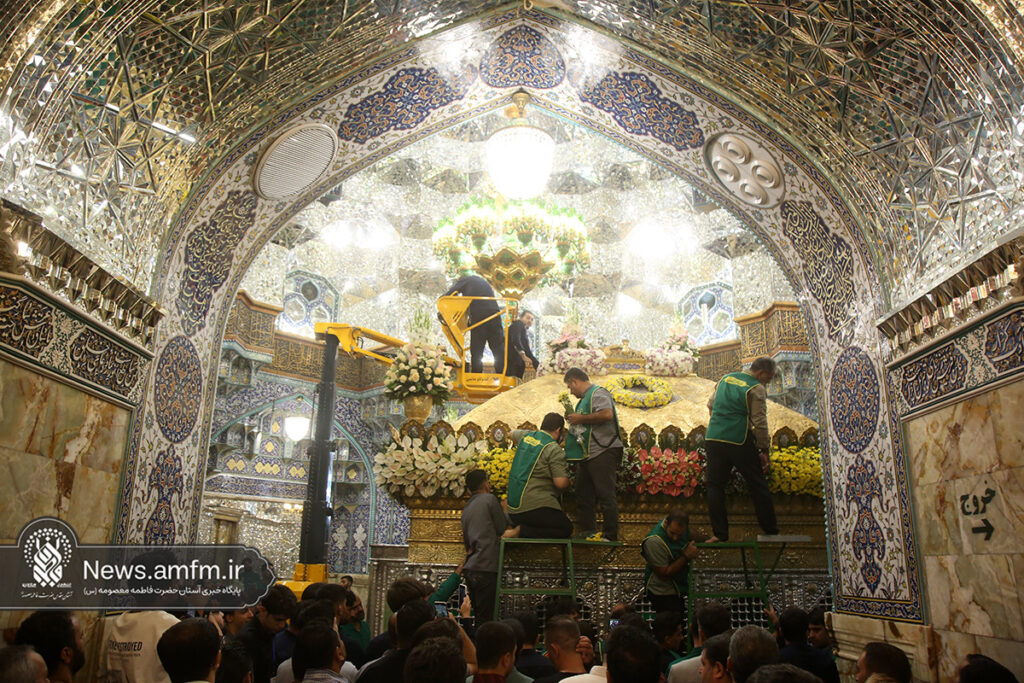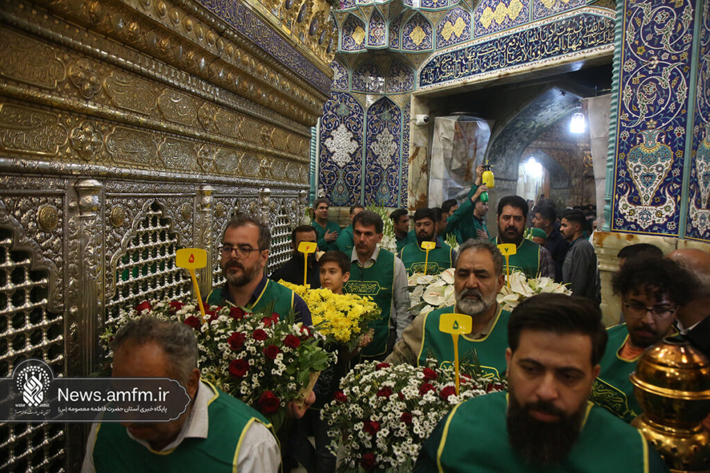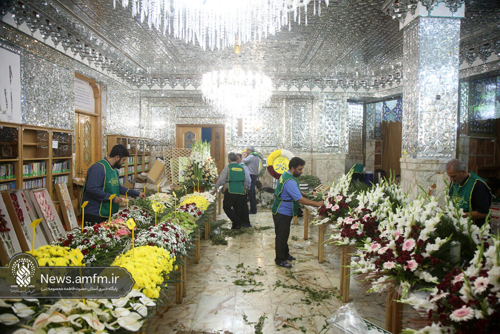 ضریح مطهر حرم حضرت فاطمه معصومه سلام الله علیها به مناسبت 23 ربیع الاول سالروز ورود ایشان به شهر مقدس قم با هزاران شاخه گل طبیعی گلآرایی شد.