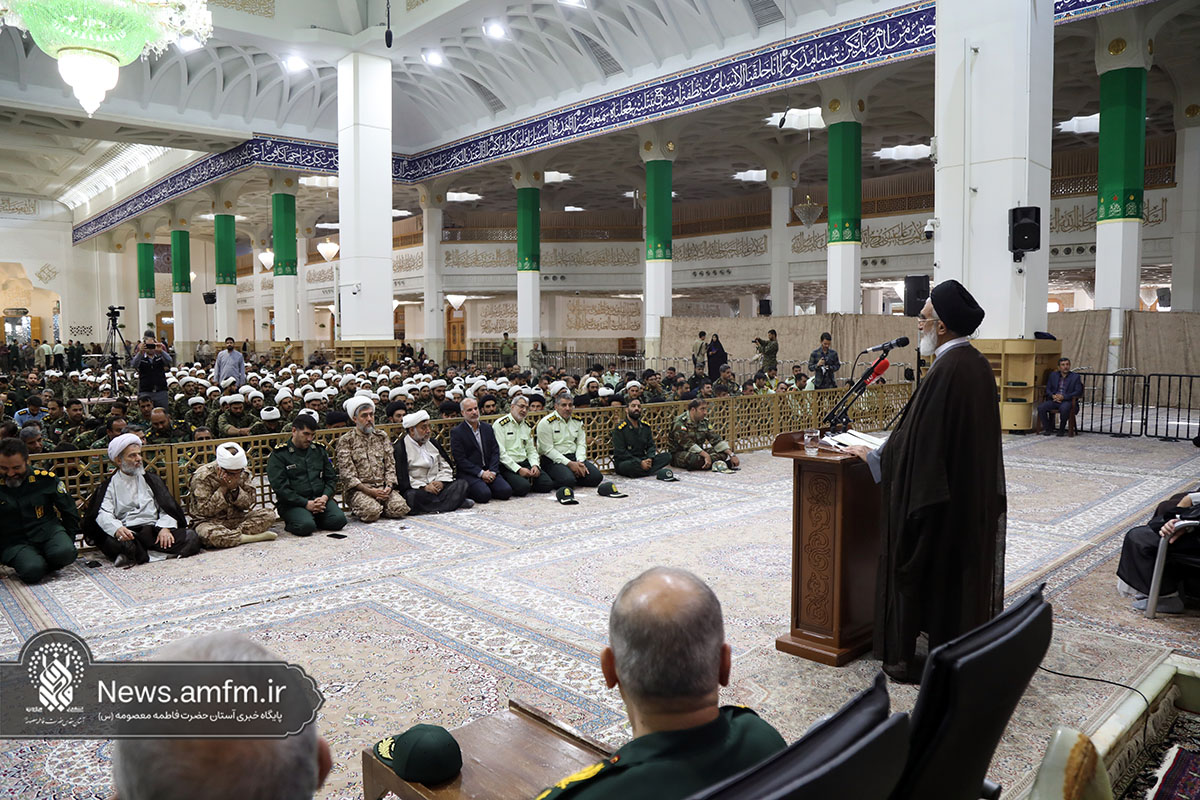 آیین نکوداشت هفته دفاع مقدس صبح امروز با سخنرانی آیت الله سیدمحمد سعیدی تولیت حرم مطهر حضرت فاطمه معصومه سلام الله علیها، فتح الله جمیری فرمانده سپاه قم و جمعی از نیروهای مسلح استان قم در شبستان امام خمینی(ره) حرم مطهر بانوی کرامت برگزار شد.