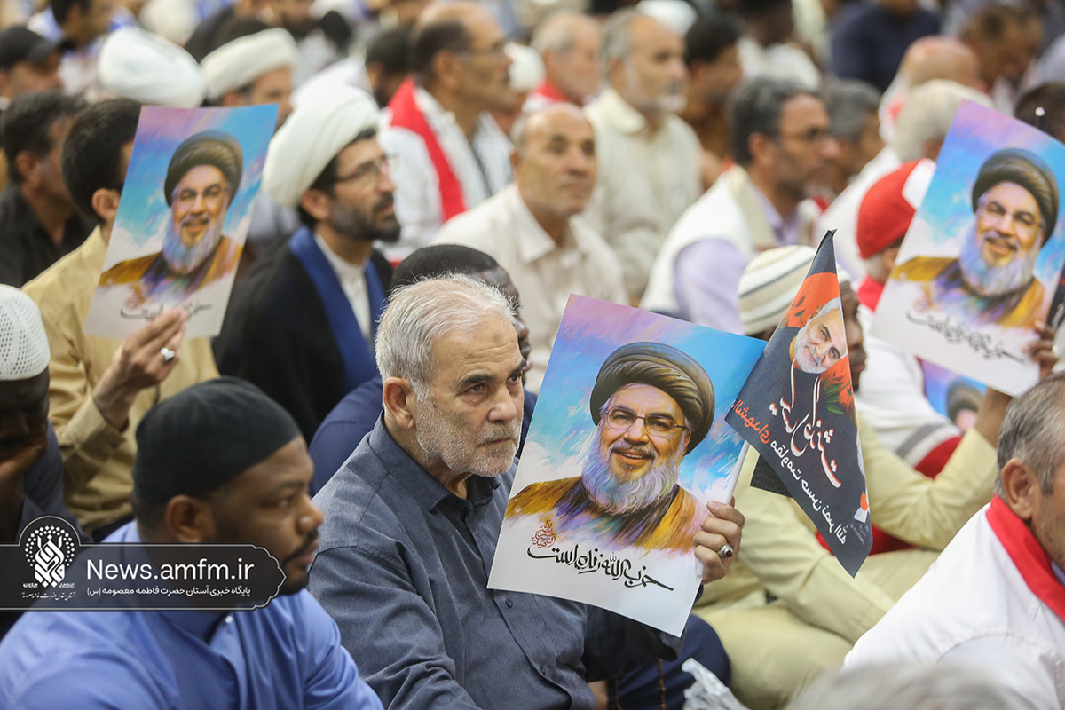 مراسم بزرگداشت اولین سالگرد شهادت سید حسن نصرالله با سخنرانی آیت‌الله سید احمد خاتمی، مداحی عباس حیدرزاده و حضور پرشور علما و اقشار مختلف مردم انقلابی از ایران و سایر کشورهای جبهه مقاومت از سوی دفتر مقام معظم رهبری در حرم مطهر حضرت فاطمه معصومه سلام الله علیها برگزار شد.
