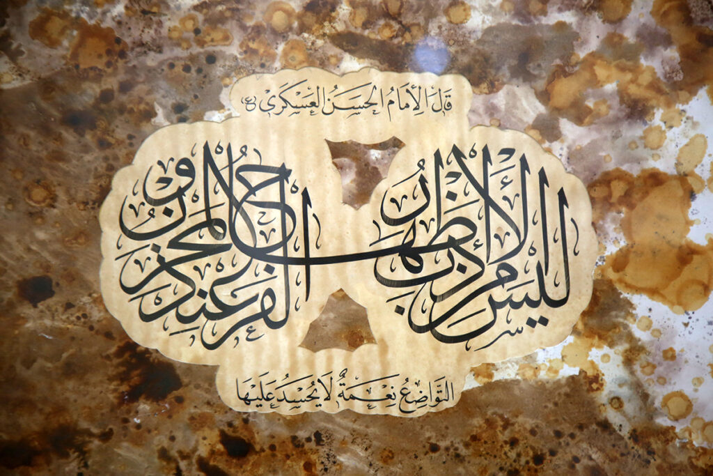 همچنین حدیث دیگری از امام عسکری علیه السلام با مضمون «لَيْسَ مِنَ الأَدَبِ إِظْهَارُ الفَرَحِ عِندَ المَحزُون» در این تابلو کتابت شده است که بر رعایت ادب عاطفی در حضور افراد محزون تأکید دارد.