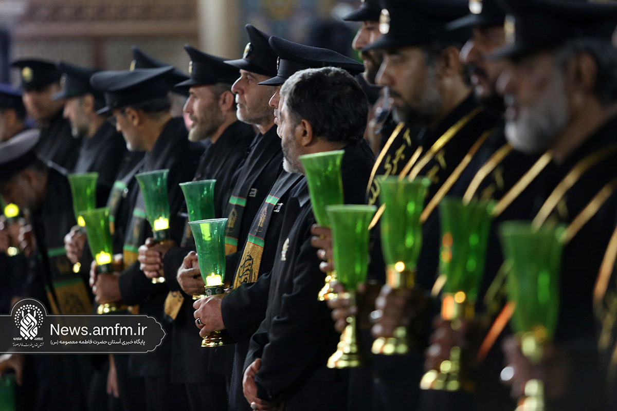 آیین شمعدان گردانی و خطبه خوانی خادمان حرم مطهر به مناسبت رحلت جانسوز حضرت فاطمه معصومه سلاماللهعلیها با قرائت قران حامد علیزاده، سخنرانی آیت الله میرباقری و مداحی سید مهدی میرداماد و عباس حیدرزاده در جمع باشکوه خادمان حرم مطهر در صحن امام رضا علیه السلام برگزار شد.