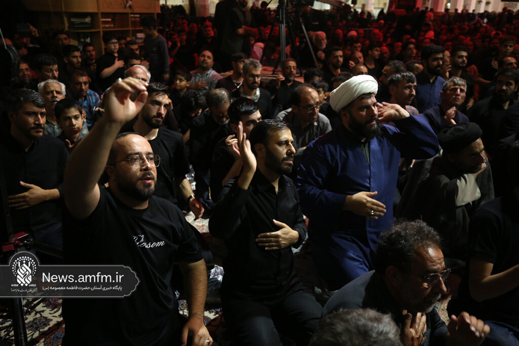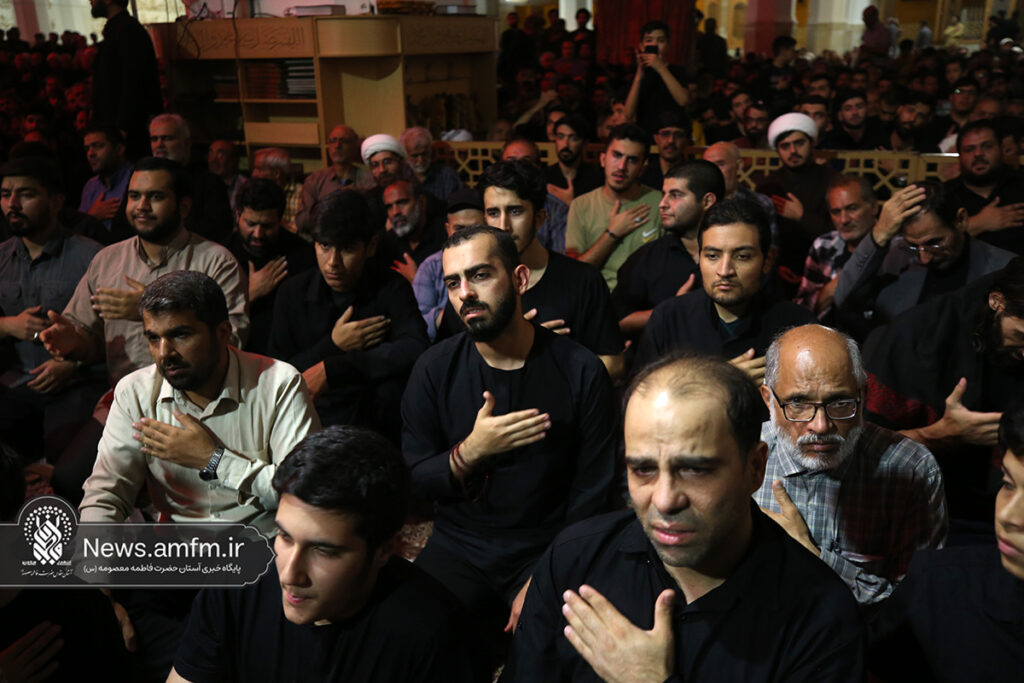 مردم متدین و قدرشناس قم در مراسم عزاداری شام رحلت ولی نعمتشان حضرت فاطمه معصومه سلام الله علیها که با سخنرانی حجت الاسلام والمسلمین ناصر رفیعی و مداحی محمود کریمی برگزار شد حضوری پرشور داشتند.