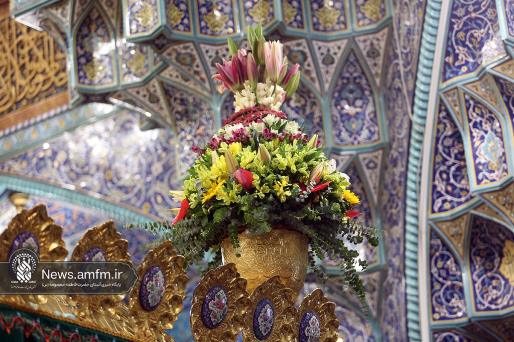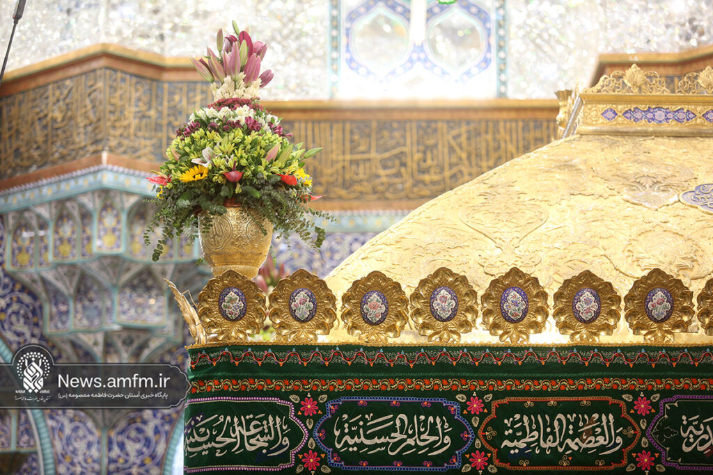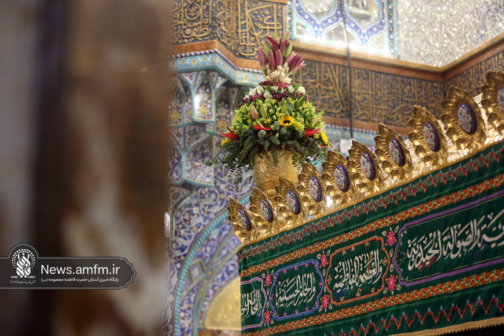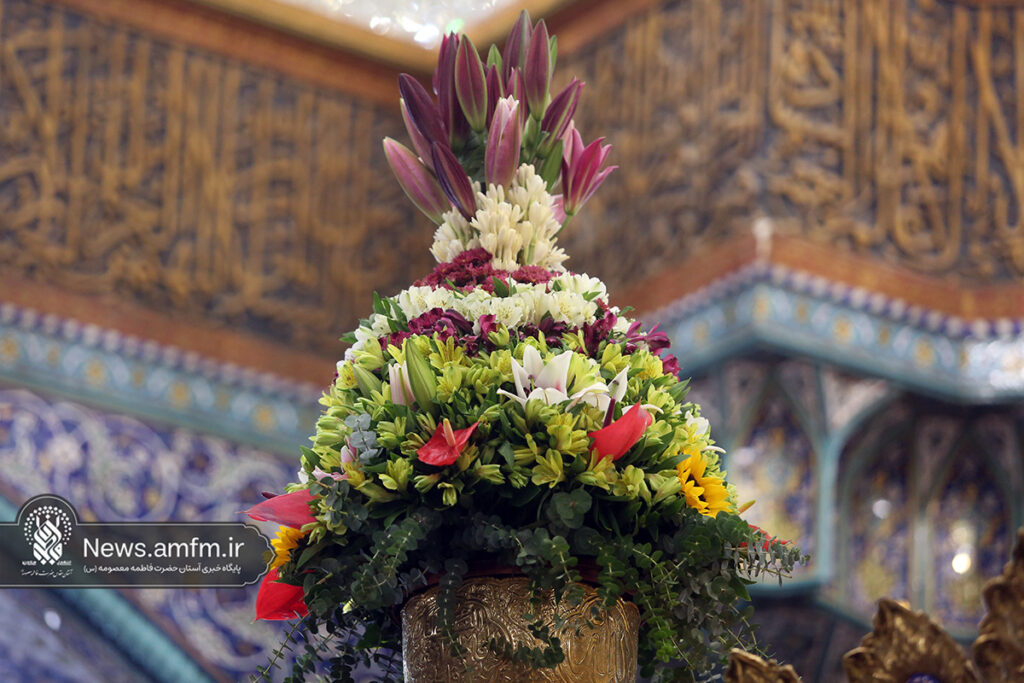 خادمان حرم مطهر بانوی کرامت در سالروز میلاد حضرت زینب سلام الله علیها، ضمن برپایی مراسم معنوی خطبه خوانی، ضریح مطهر حرم حضرت معصومه سلام الله علیها را گل آرایی کردند.