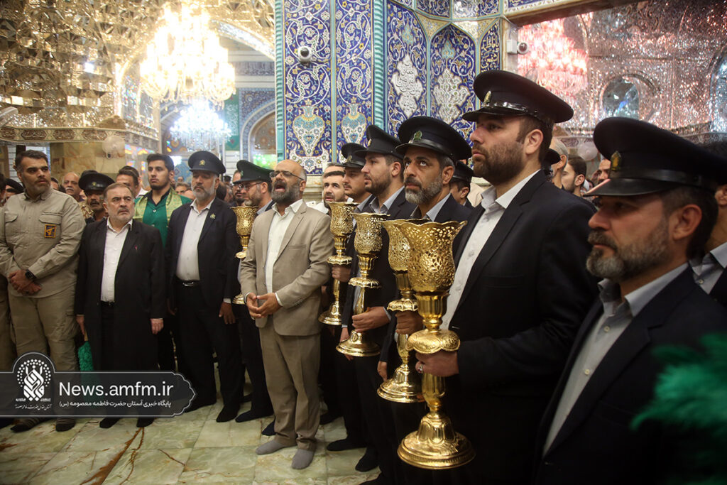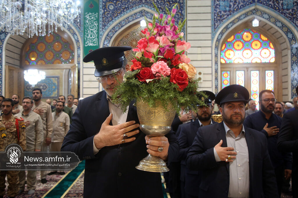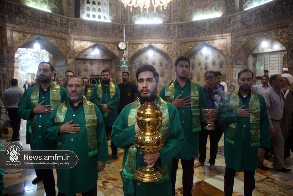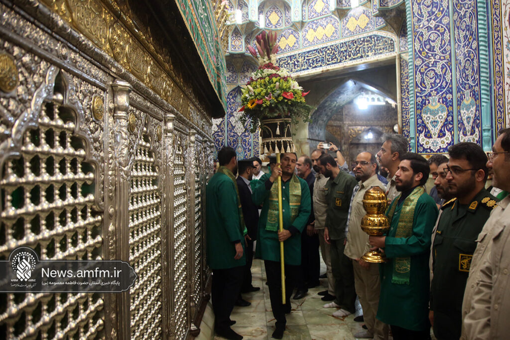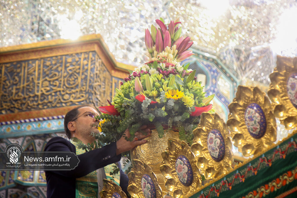 خادمان حرم مطهر بانوی کرامت در سالروز میلاد حضرت زینب سلام الله علیها، ضمن برپایی مراسم معنوی خطبه خوانی، ضریح مطهر حرم حضرت معصومه سلام الله علیها را گل آرایی کردند.